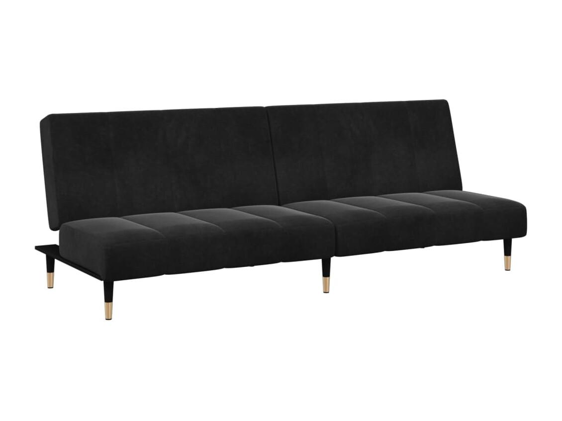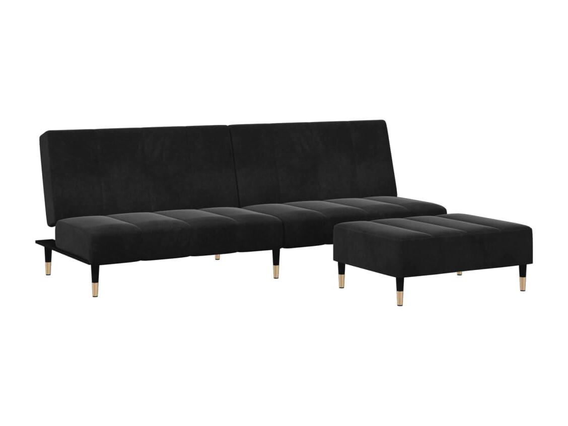 Canapé convertible à 2 places avec repose-pied noir velours FR17302