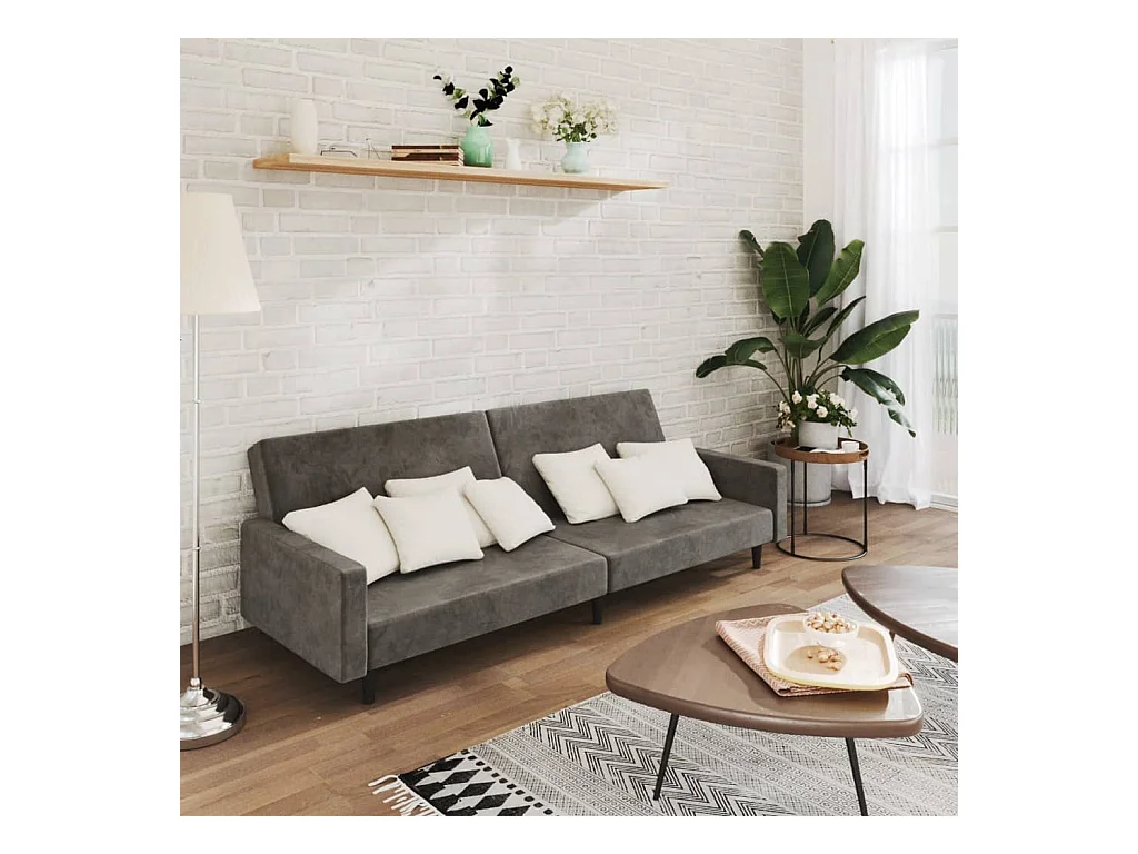 Canapé convertible à 2 places gris foncé velours REO15823