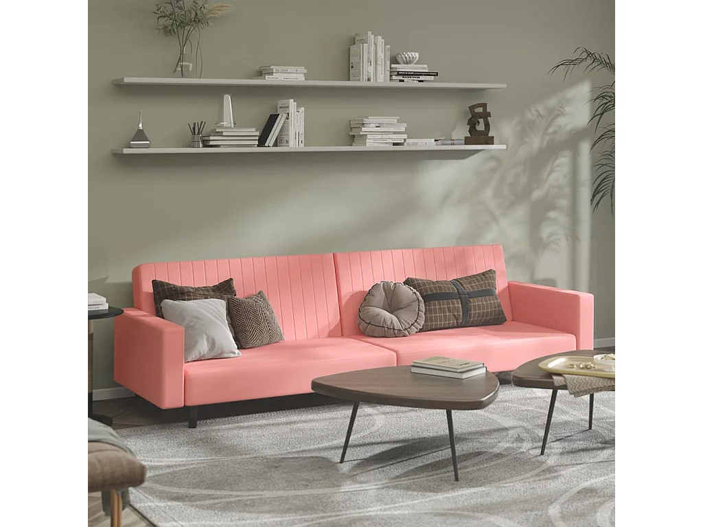 Canapé convertible à 2 places rose velours FR272919