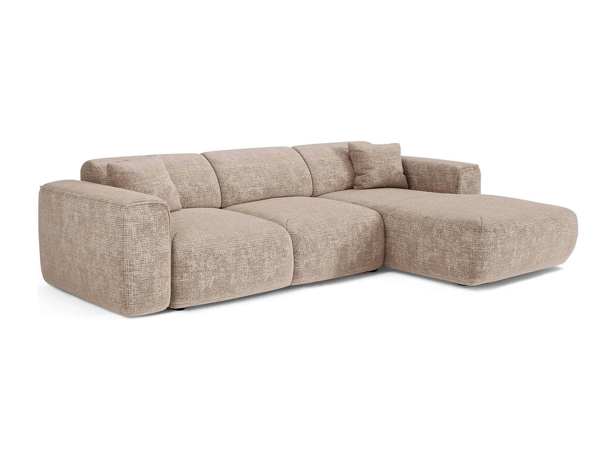 Canapé convertible angle droit 5 places velours gaufré beige YUMA