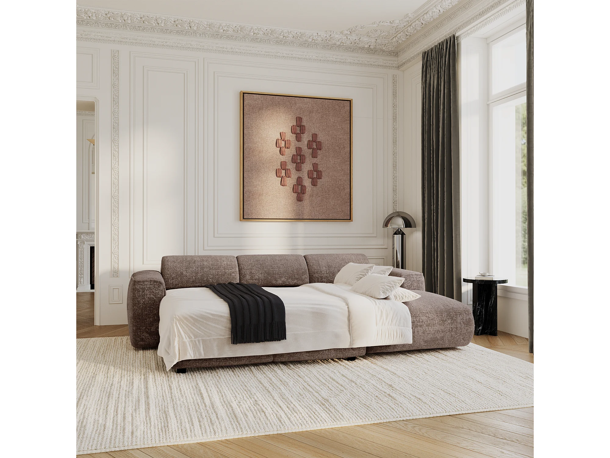 Canapé convertible angle droit 5 places velours gaufré taupe YUMA