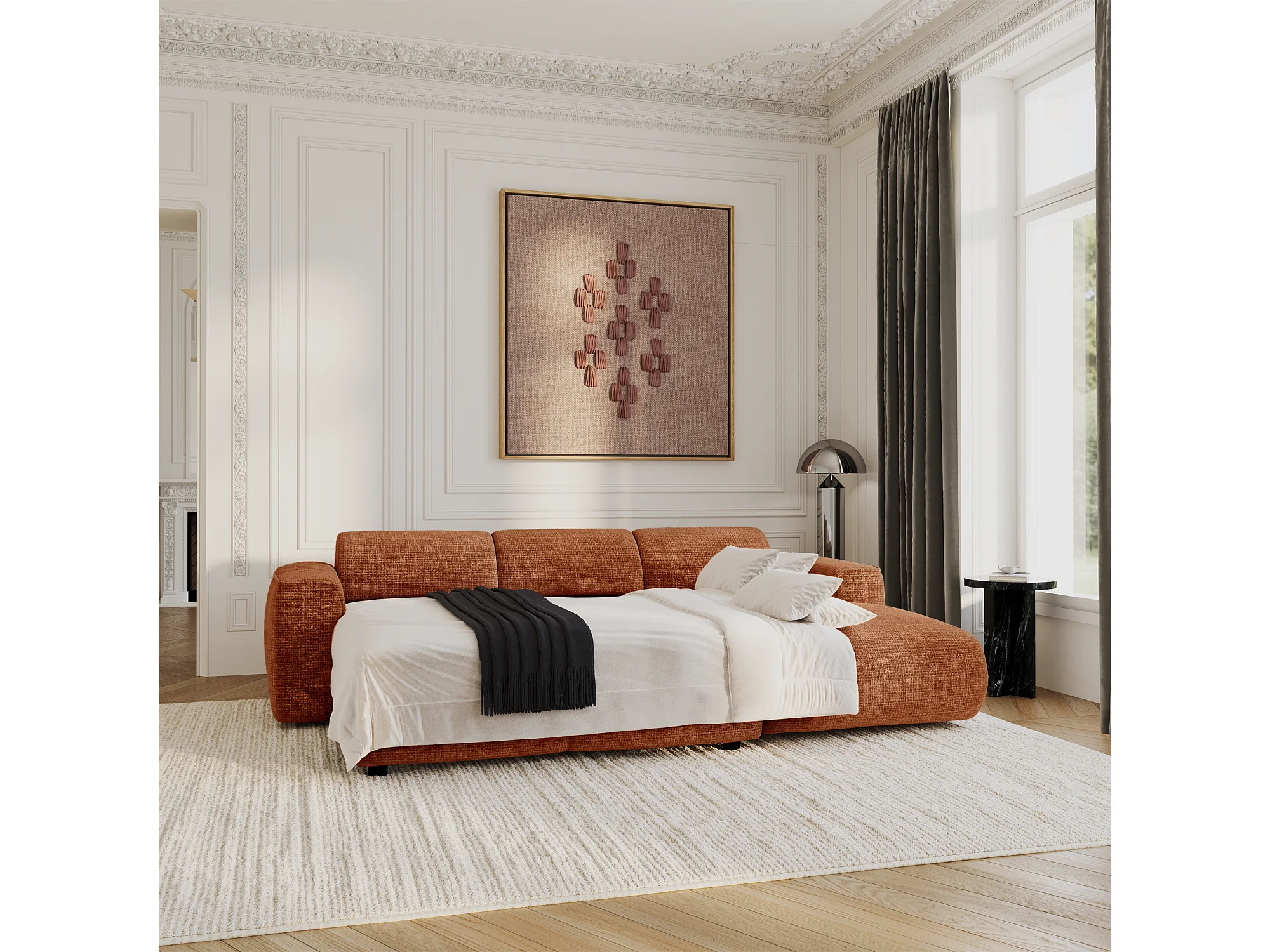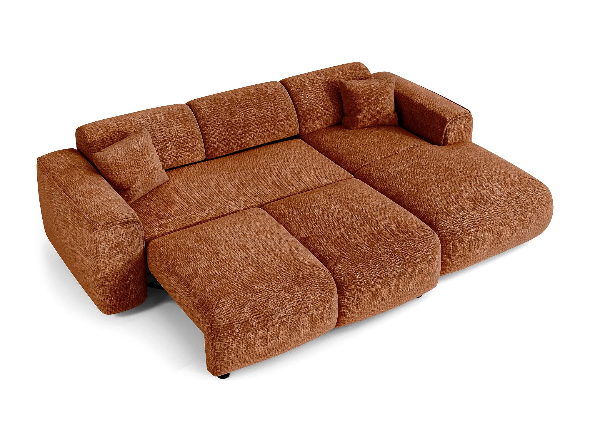 Canapé convertible angle droit 5 places velours gaufré terracotta YUMA