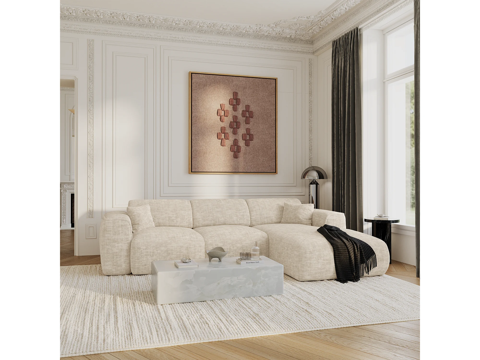 Canapé convertible angle droit 5 places velours texturé beige YUMA