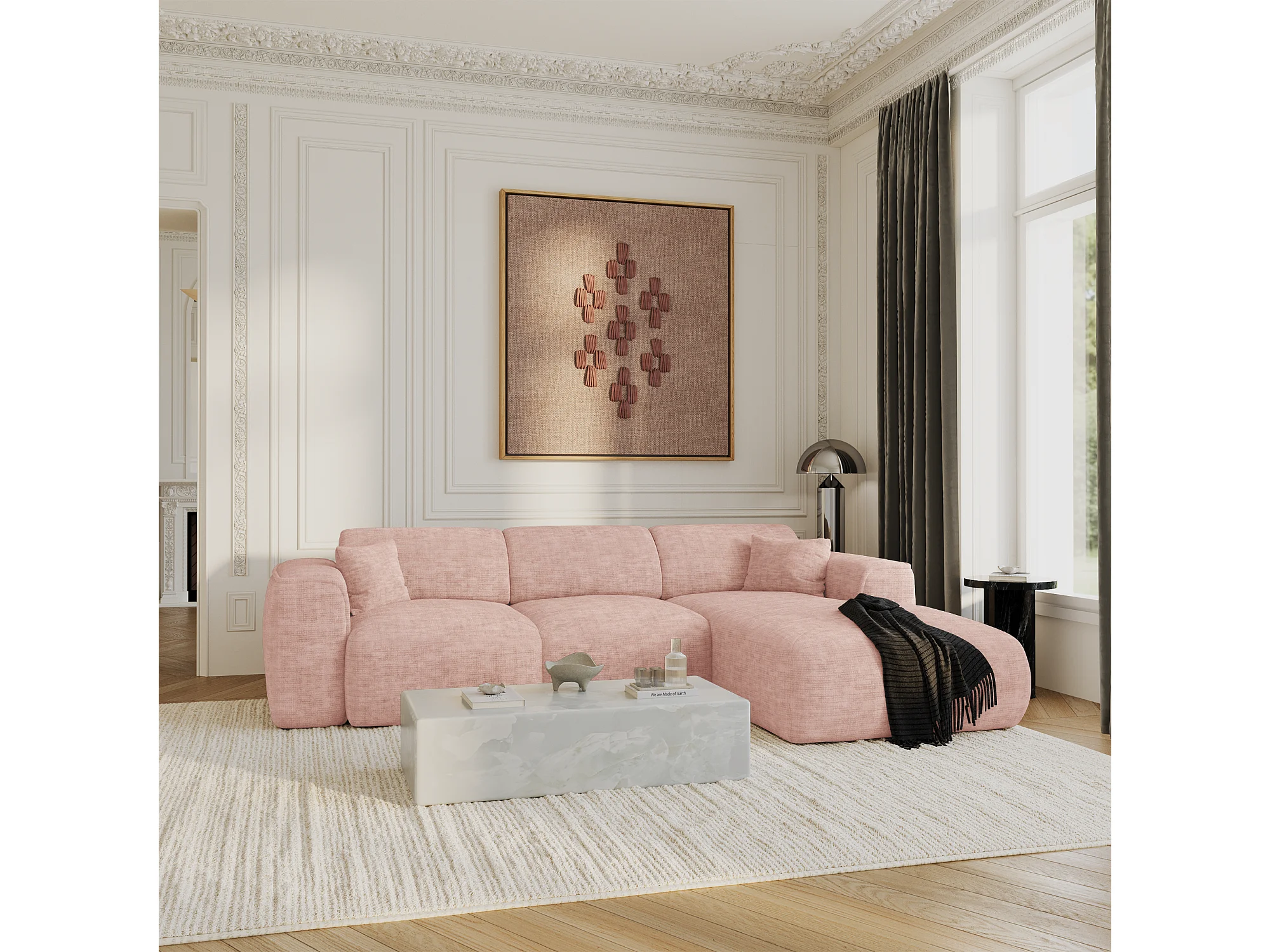 Canapé convertible angle droit 5 places velours texturé rose vintage YUMA