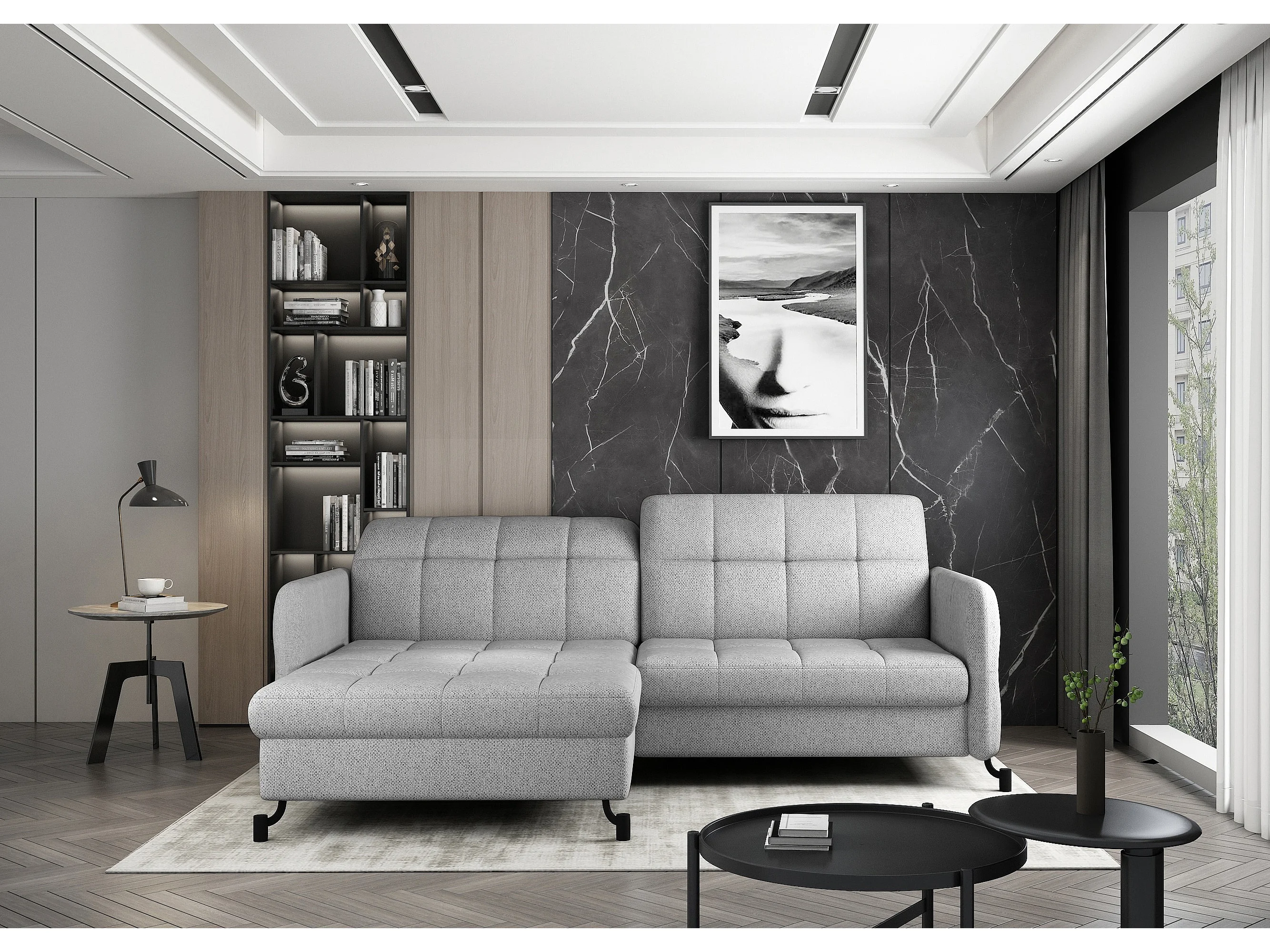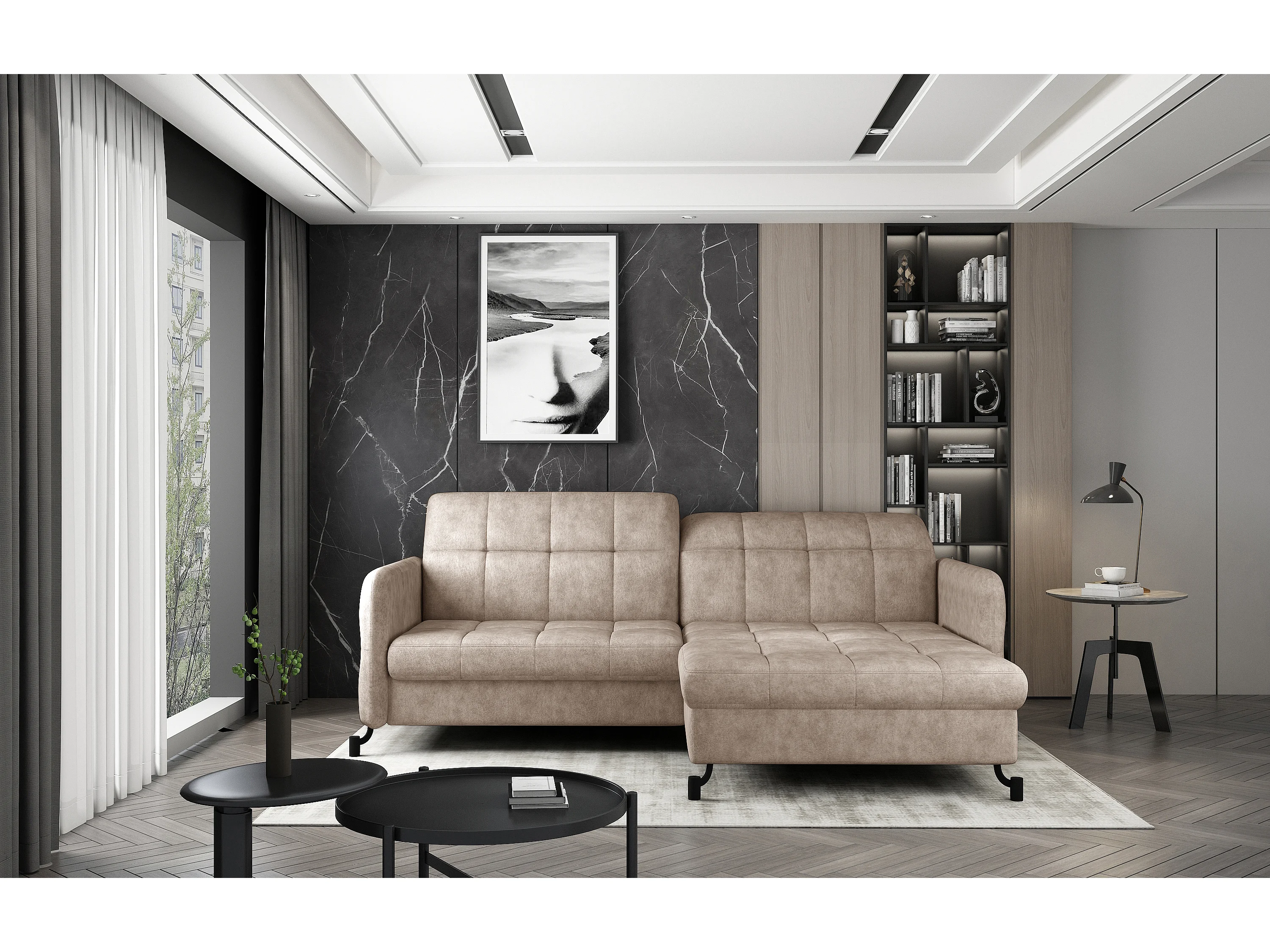 Canapé d'angle convertible tissu avec coffre de rangement LORI-Beige vintage-angle droit