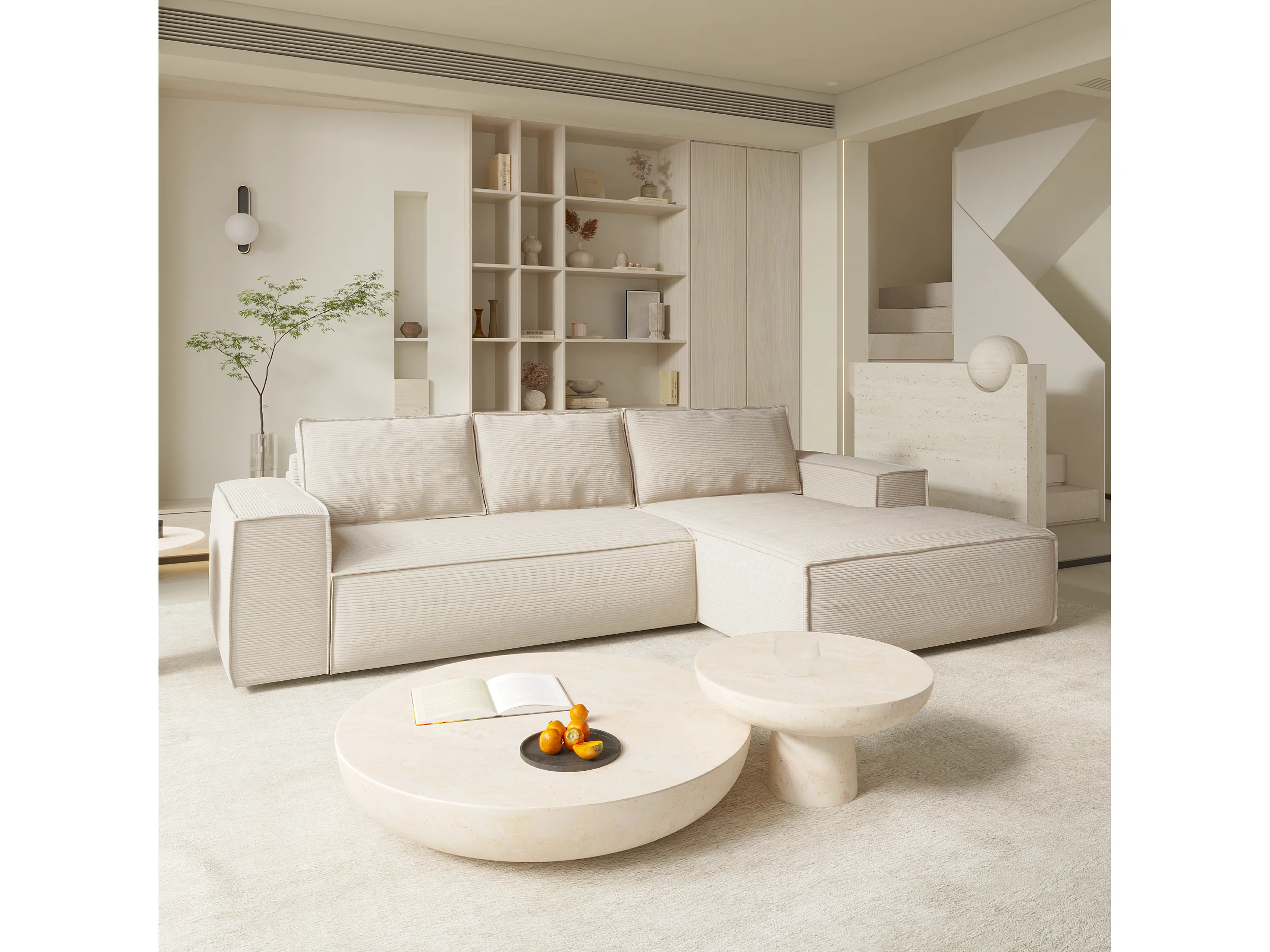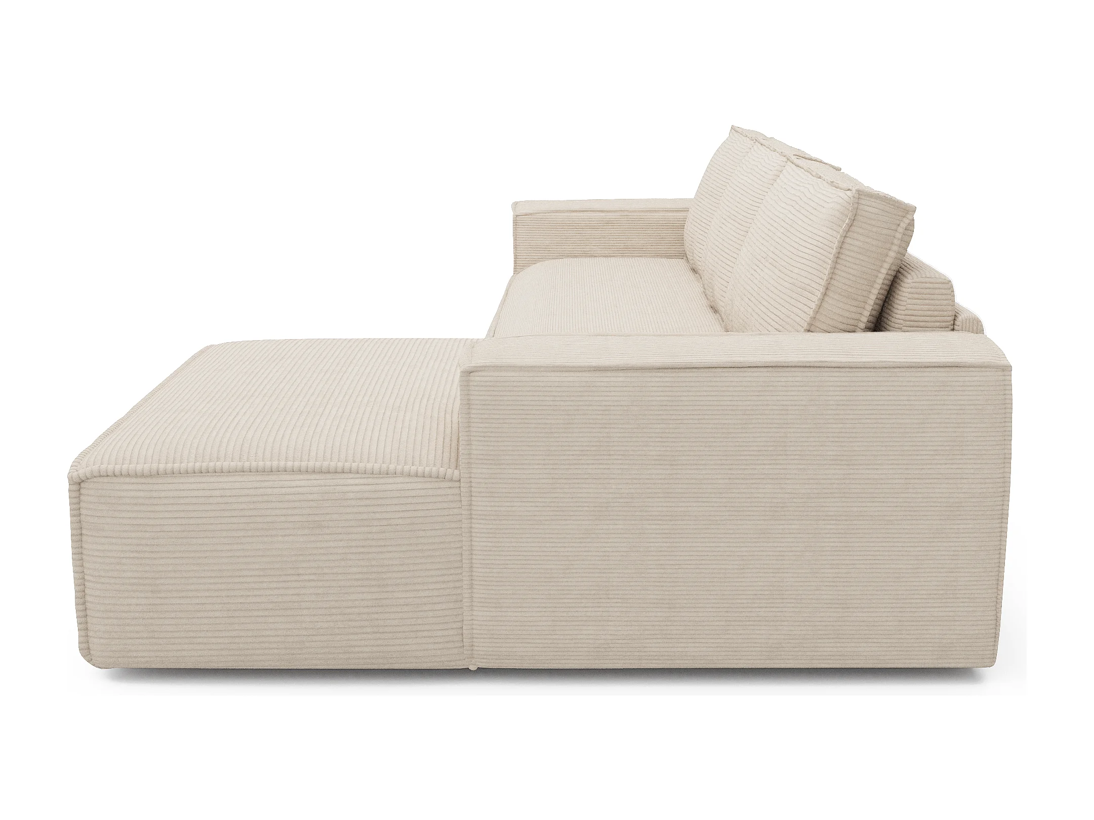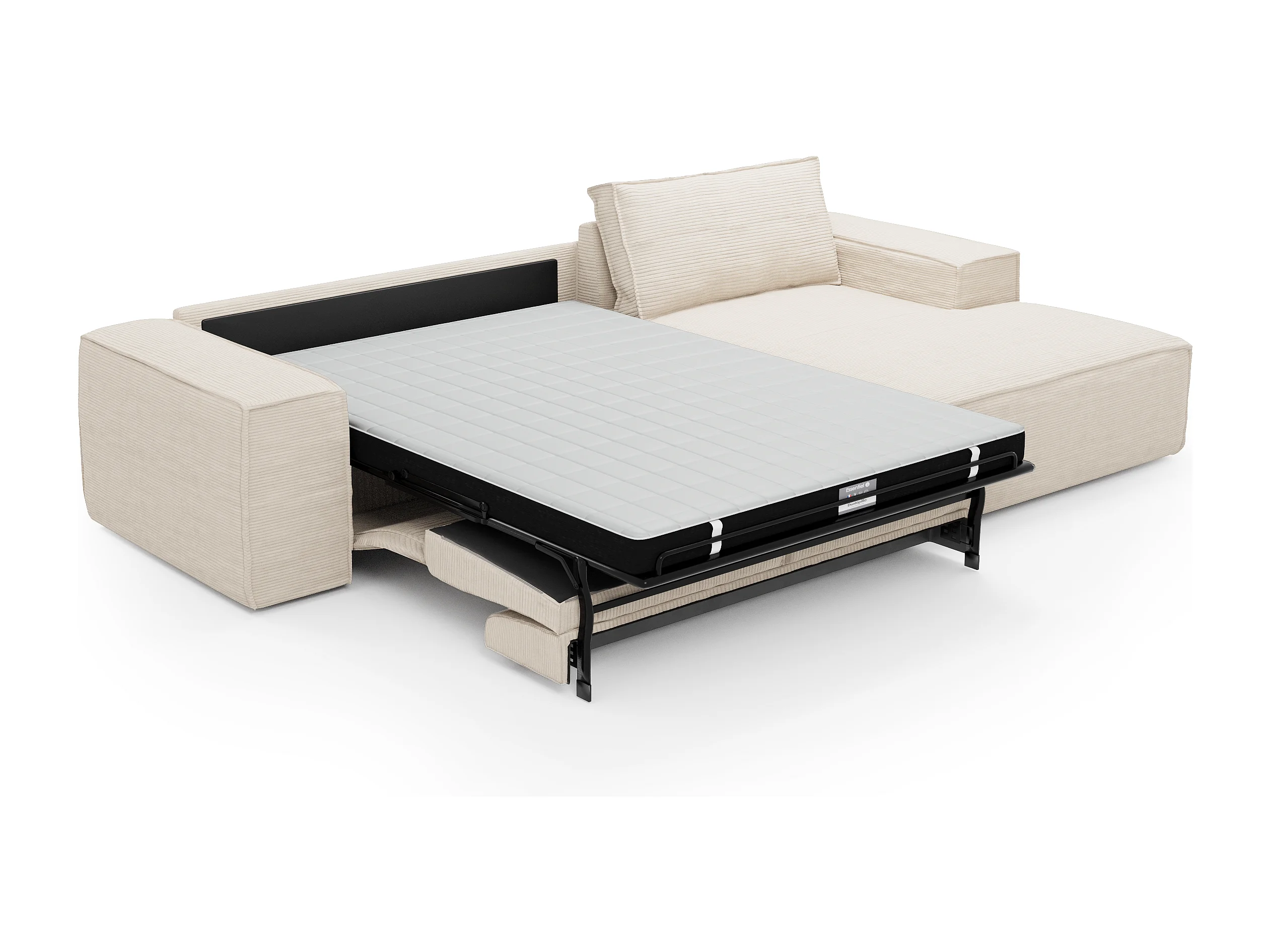Canapé convertible angle droit dunlopillo velours côtelé crème 140cm JOAN