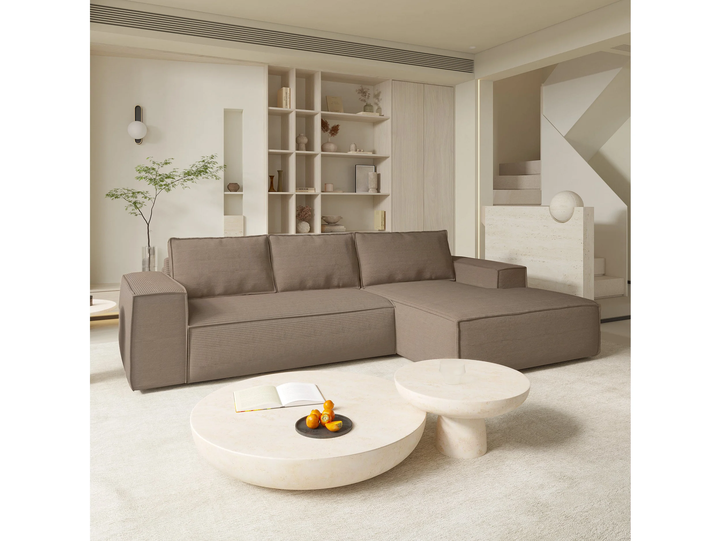 Canapé convertible angle droit dunlopillo velours côtelé taupe 140cm JOAN