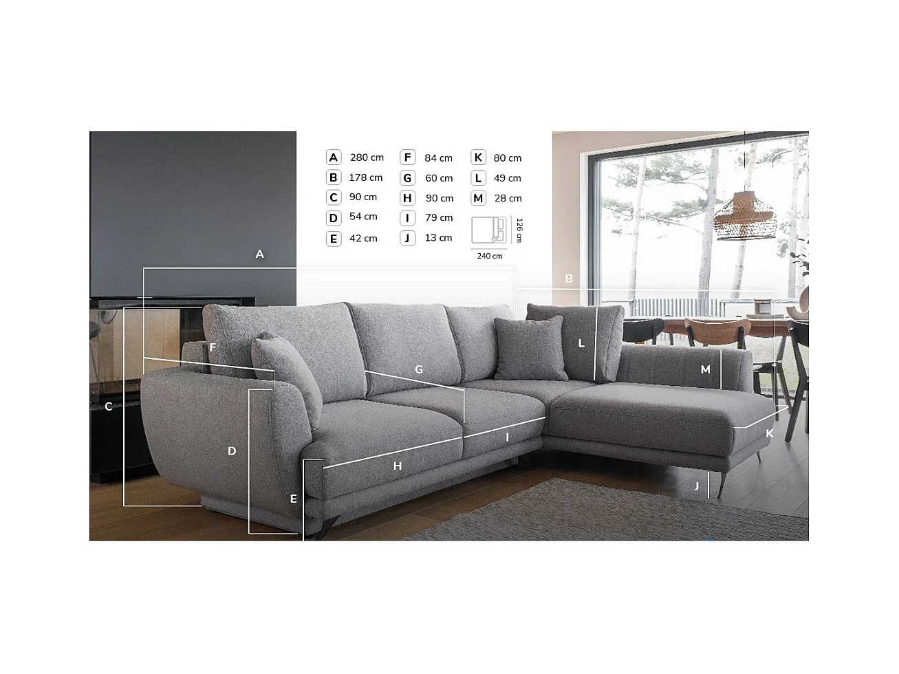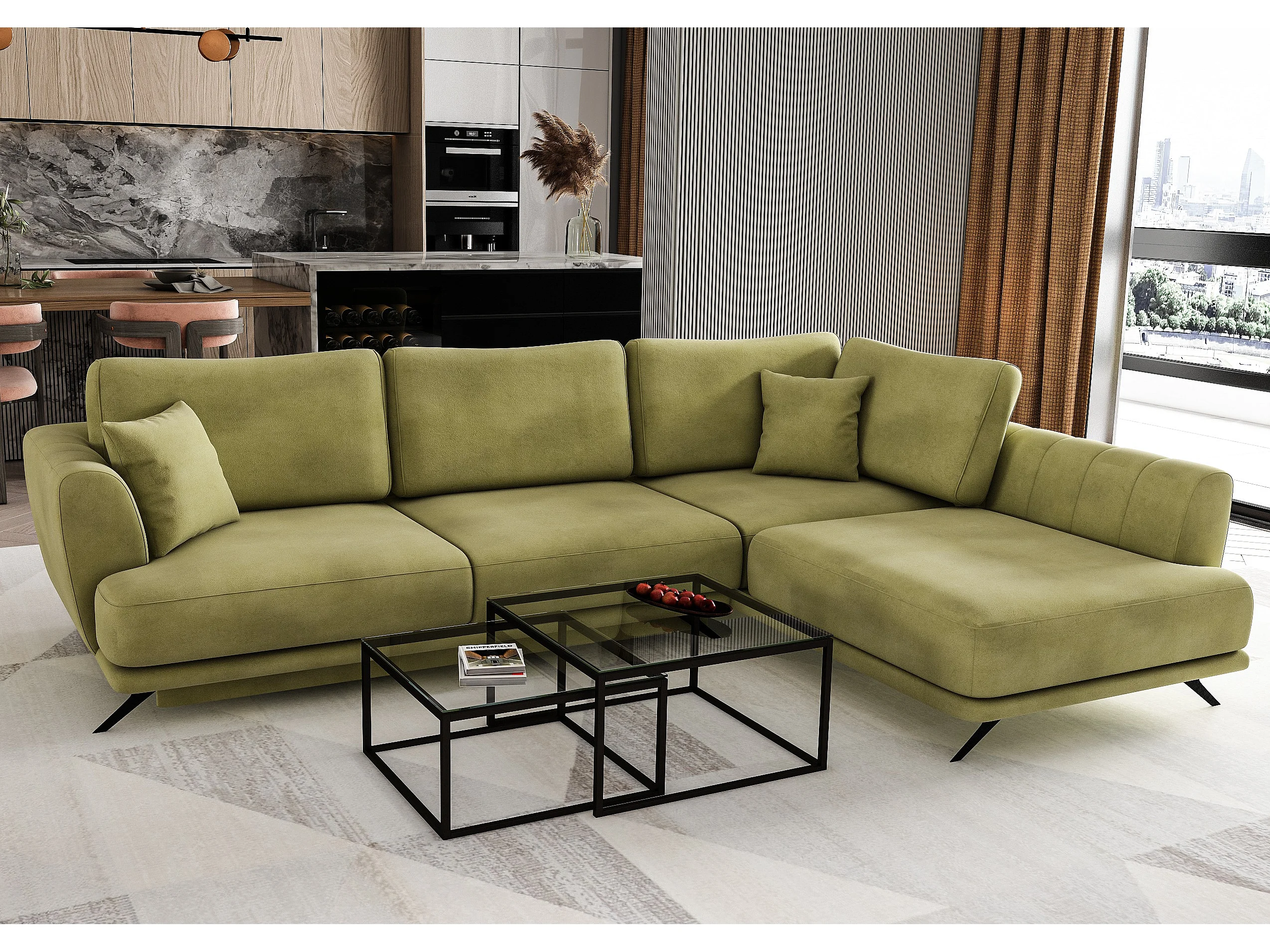 Canapé convertible angle droit tissu vert kaki Savary 280cm