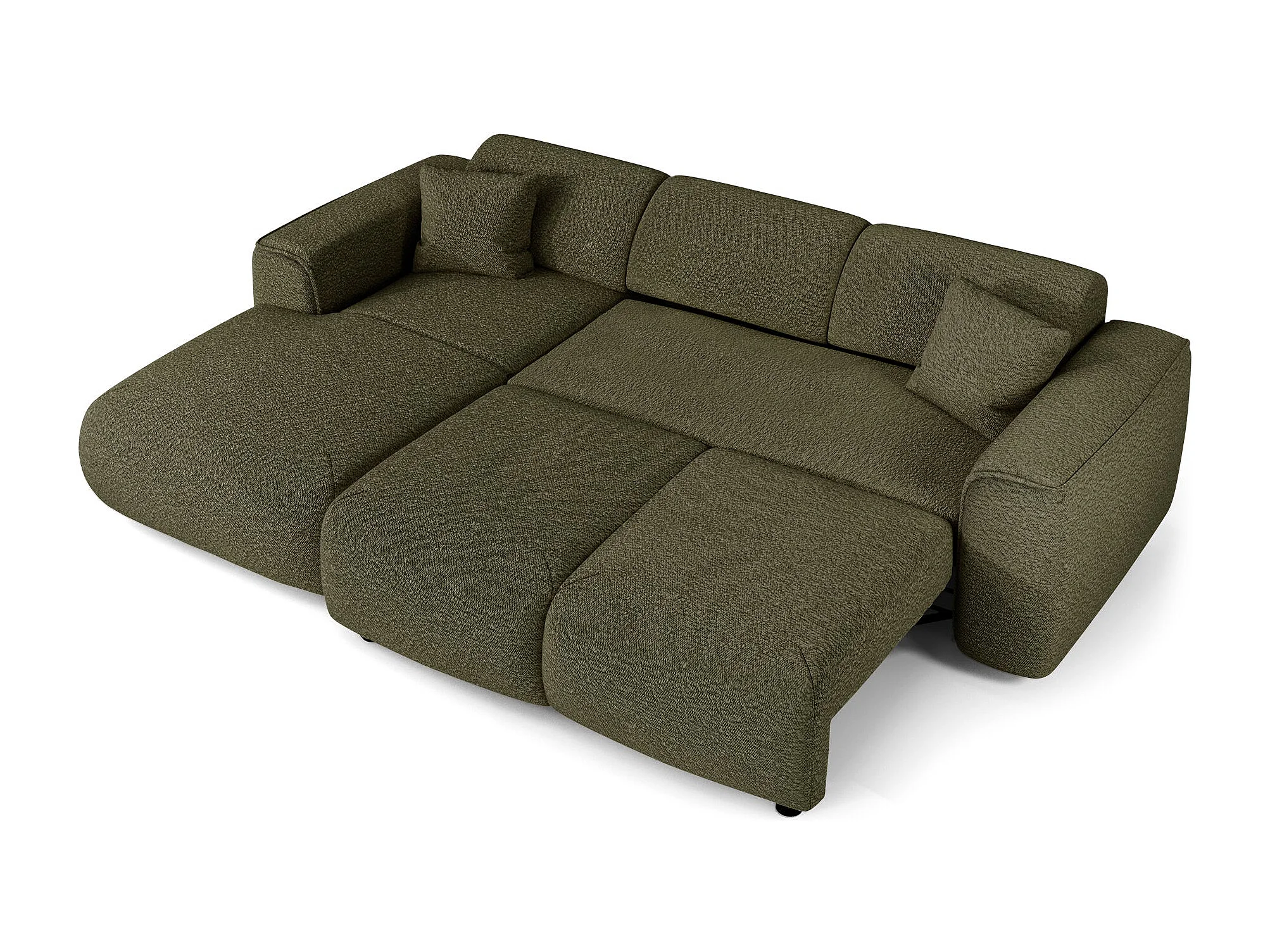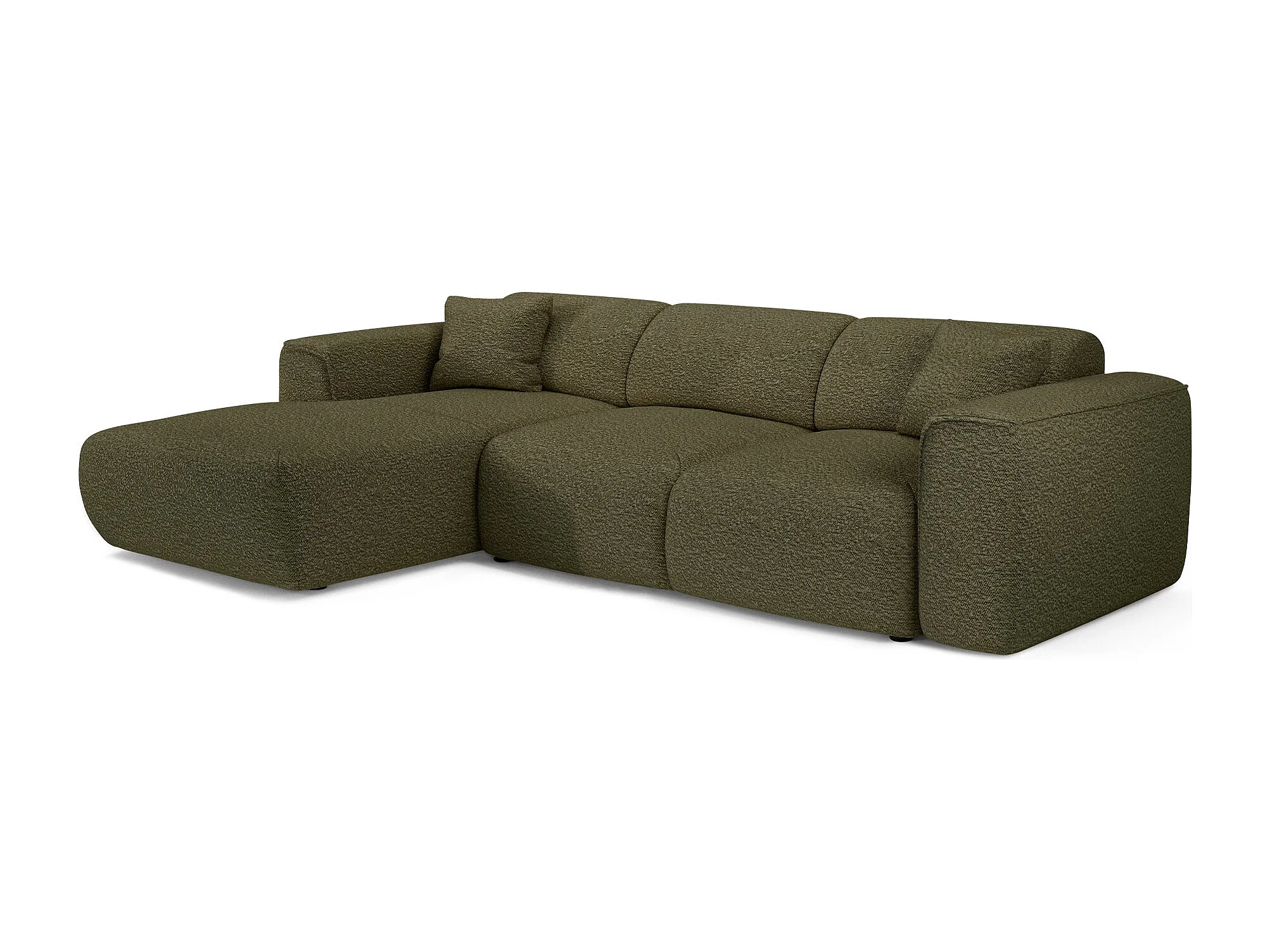 Canapé convertible angle gauche 5 places bouclette vert olive YUMA