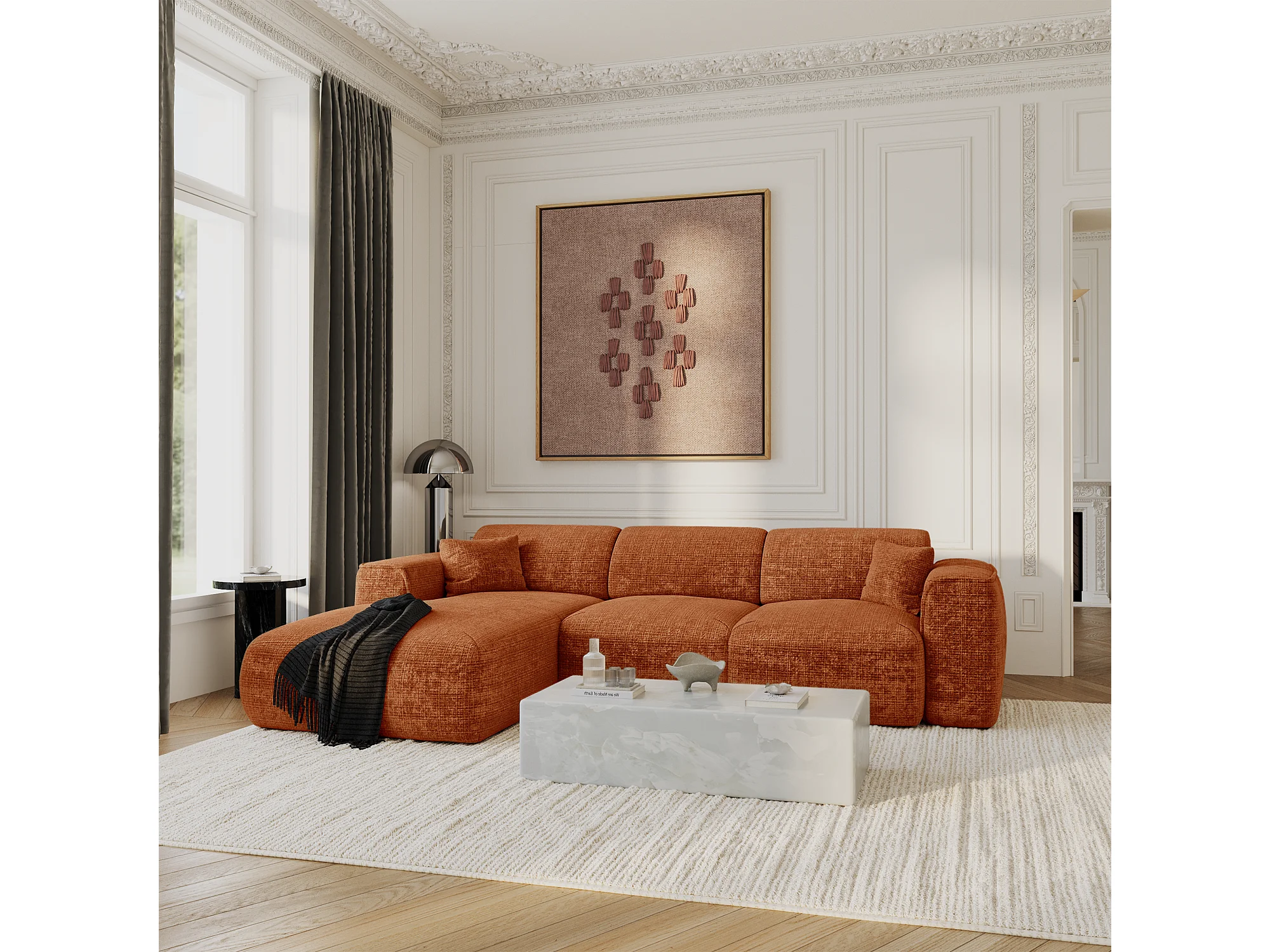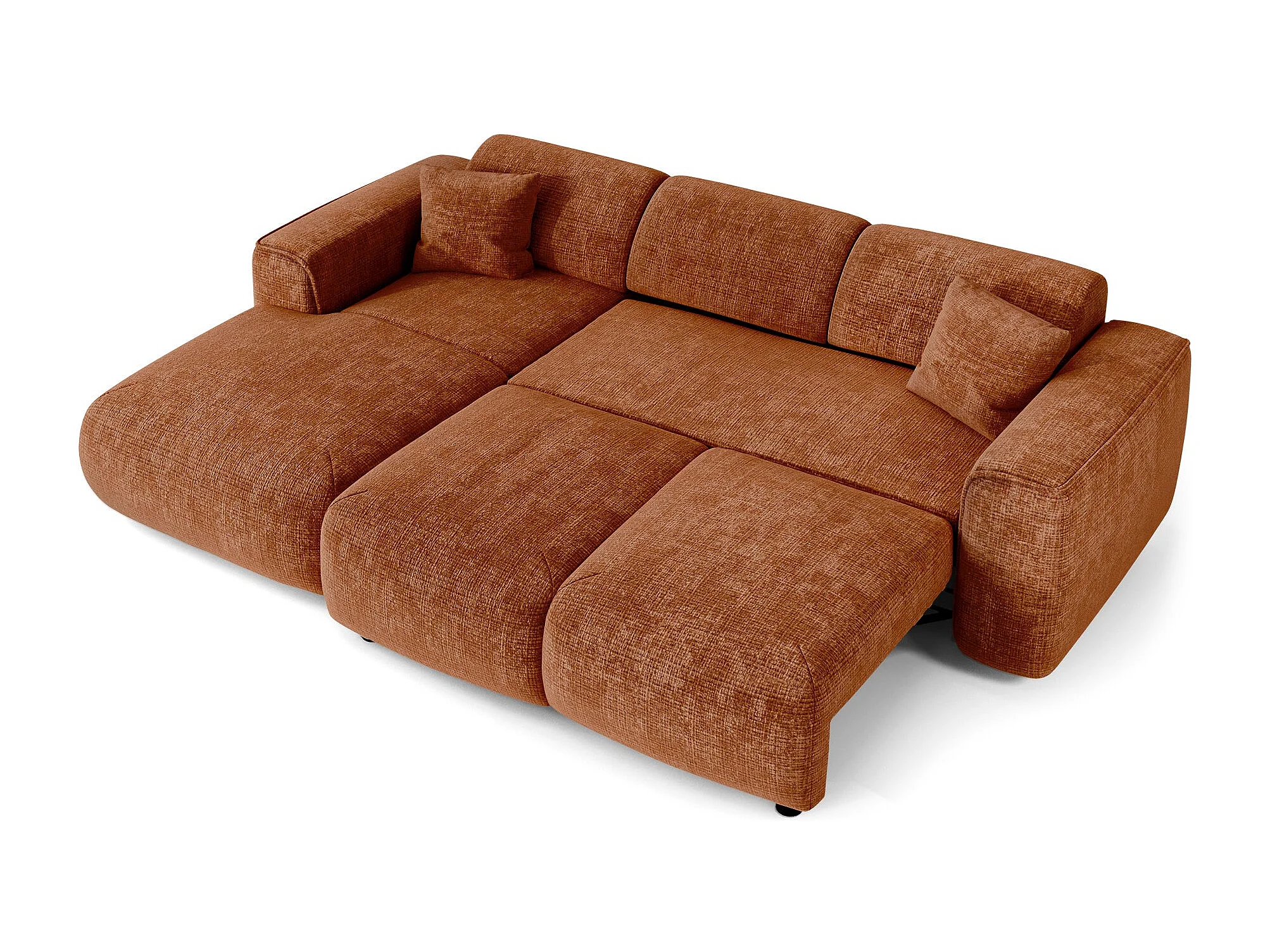Canapé convertible angle gauche 5 places velours gaufré terracotta YUMA