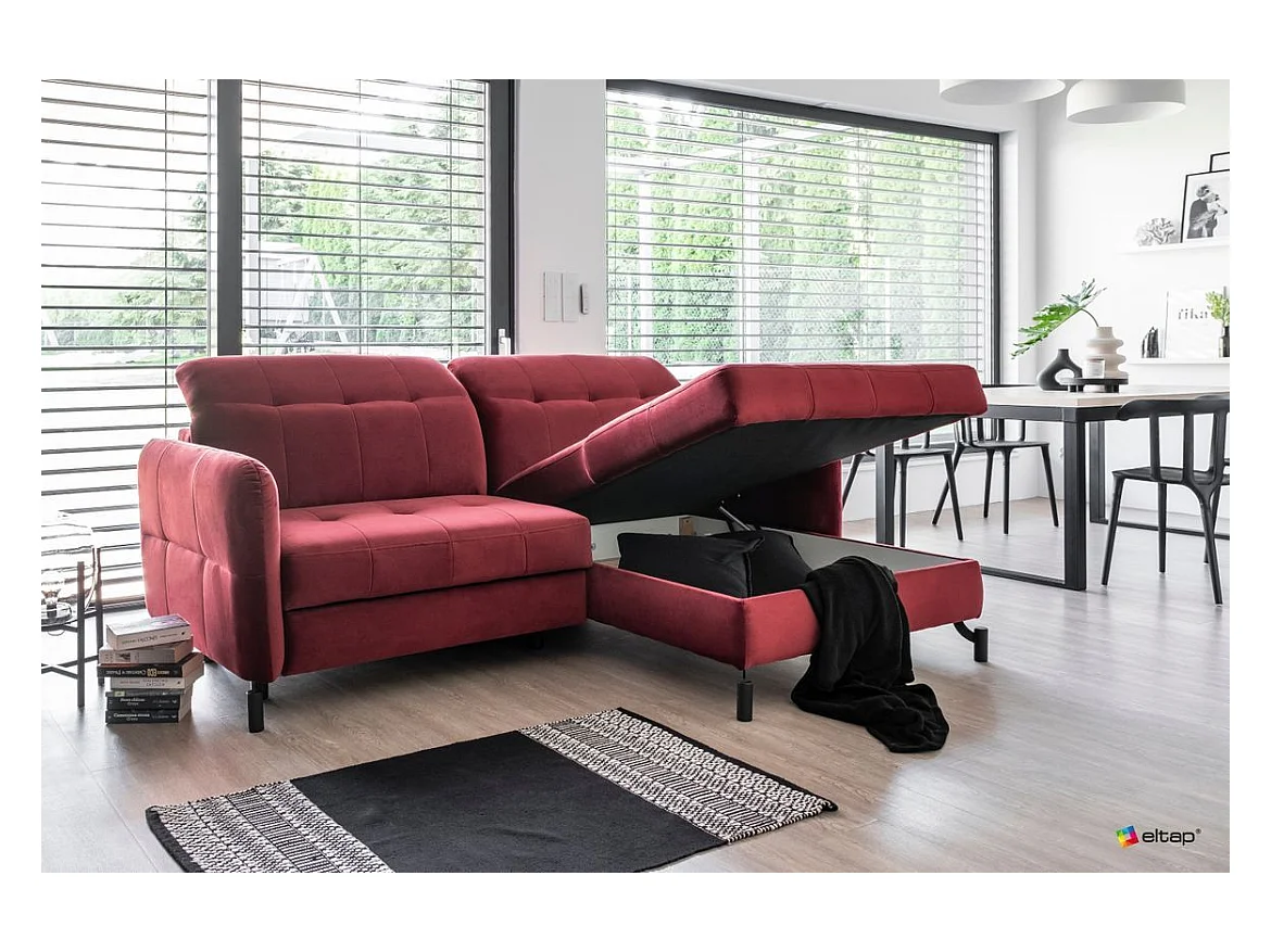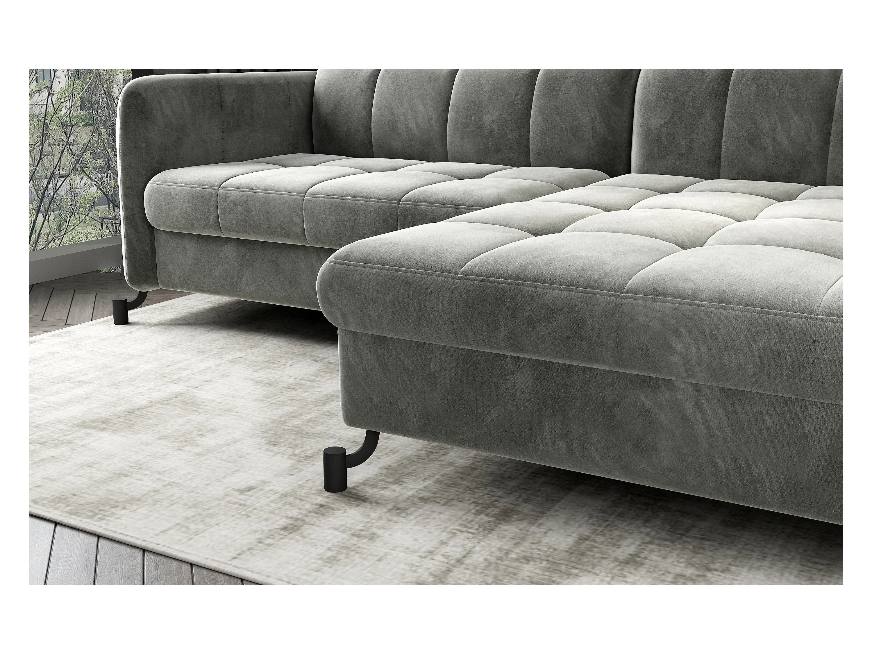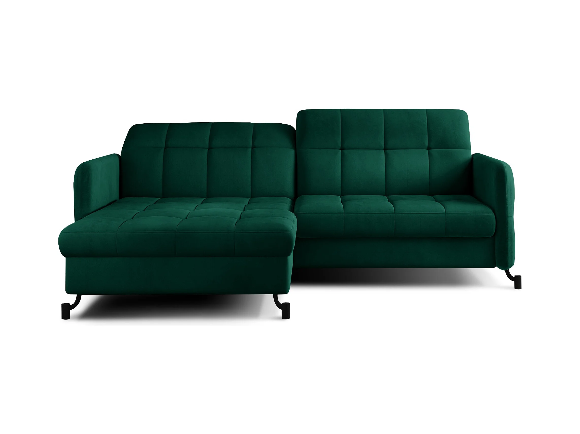 Canapé d'angle convertible velours avec coffre de rangement LORI-Vert épinard-angle gauche