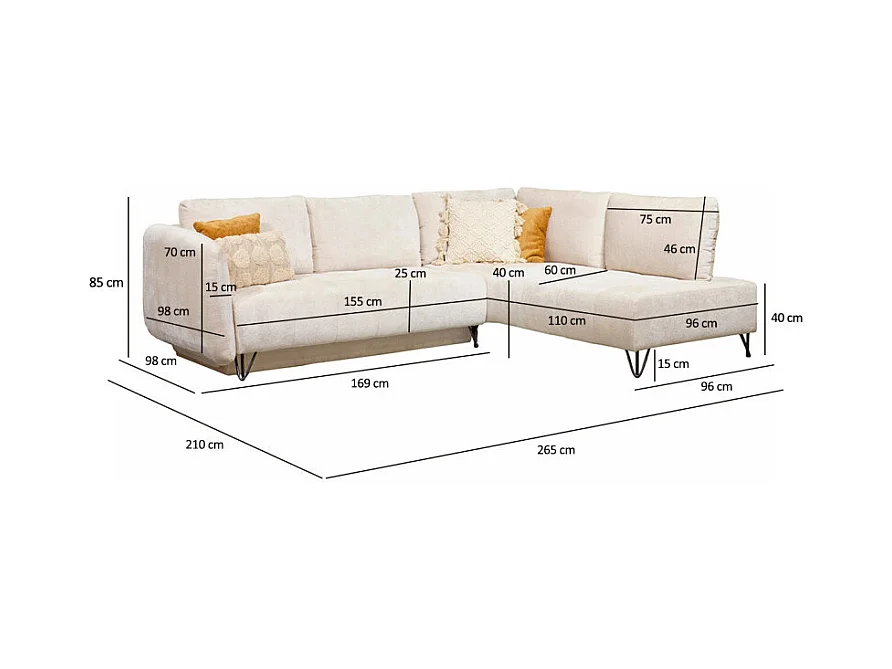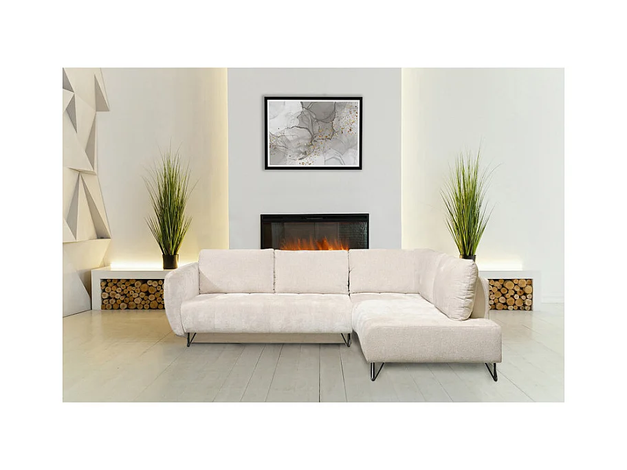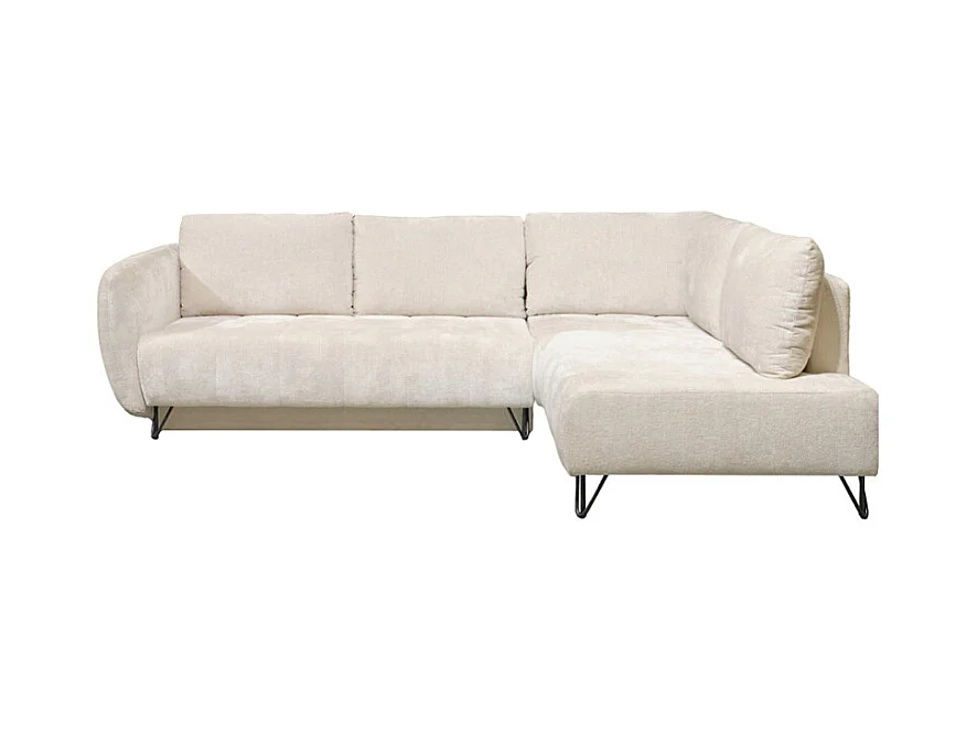 Canapé convertible angle droit L. 265 cm tissu côtelé écru - SAMUEL