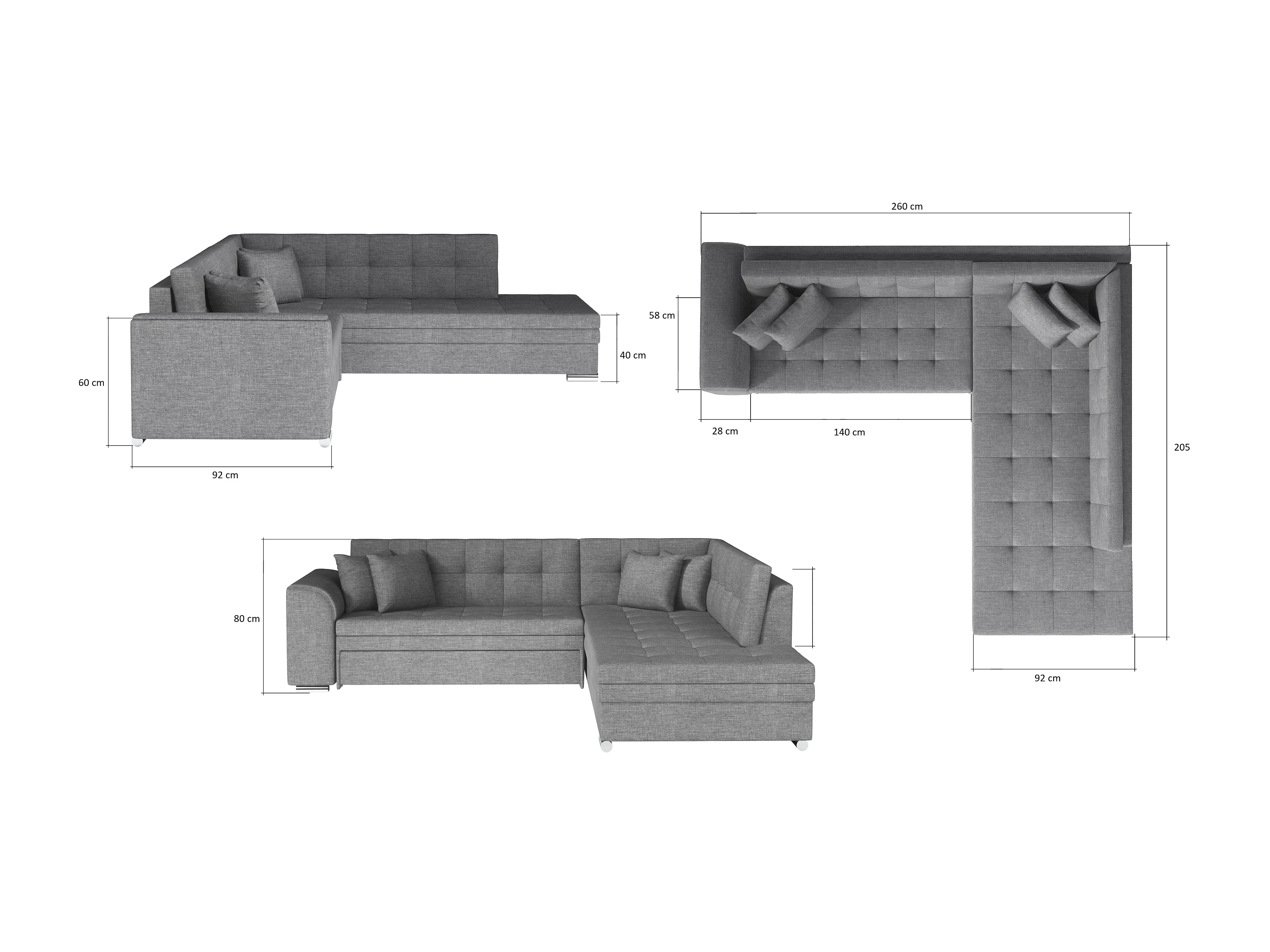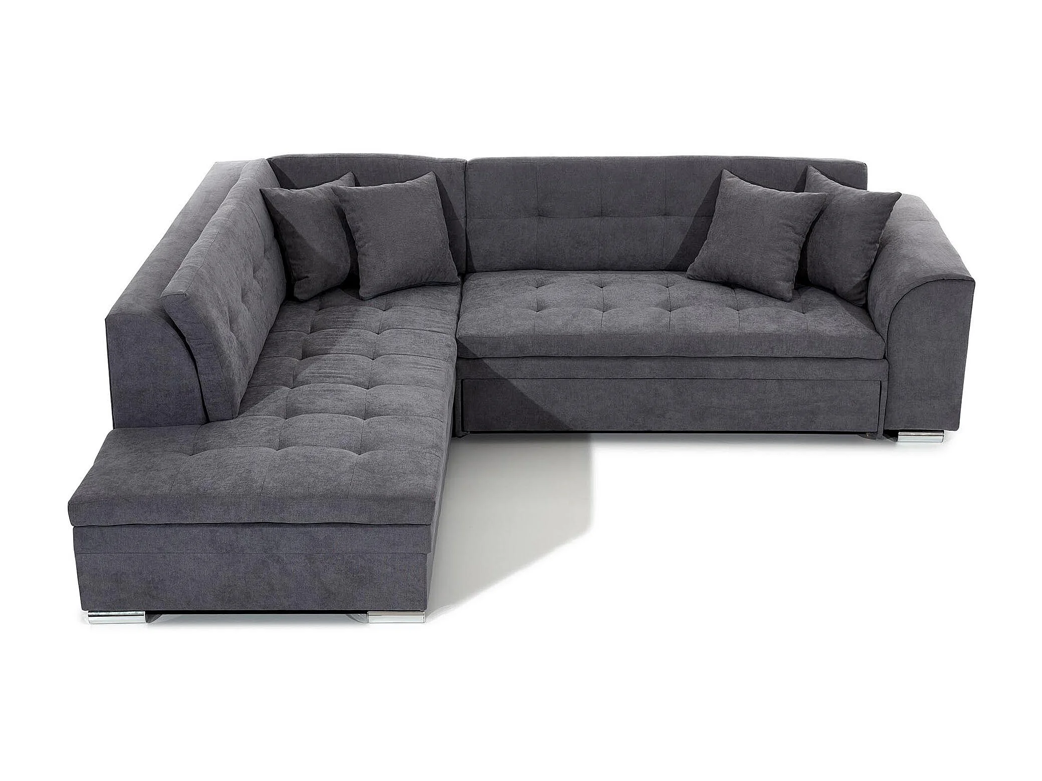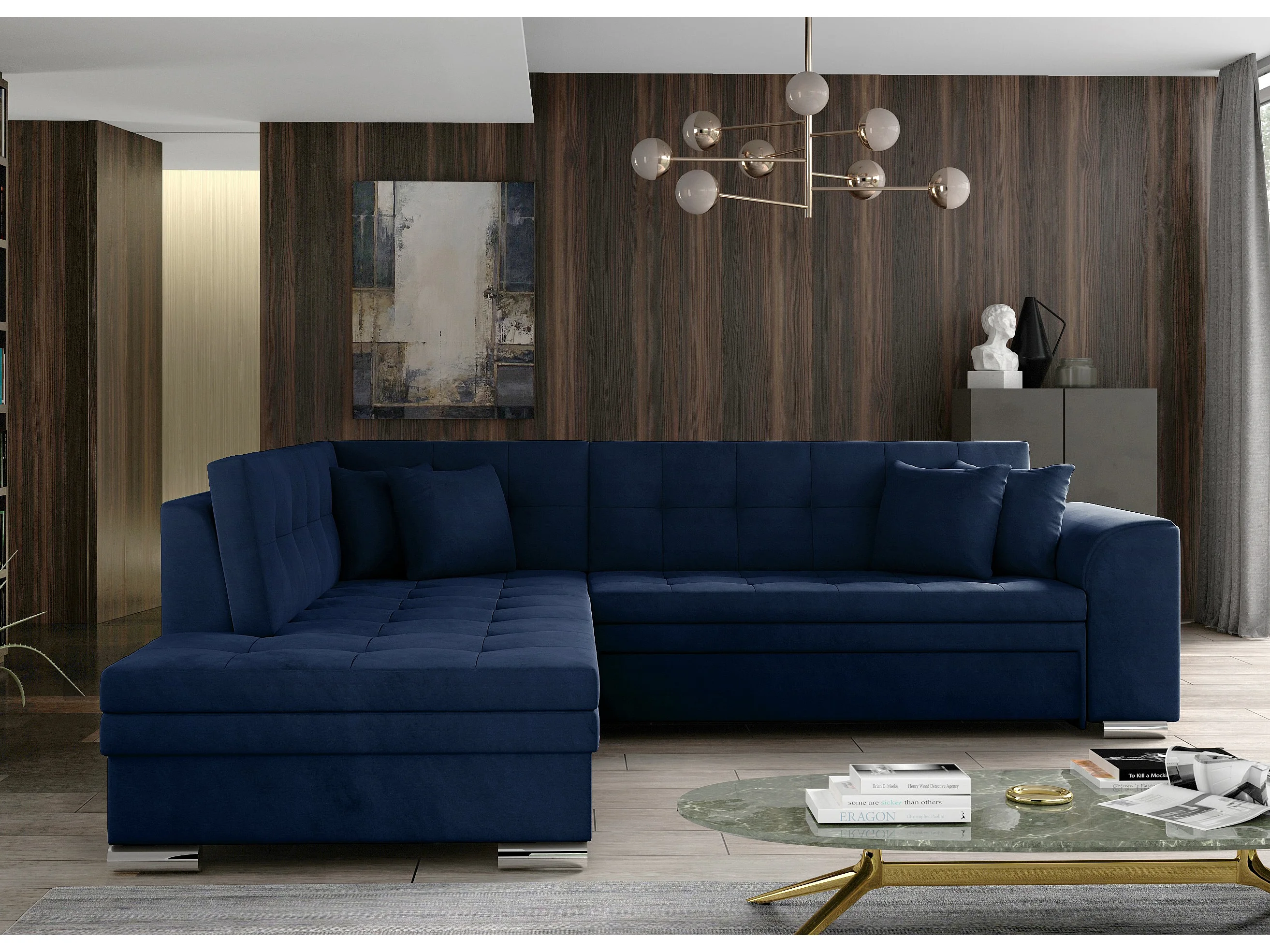 Canapé convertible angle gauche velours bleu nuit et chromé Pika 260cm