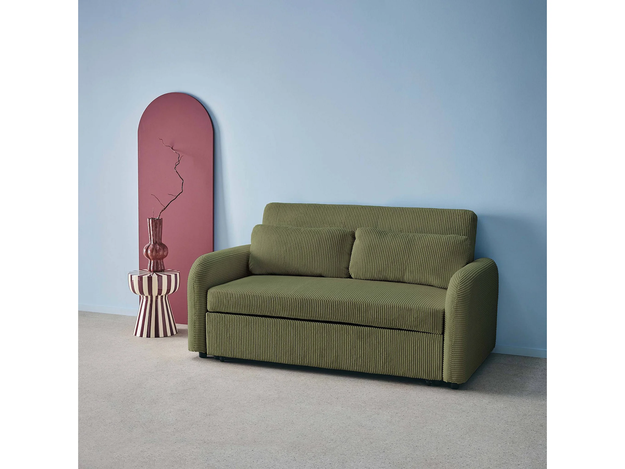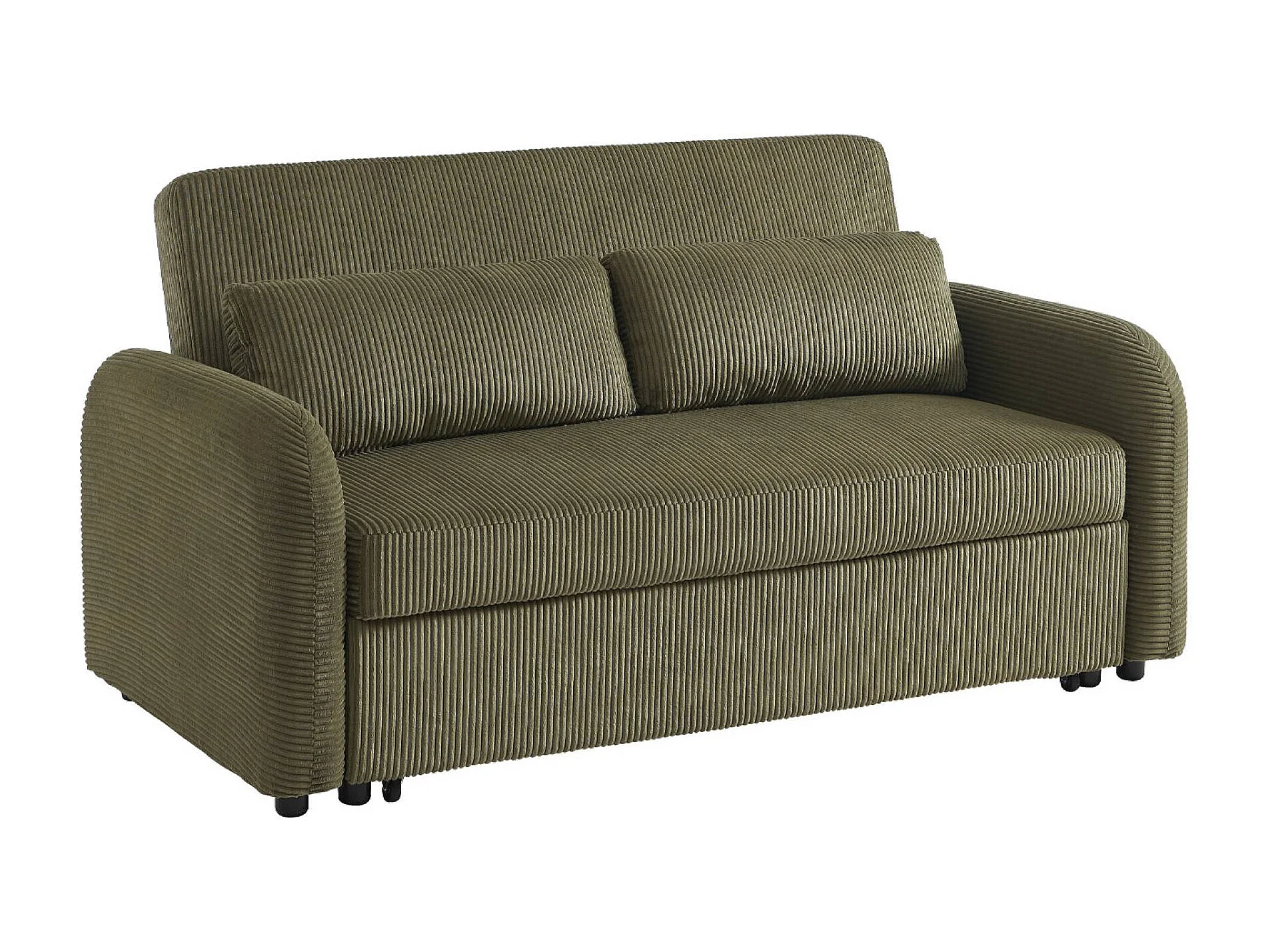 Canapé convertible arrondi 2 places velours côtelé kaki L 168 x P 90 x H 88cm - Lino