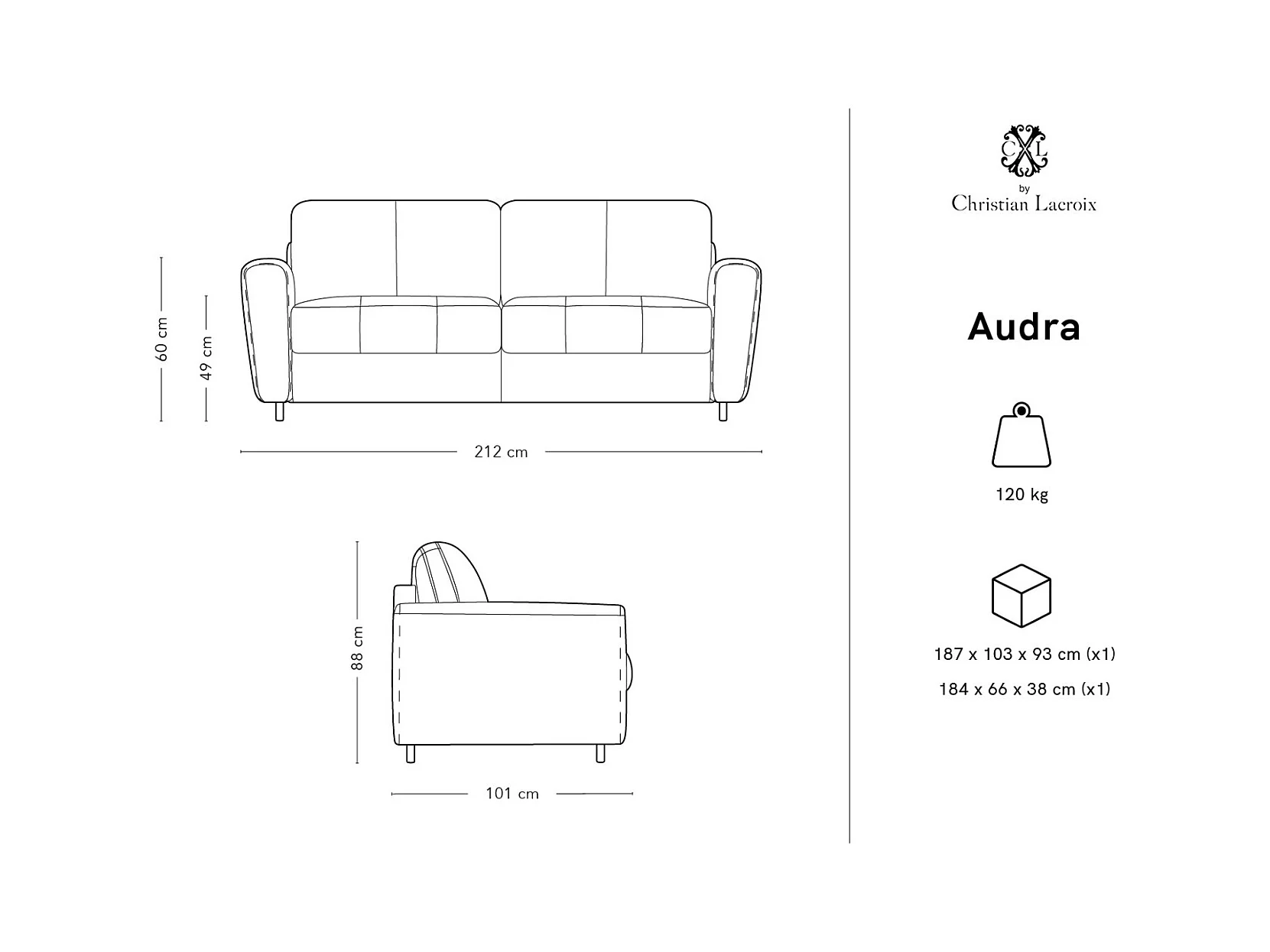 CXL by Christian Lacroix - Canapé convertible "Audra" 4 places en velours jaune - 212x101x88cm