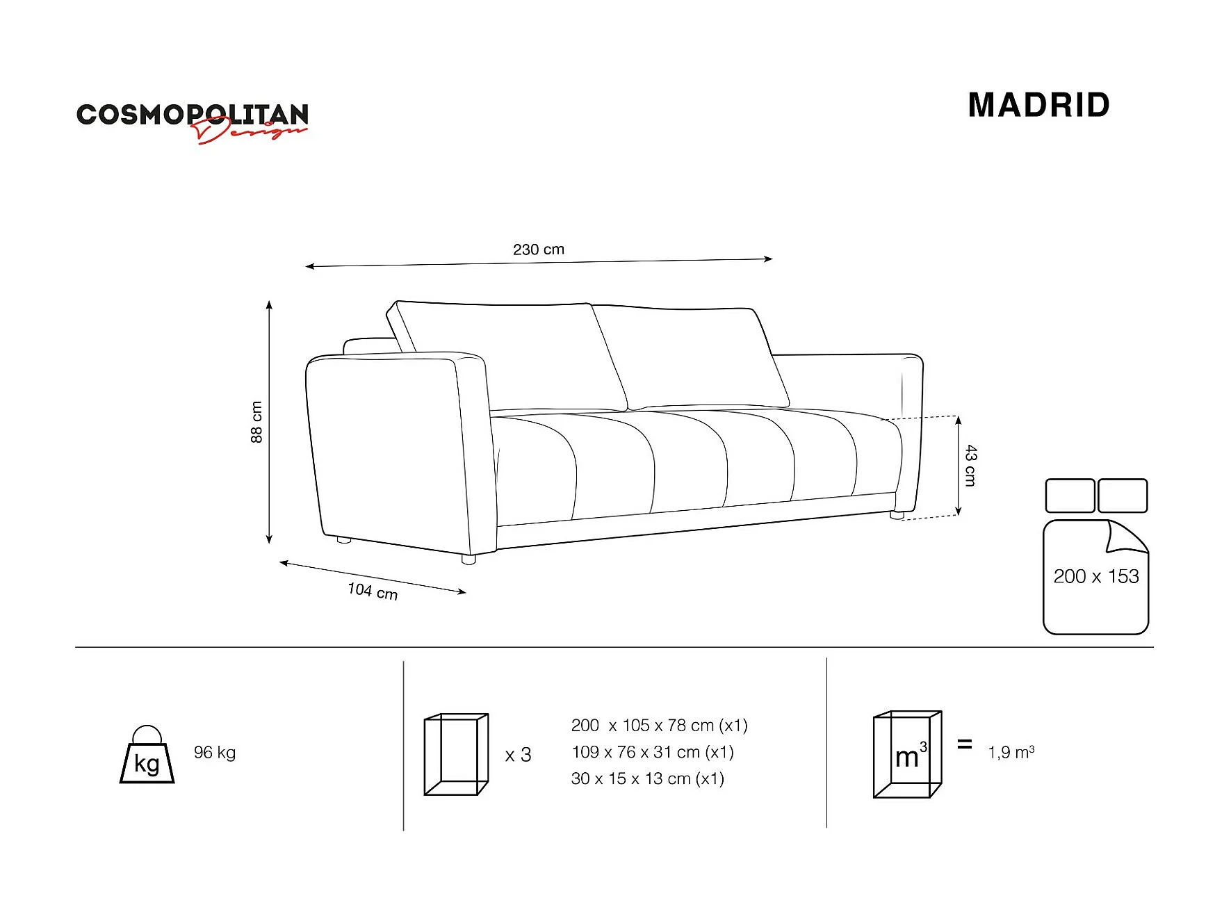Cosmopolitan Design - Canapé convertible avec coffre de rangement "Madrid" 3 places en tissu structurel gris - 230x104x88cm