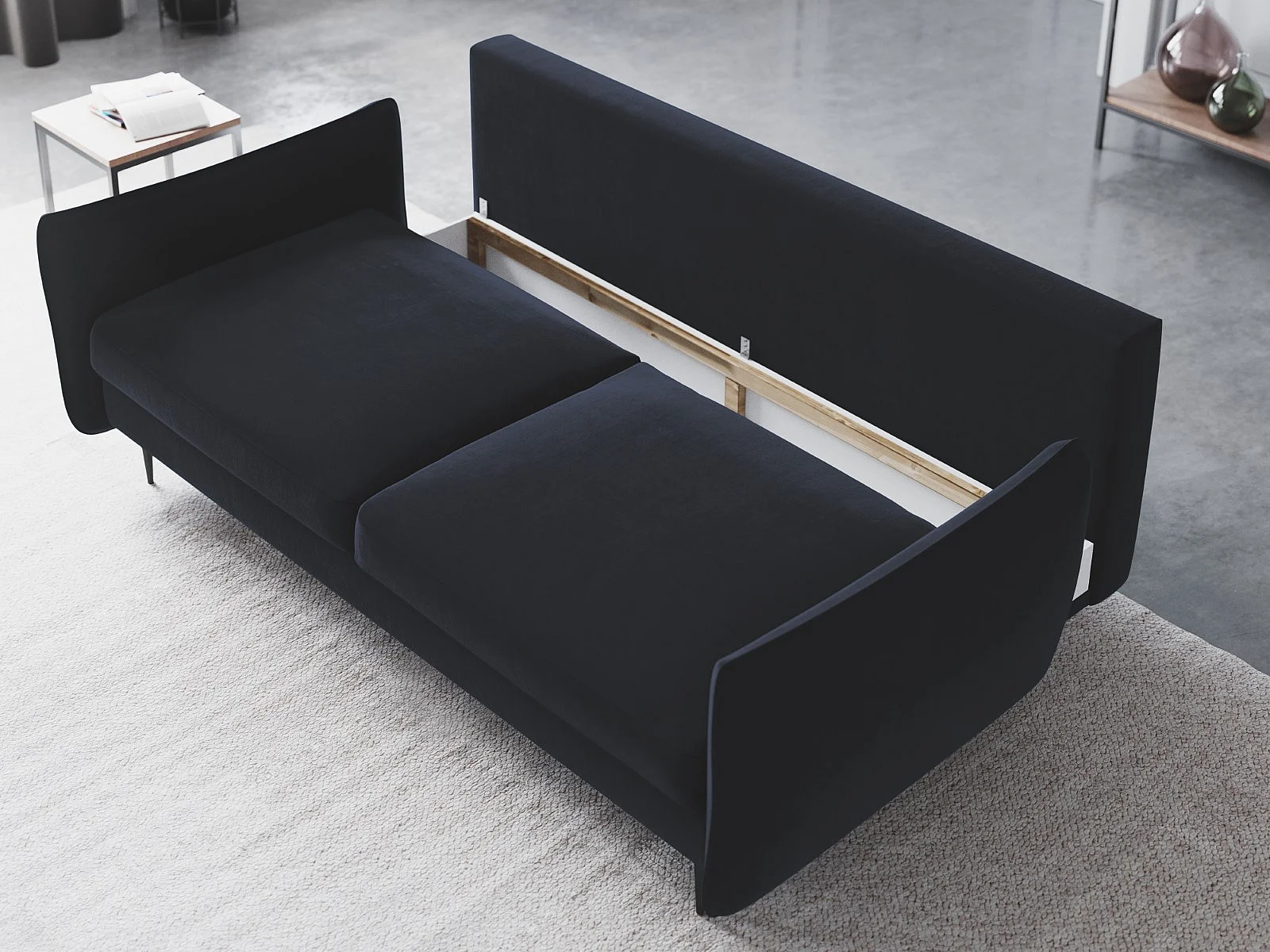 Cosmopolitan Design - Canapé convertible avec coffre de rangement "Vermont" 3 places en velours bleu foncé - 222x105x90cm