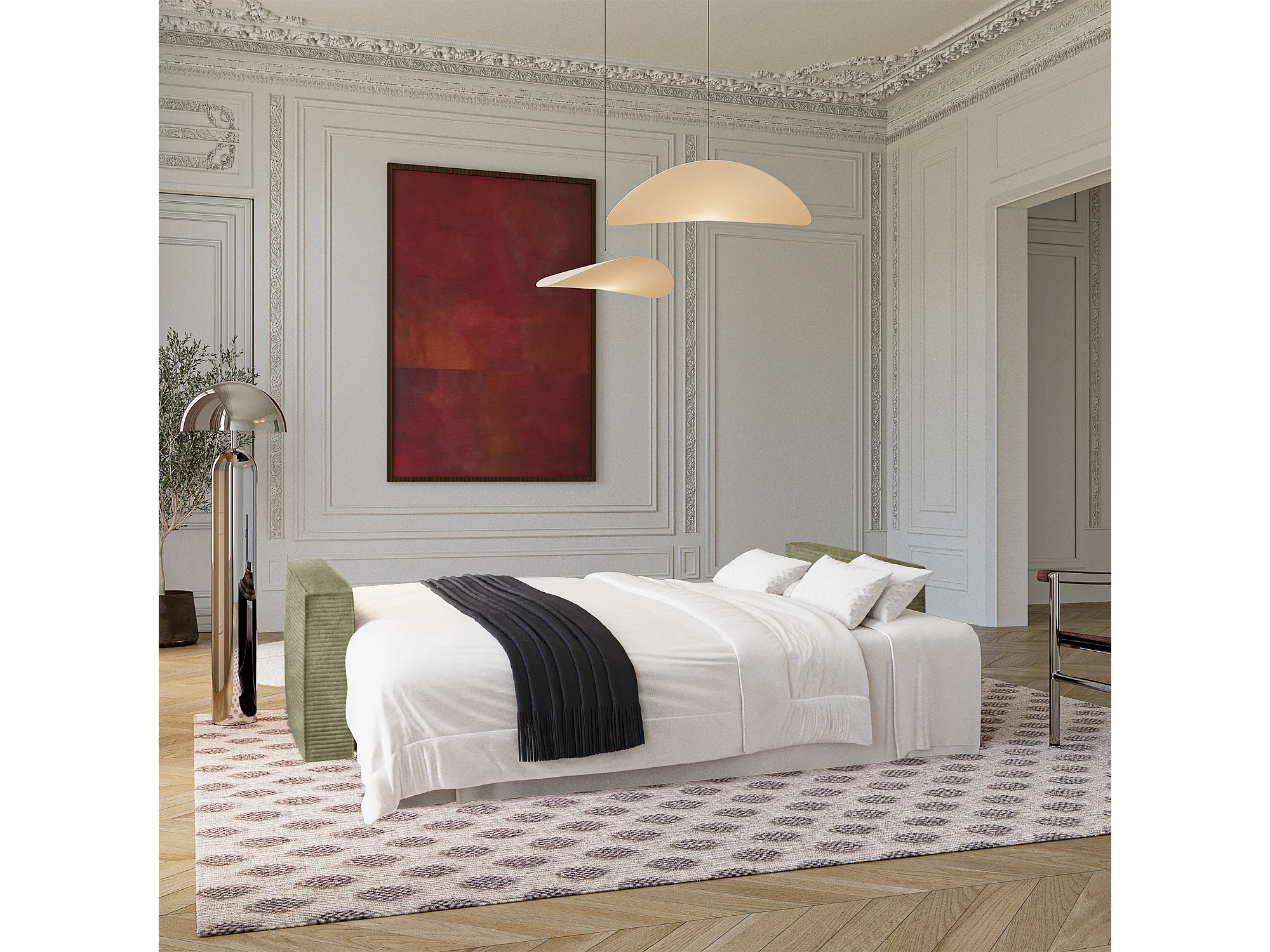 Canapé convertible avec coffre en Velours côtelé