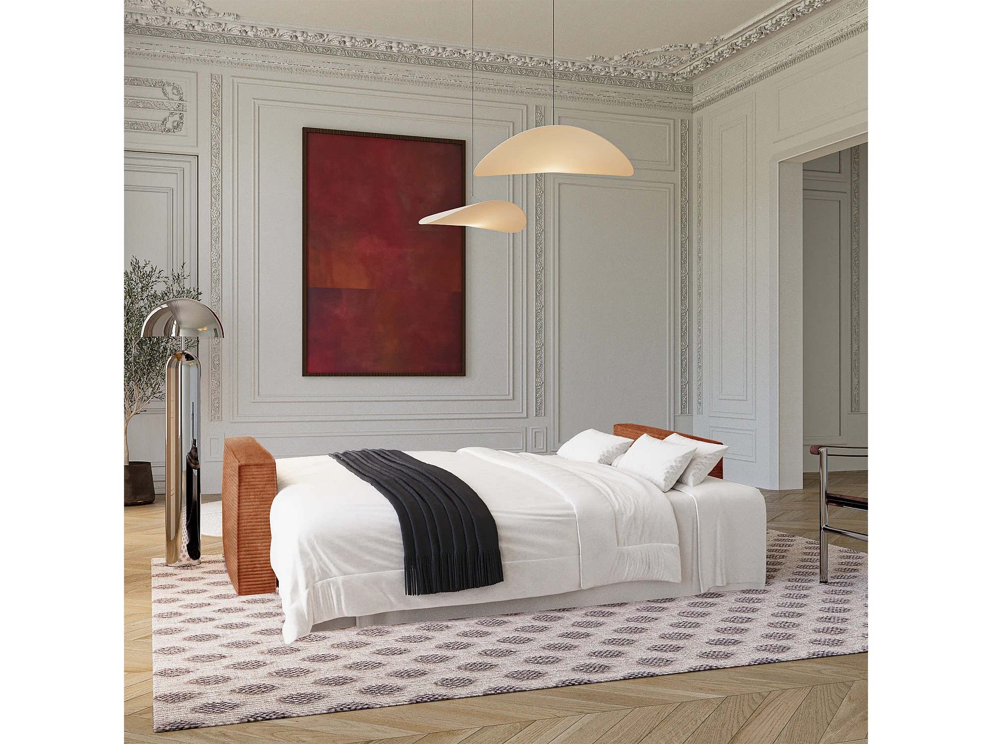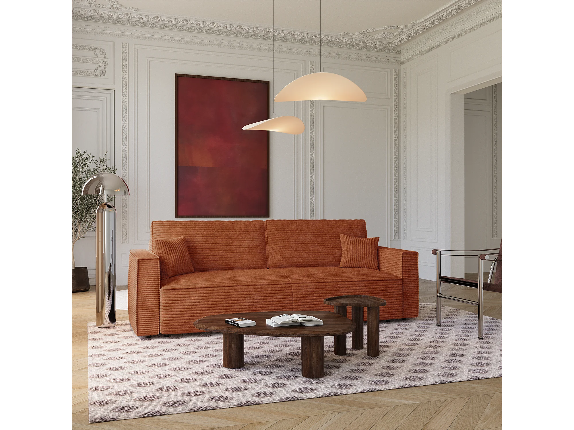 Canapé convertible avec coffre en Velours côtelé