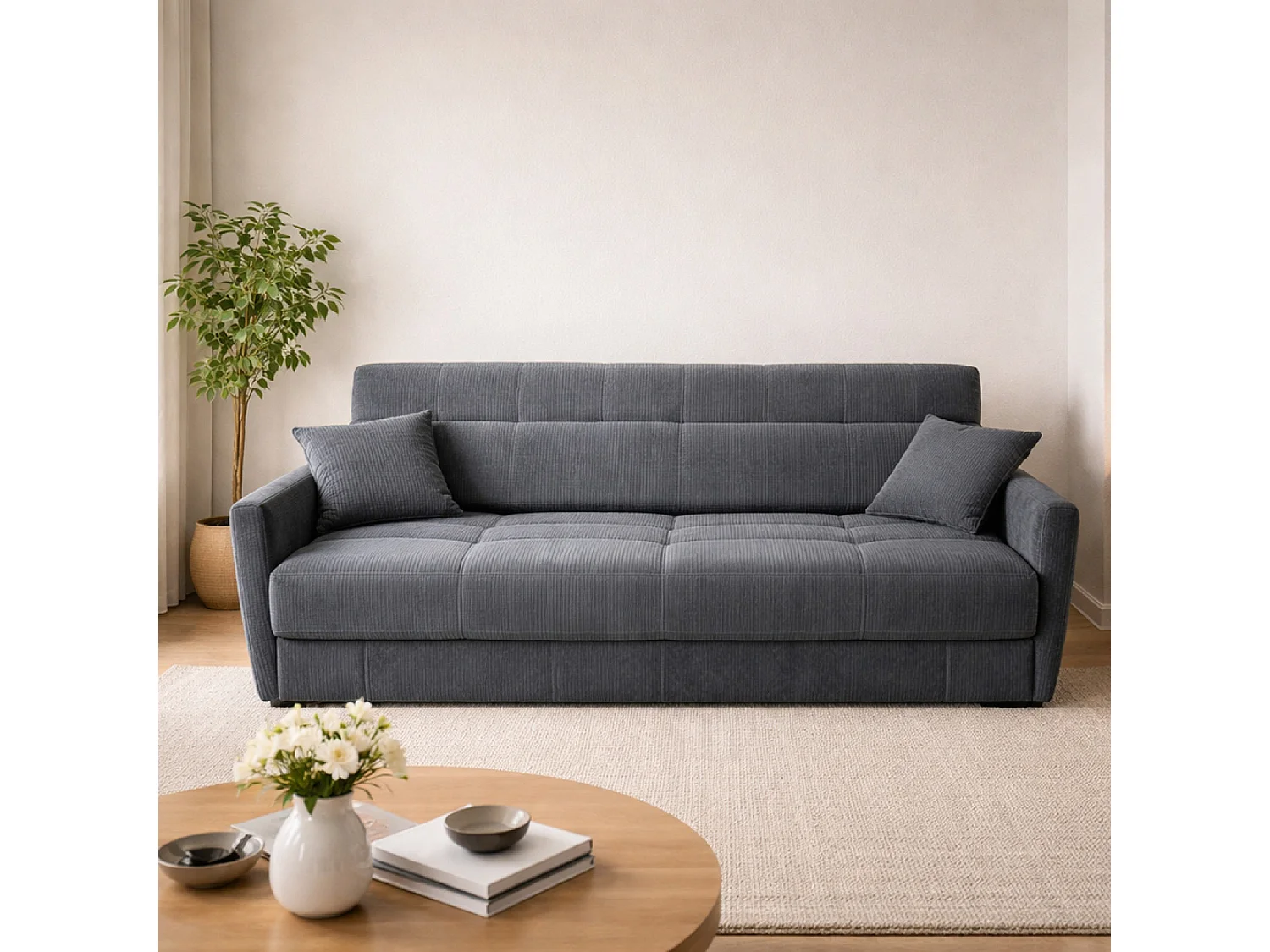 Canapé convertible avec coffre en velours côtelé gris 3 places ADARE