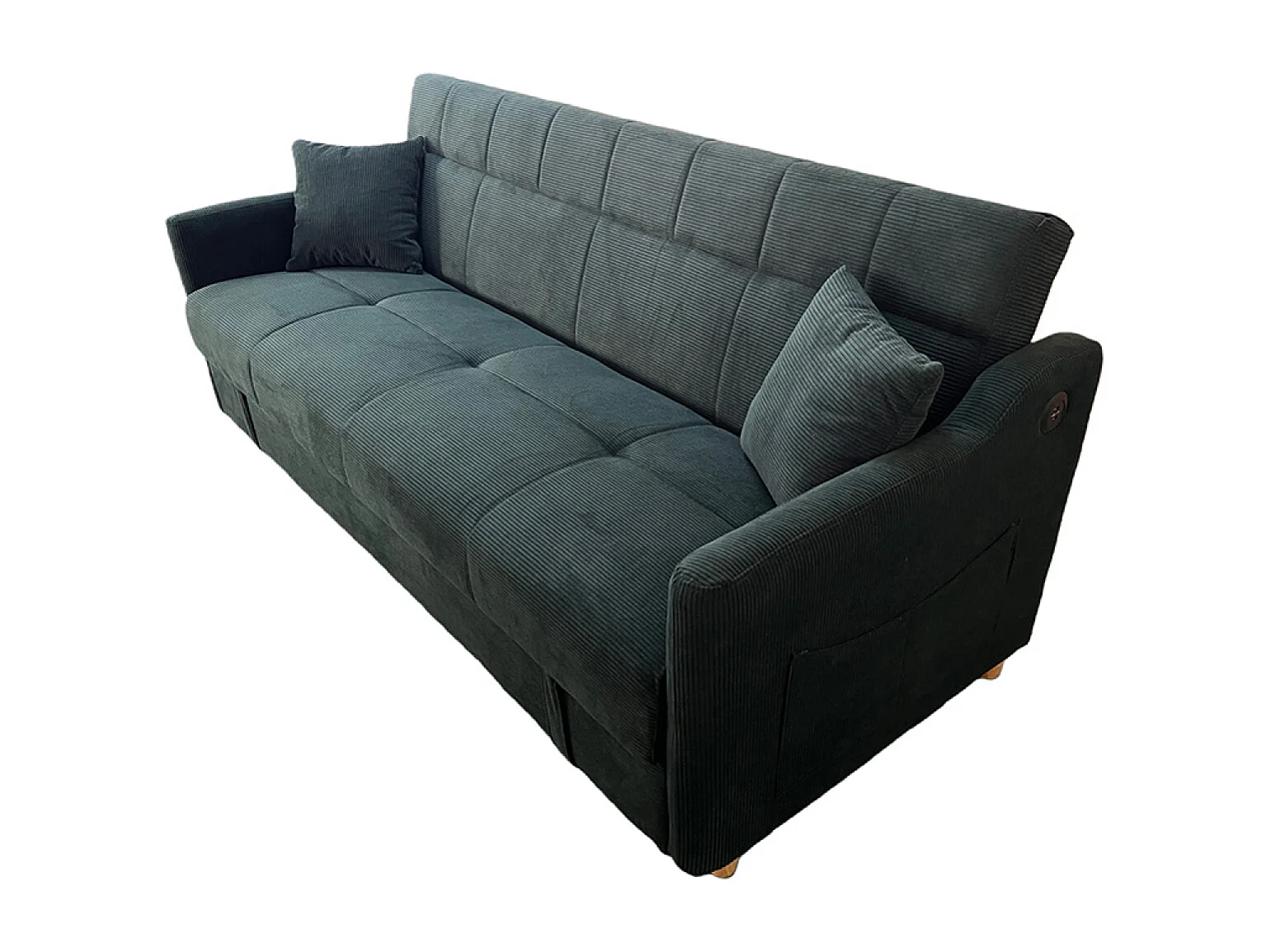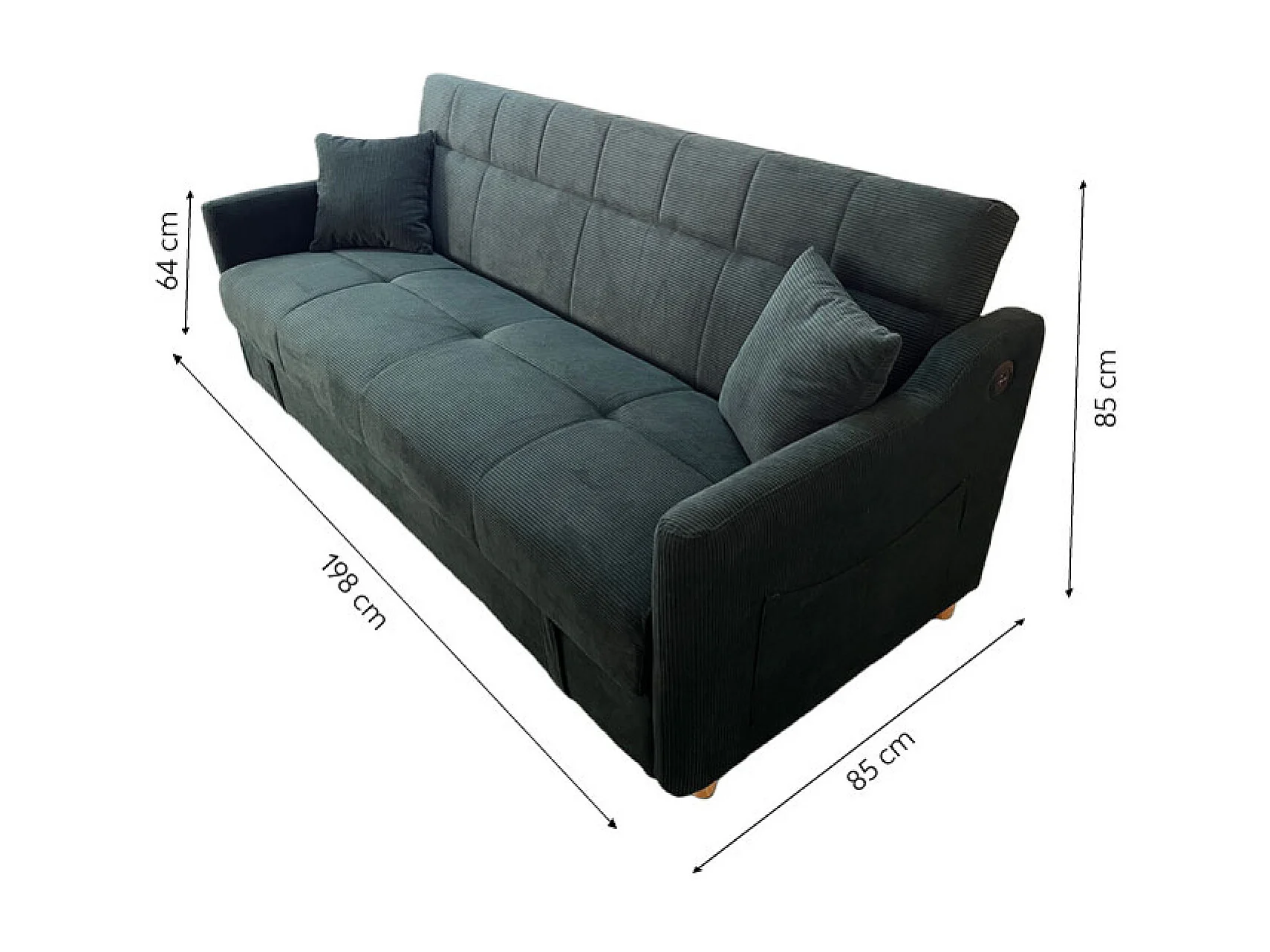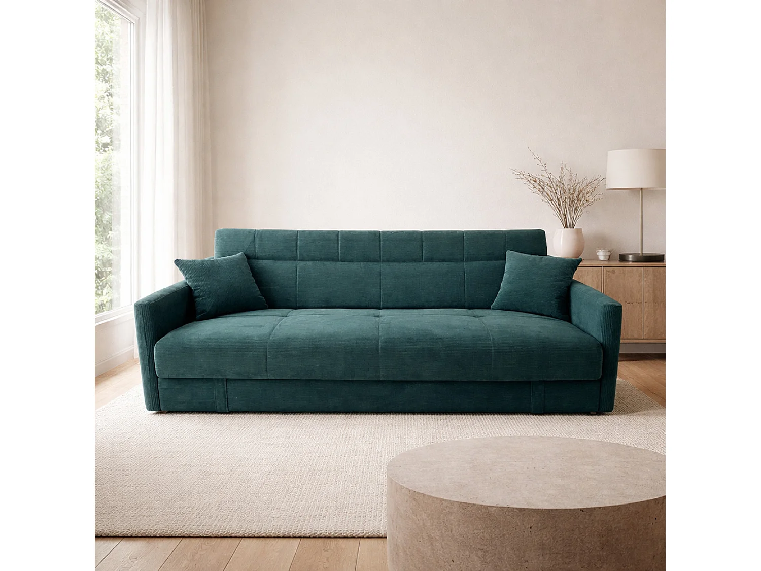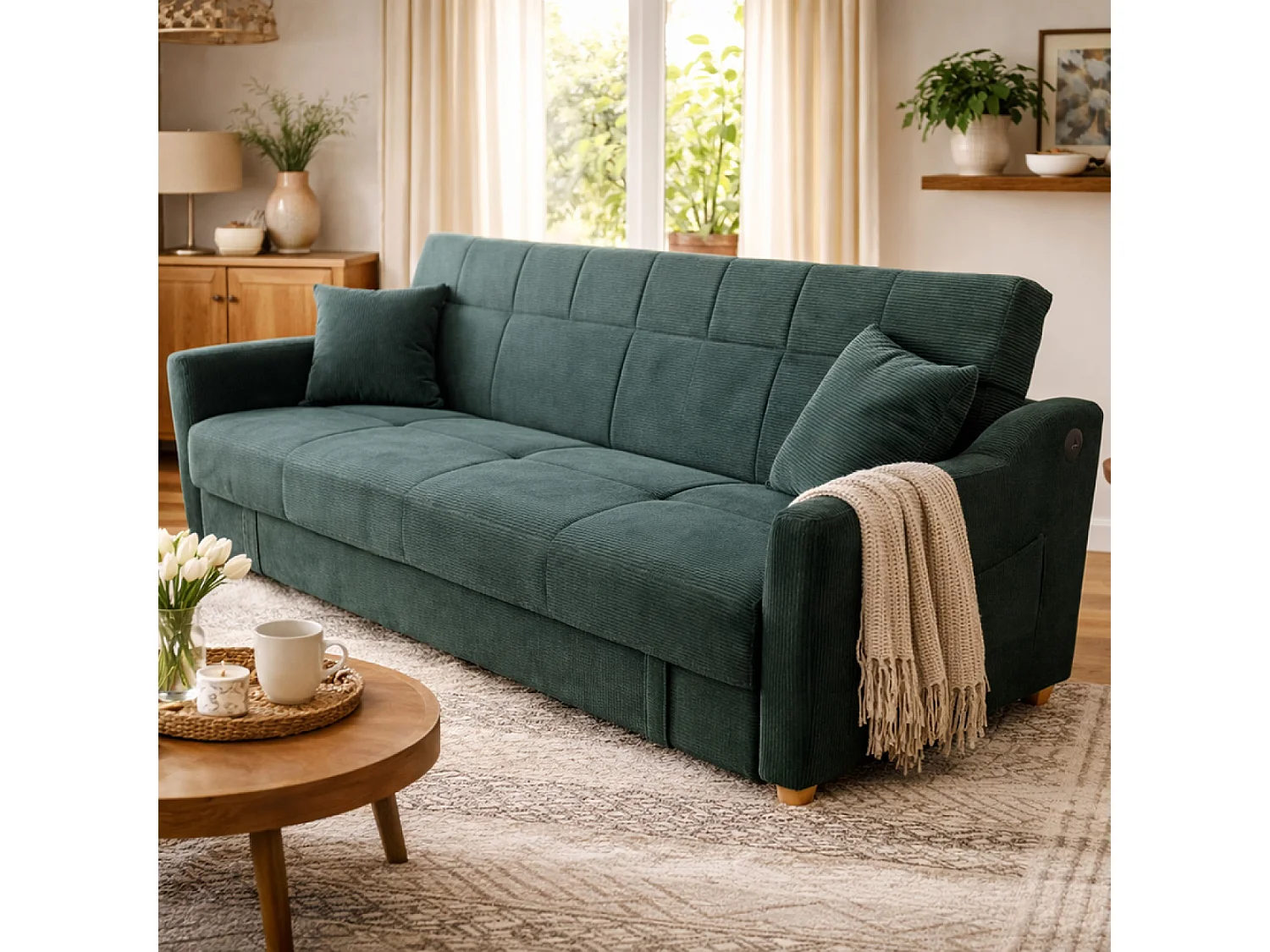 Canapé convertible avec coffre en velours côtelé vert 3 places ADARE
