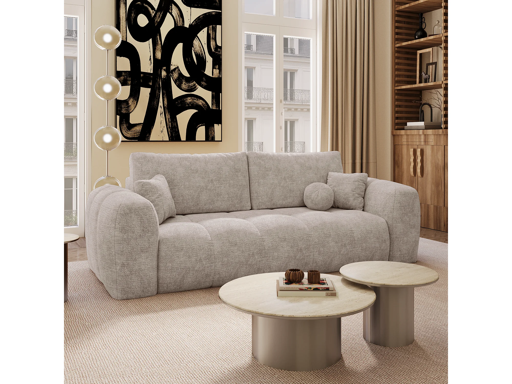 Canapé convertible avec coffre SKY en Velours gaufré Taupe
