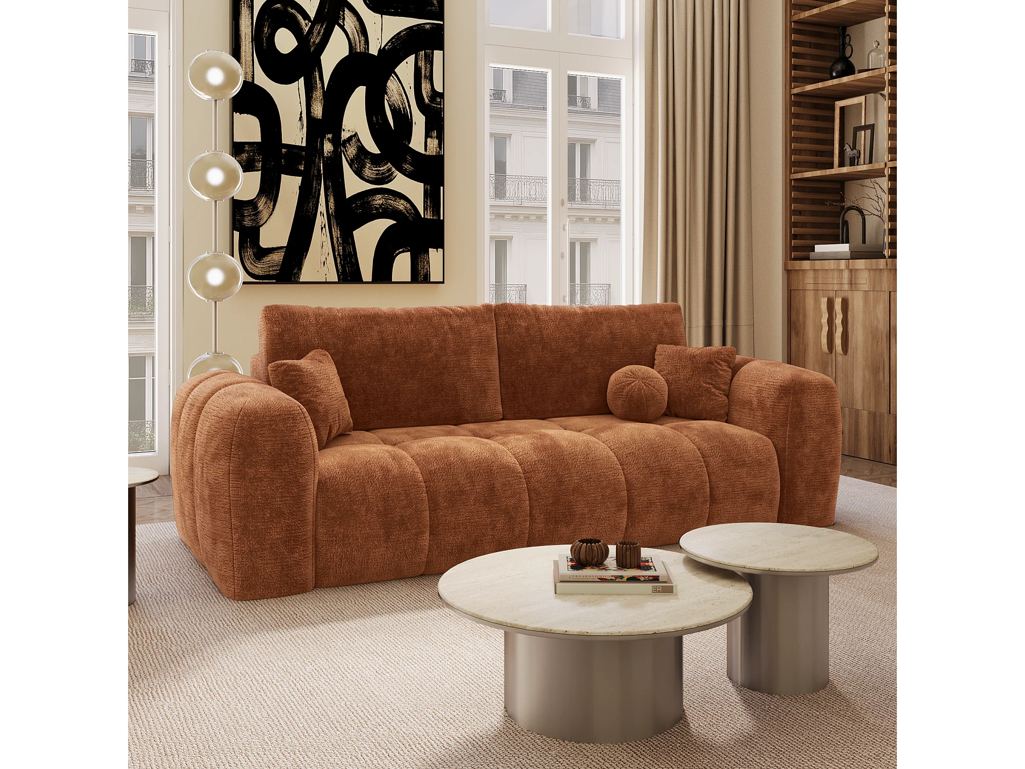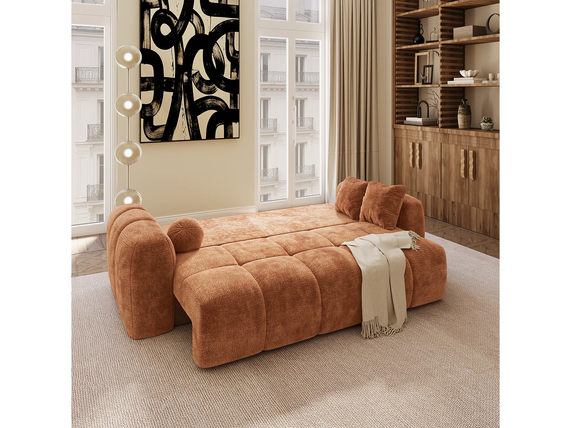 Canapé convertible avec coffre SKY en Velours gaufré