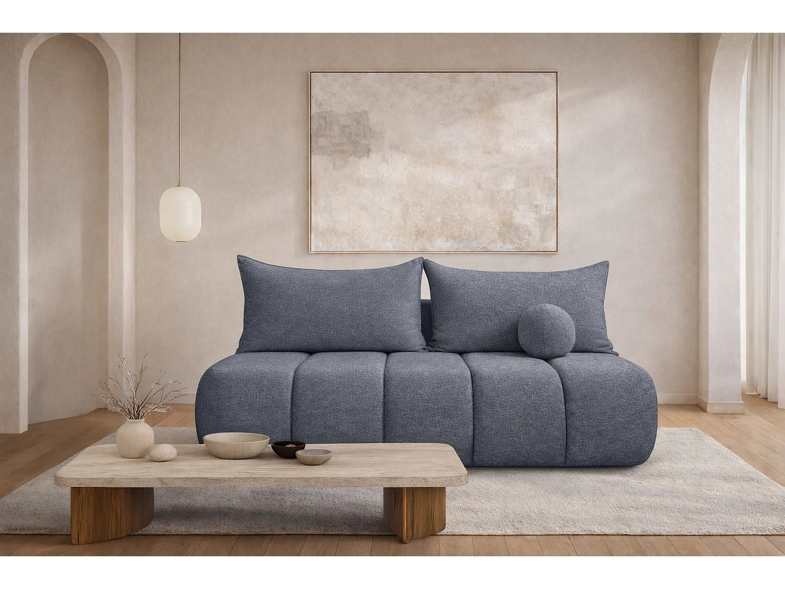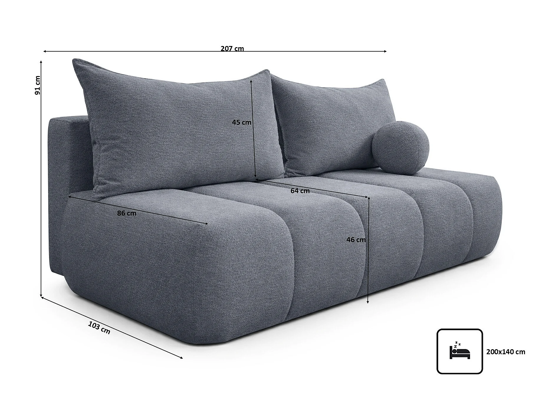 Canapé convertible avec fonction couchage et coffre de rangement, velours Monolith, Argent, PIANO