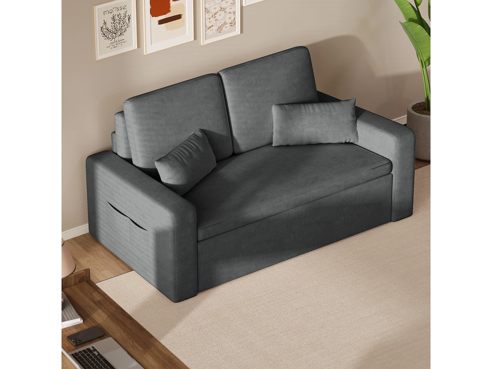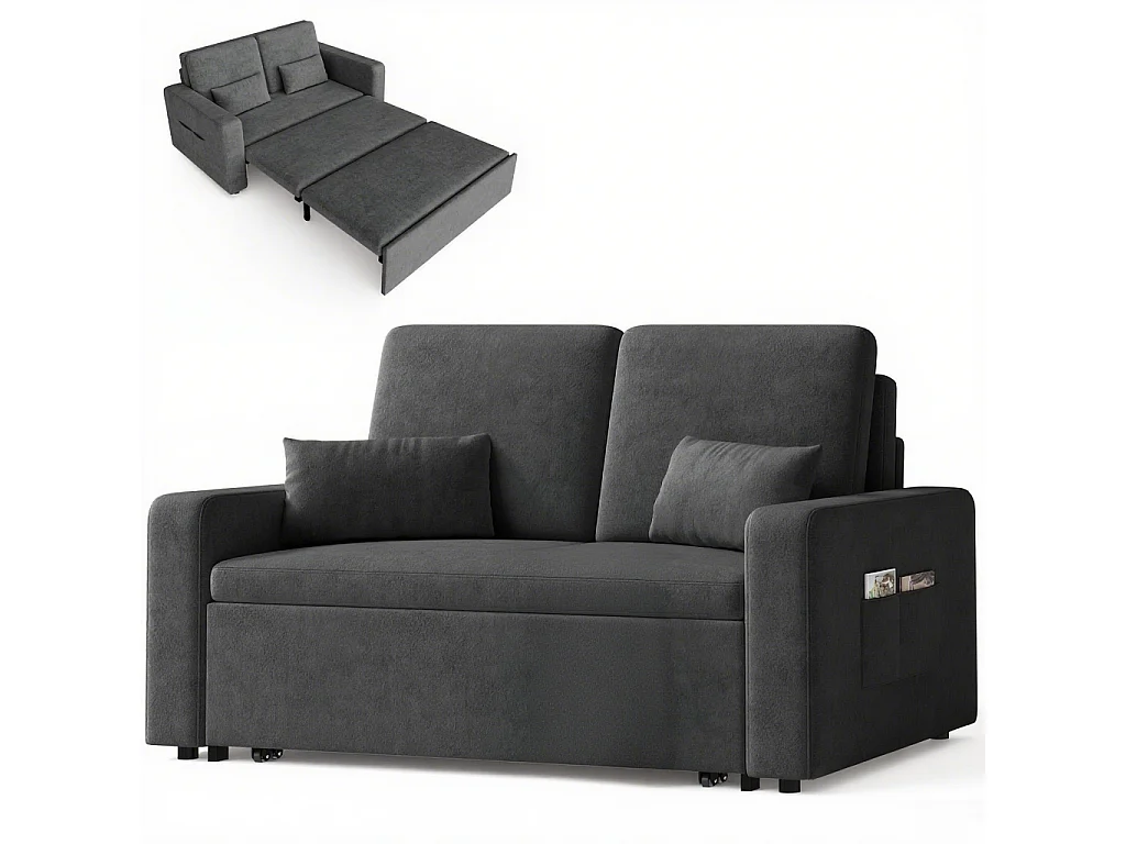 Canapé convertible Bealife 150x82 cm - Tissu chenille crème/gris foncé