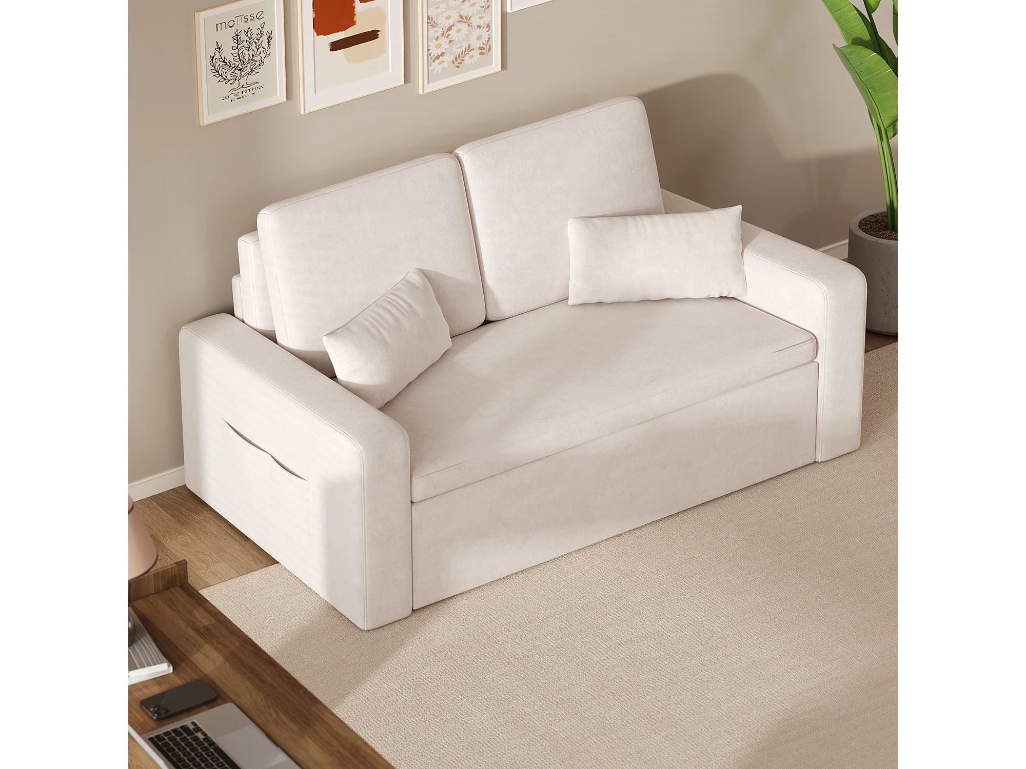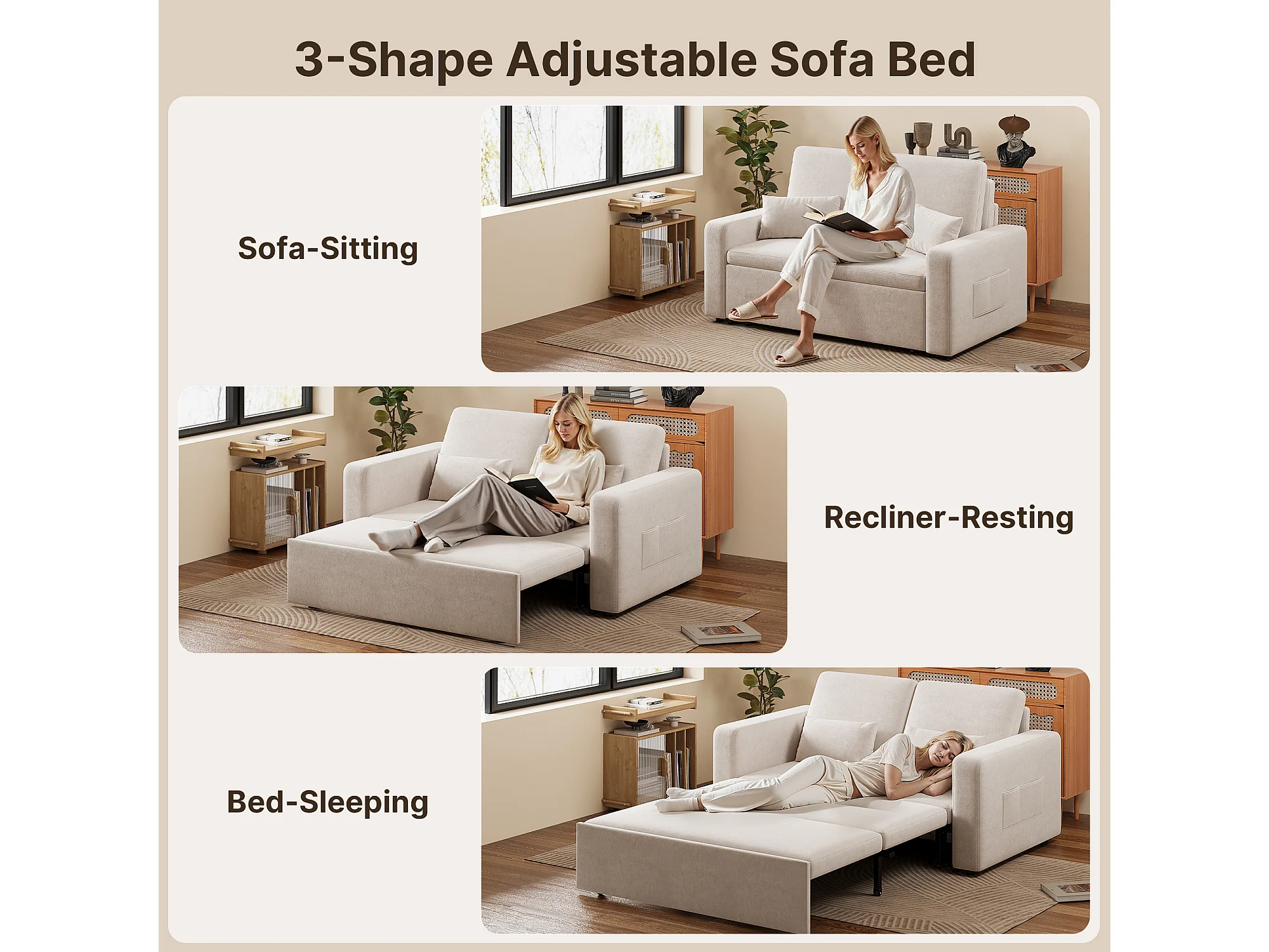 Canapé convertible Bealife 150x82 cm - Tissu chenille crème/gris foncé