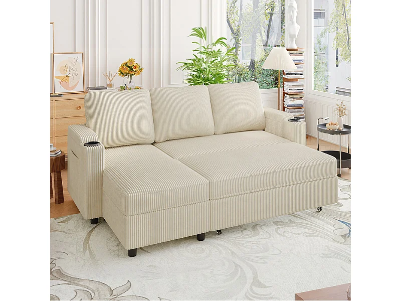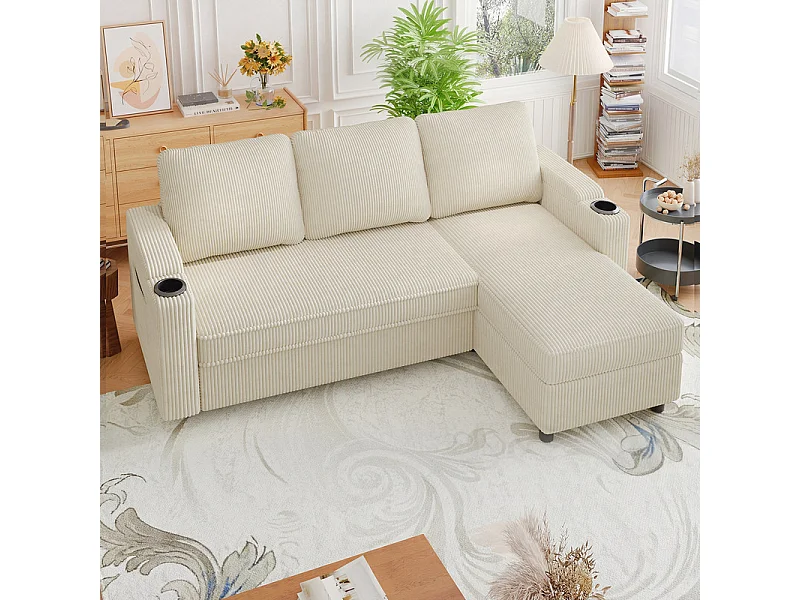 Canapé convertible, canapé d'angle avec rangement, canapé-lit avec accoudoirs 3 places multifonctionnel pour salon, bureau et petit appartement