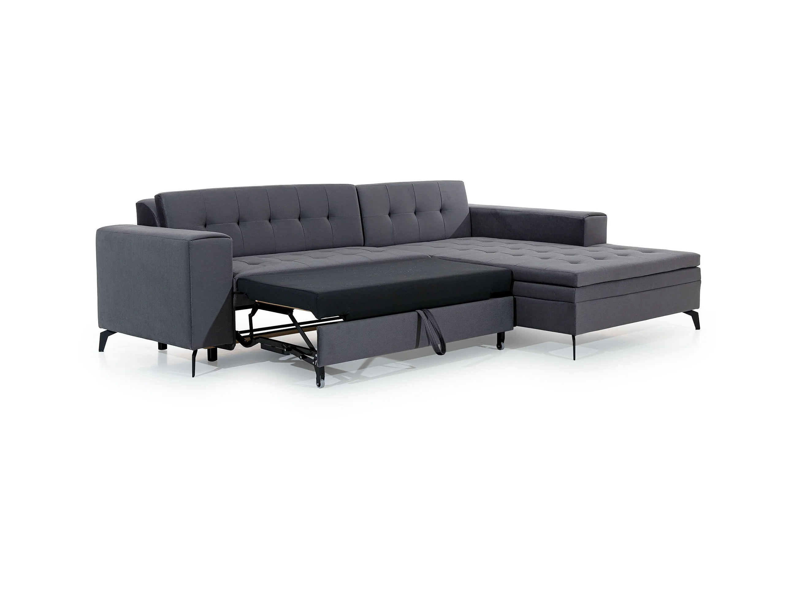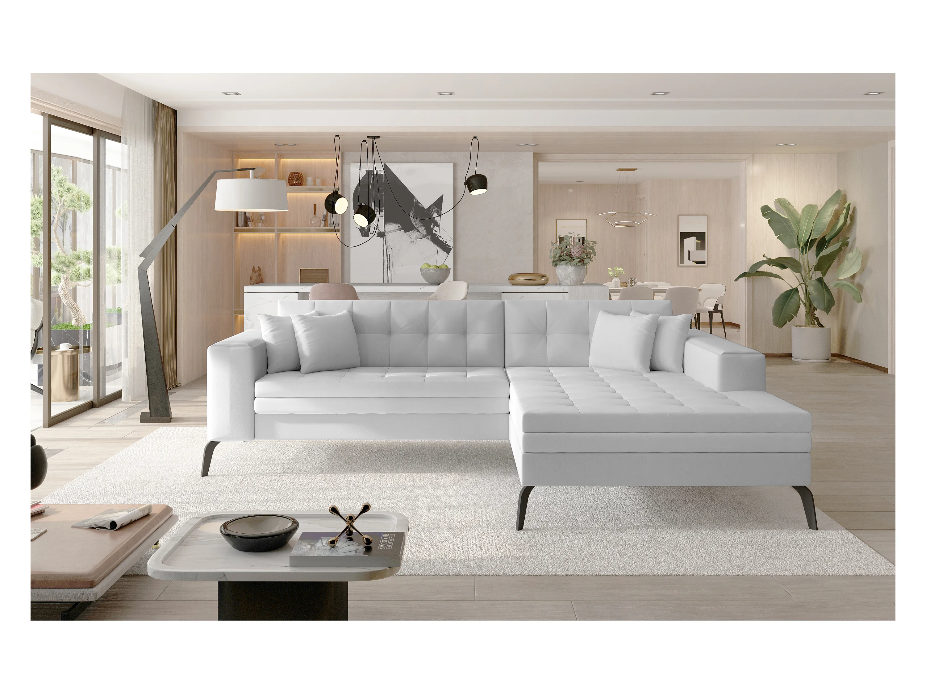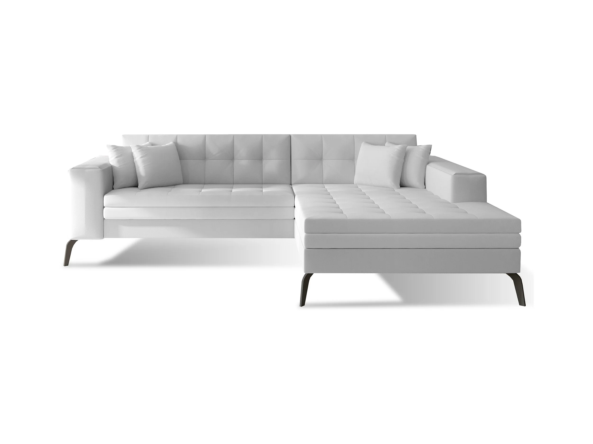 Canapé convertible capitonné angle droit simili cuir blanc et pieds métal noir Lazor 295cm