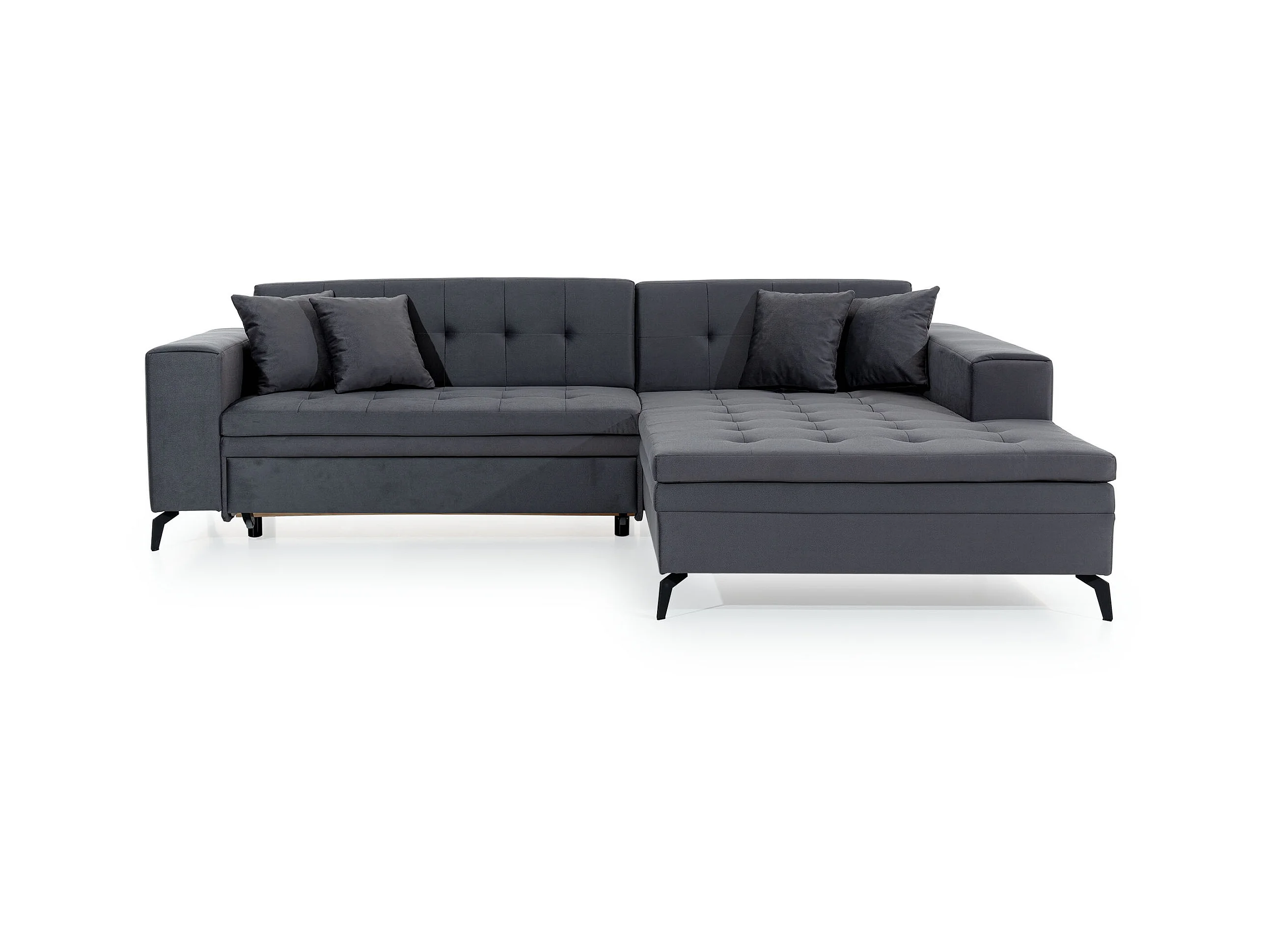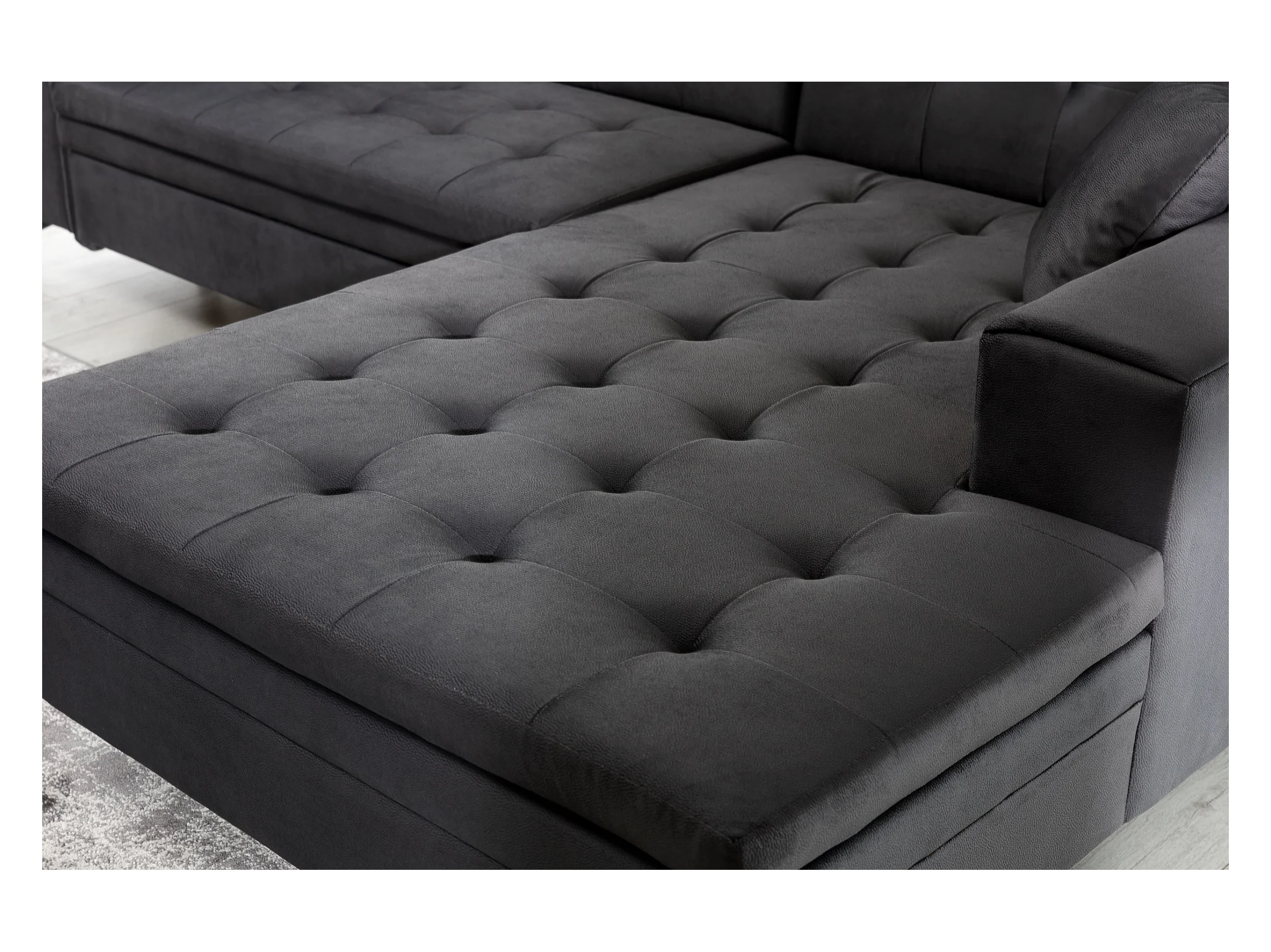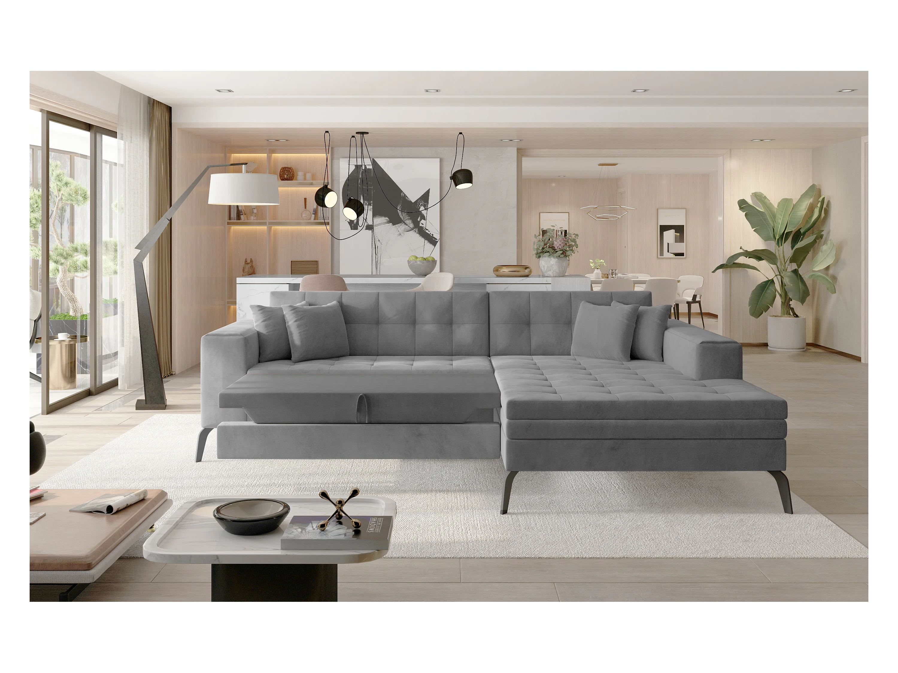 Canapé convertible capitonné angle droit simili cuir blanc et pieds métal noir Lazor 295cm
