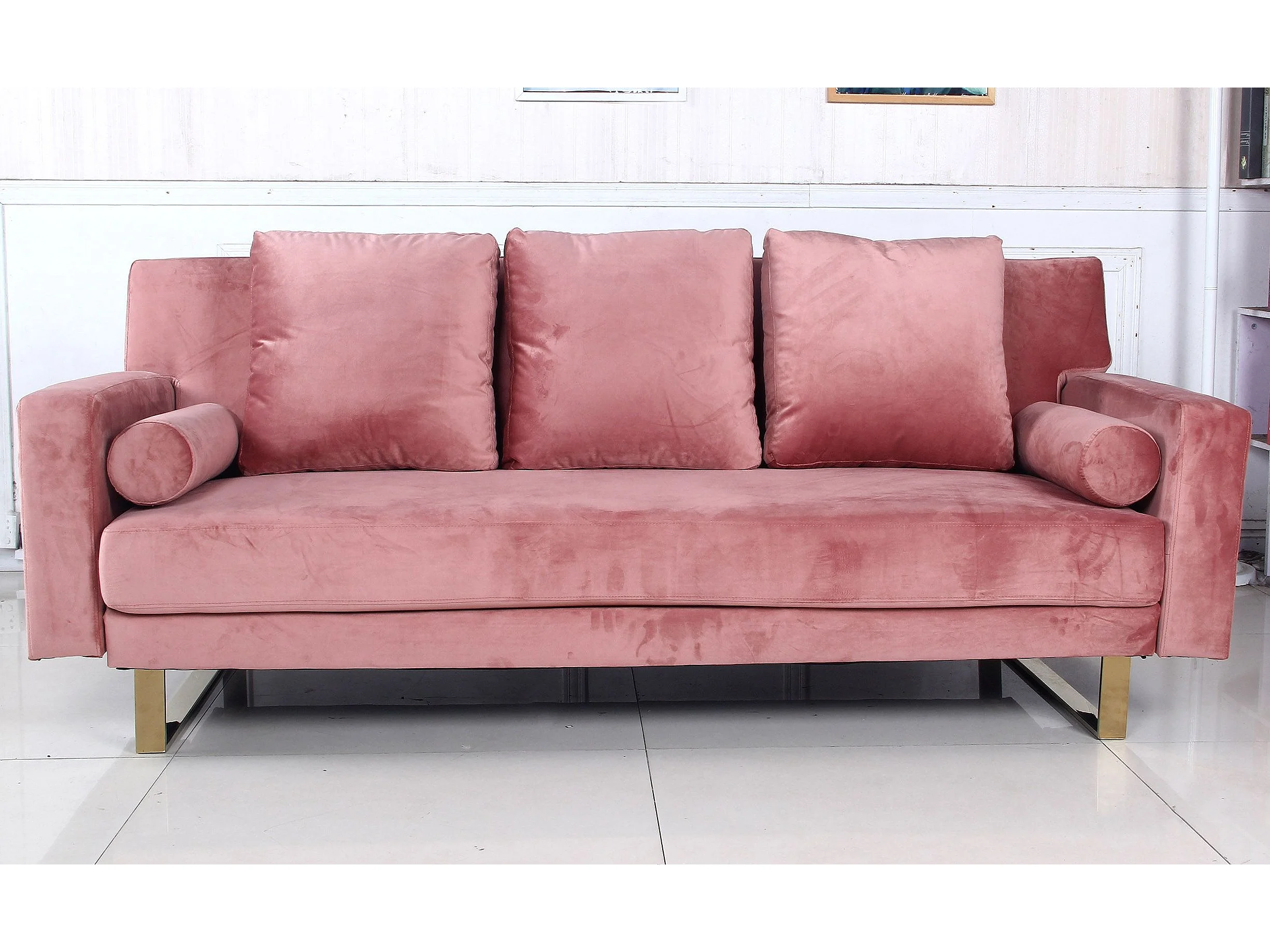 Canapé Convertible Velours "Albine" 210cm Rose