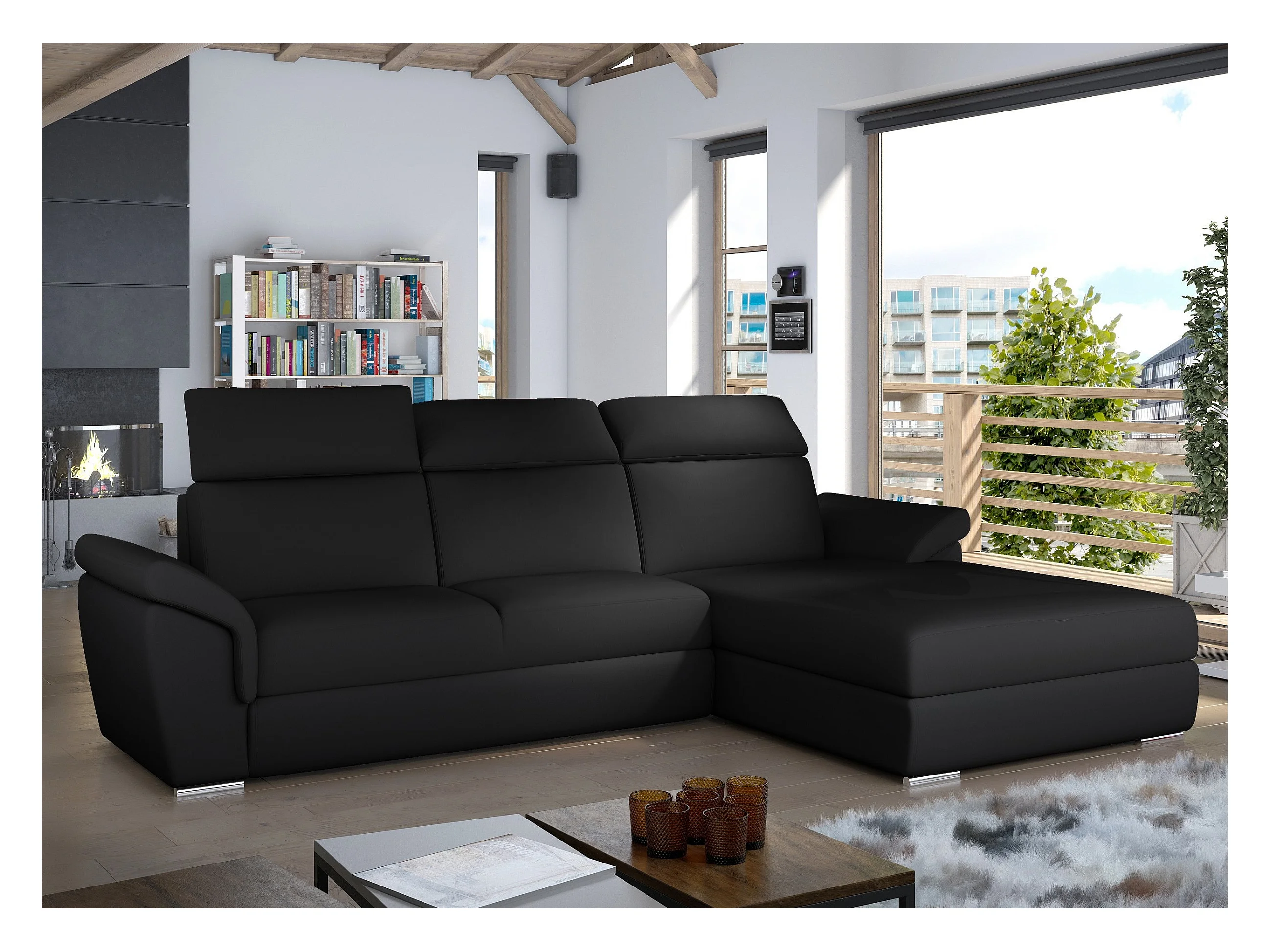 Canapé convertible d'angle droit simili cuir noir Suzy 272cm