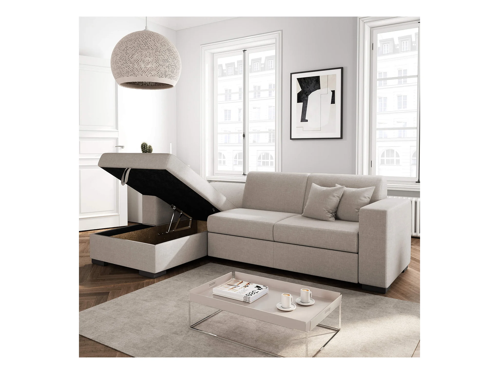 Canapé convertible d'angle gauche 4 places en tissu beige - CA00004