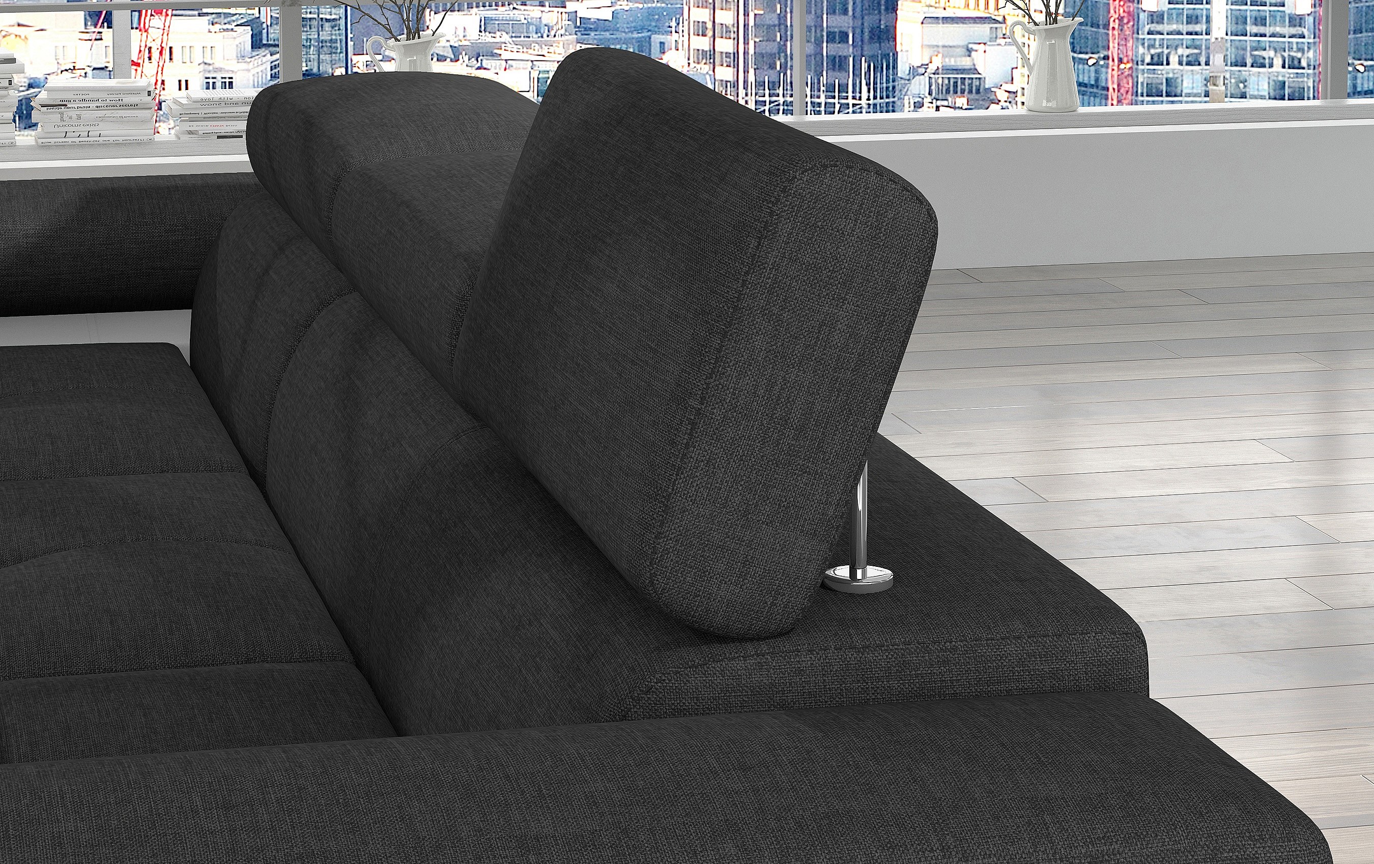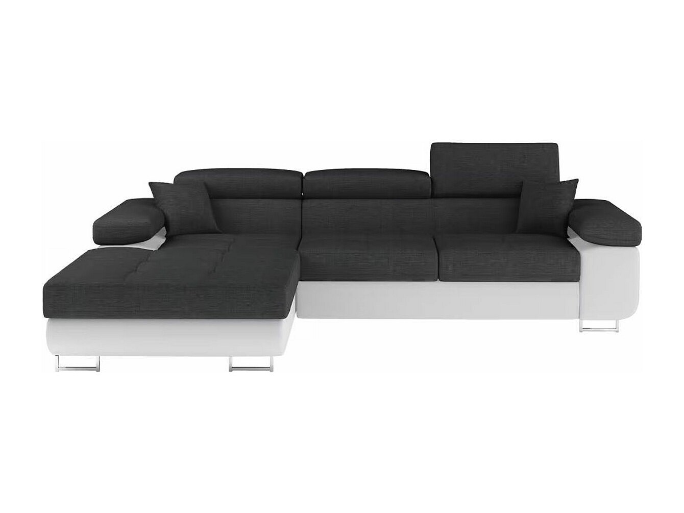 Canapé d'angle convertible Bi matière appuis-tête réglables KALIZO - Coffre et pieds acier chromé-Blanc/Gris foncé-angle gauche