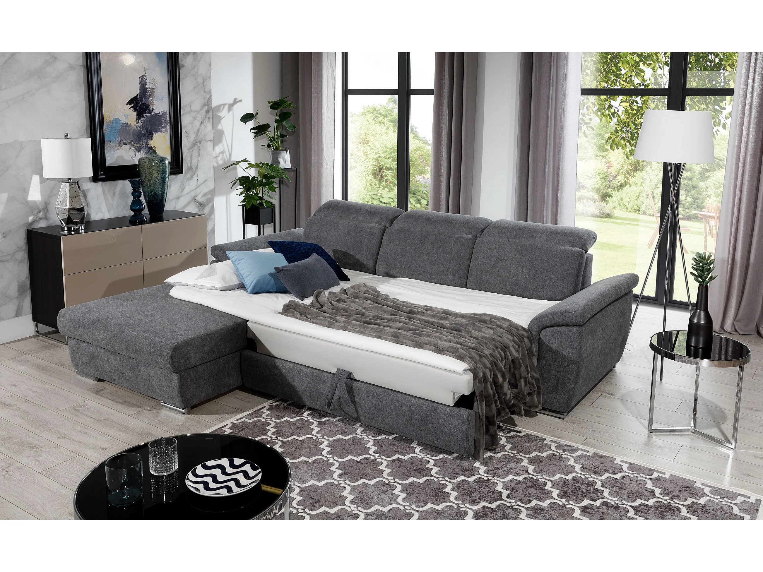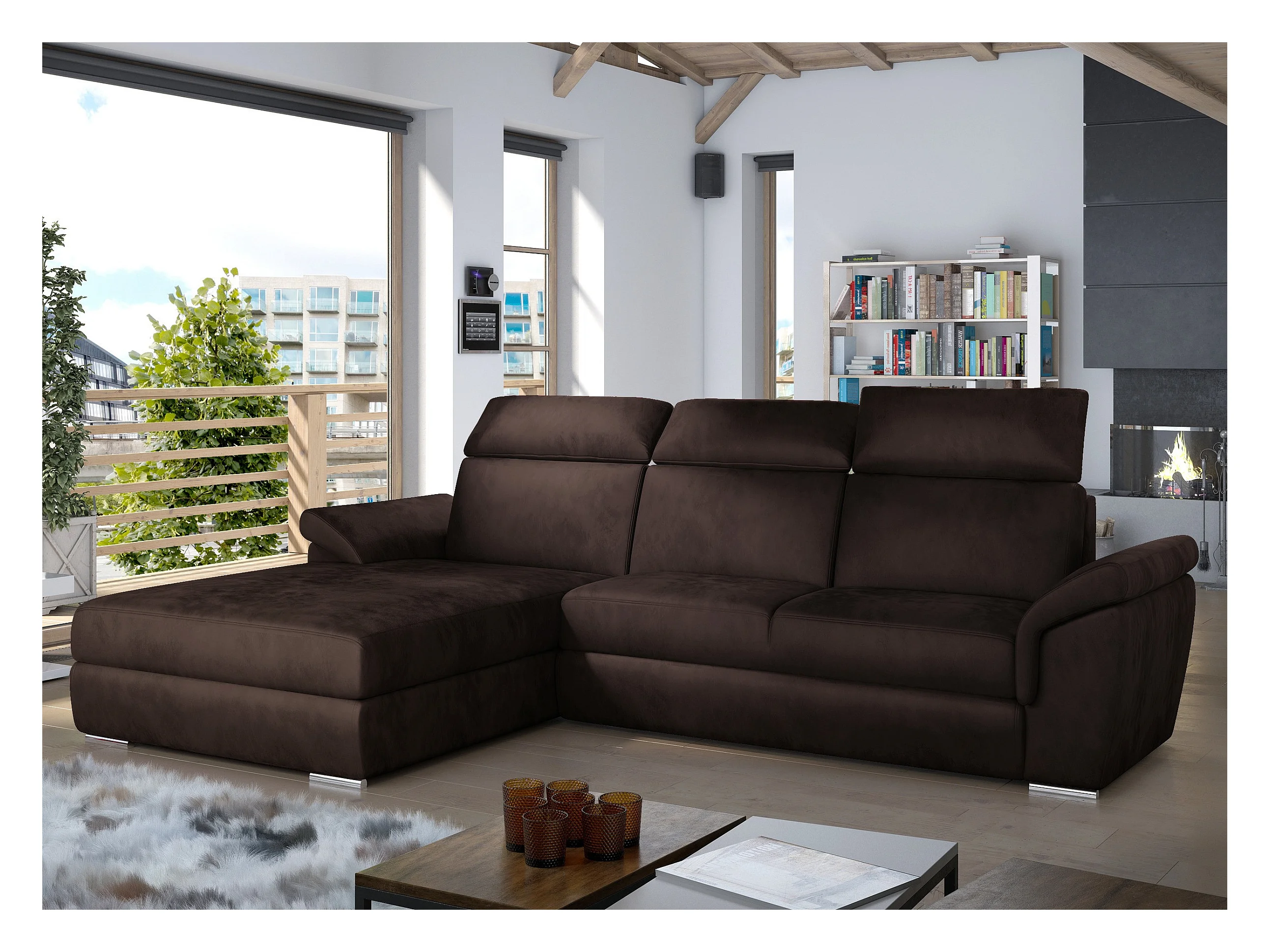 Canapé convertible d'angle gauche velours chocolat têtières réglables Suzy 272cm