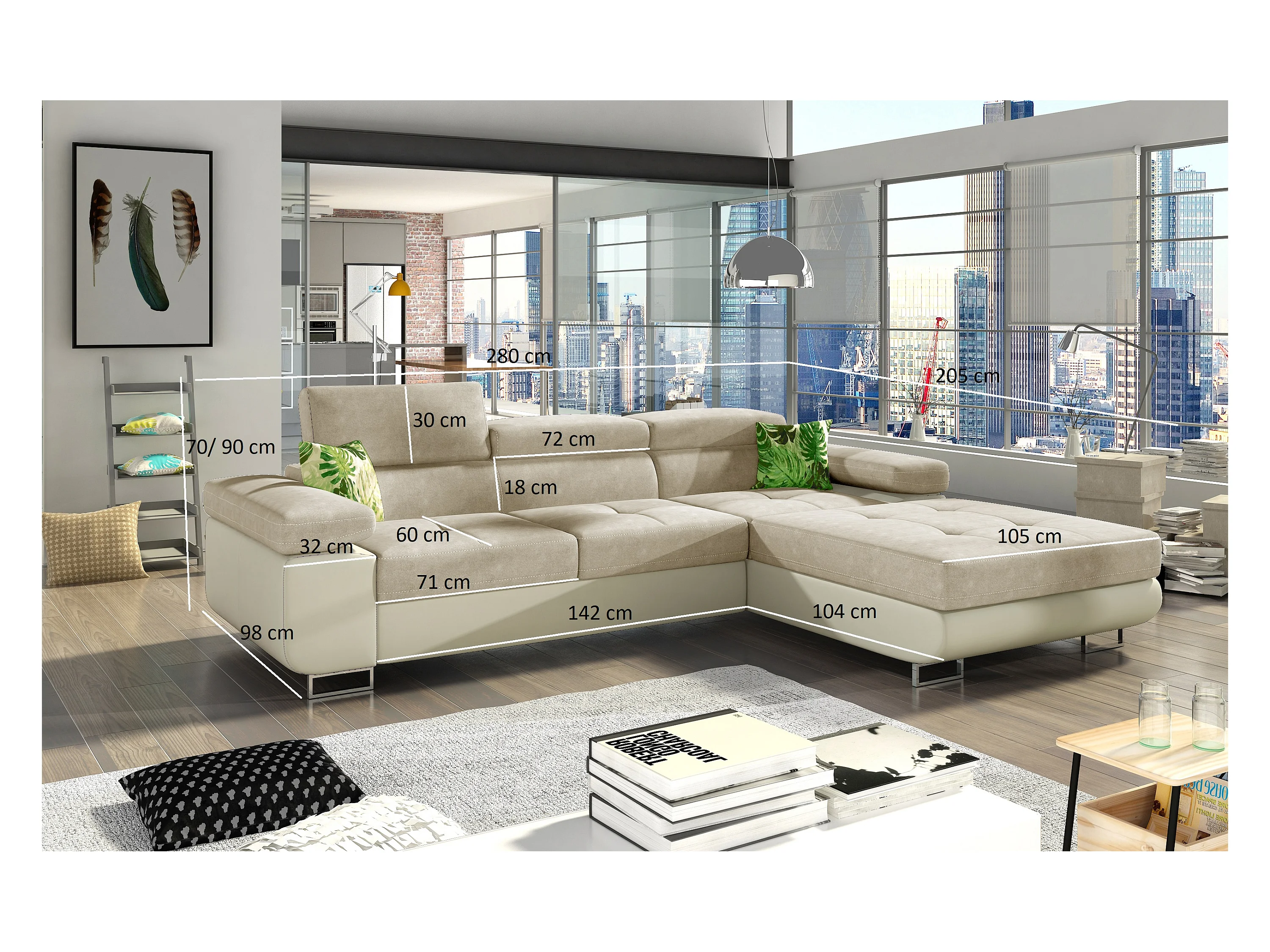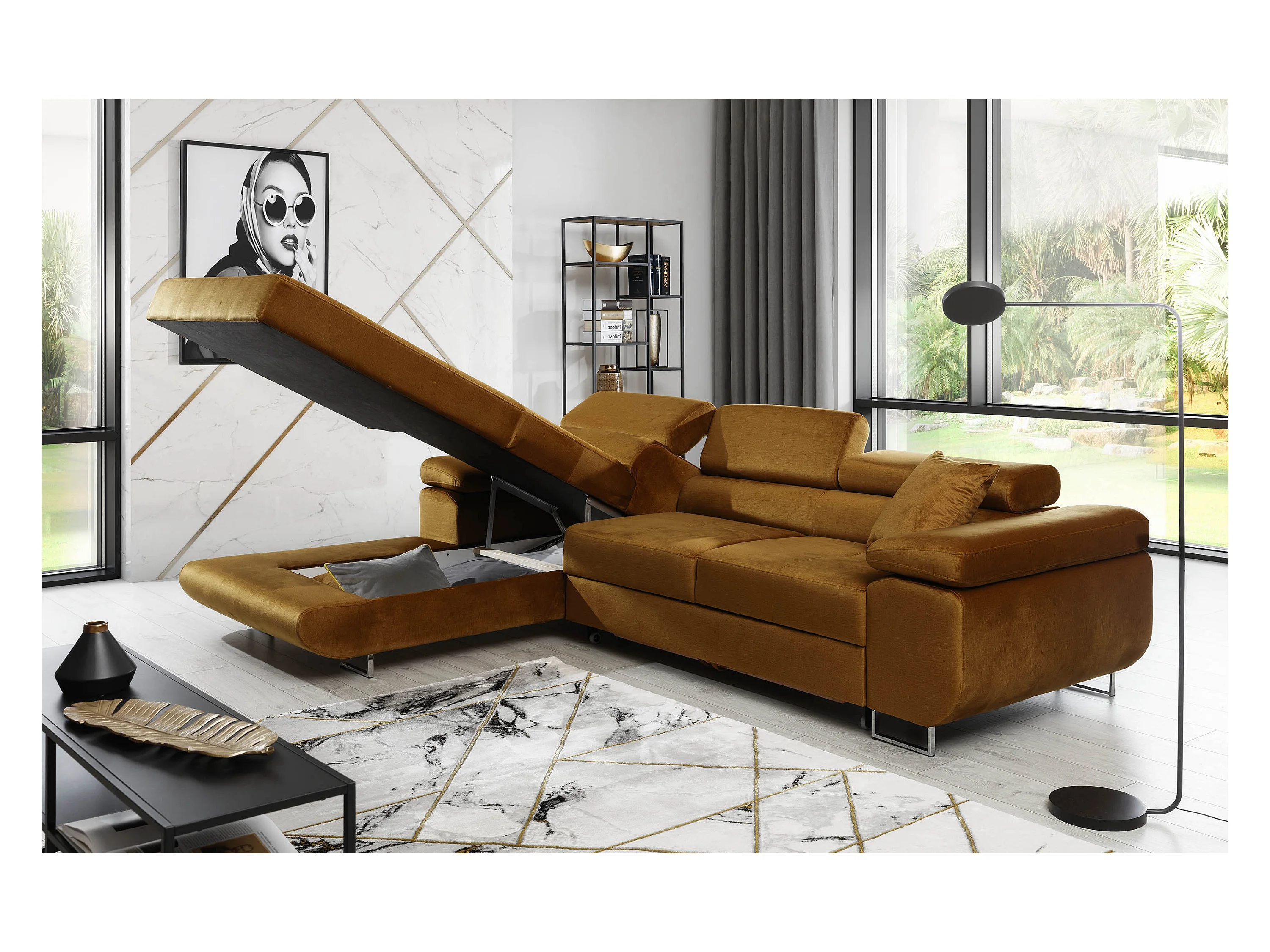 Canapé convertible d'angle gauche velours gris clair et gris anthracite avec rangement Wile 280cm