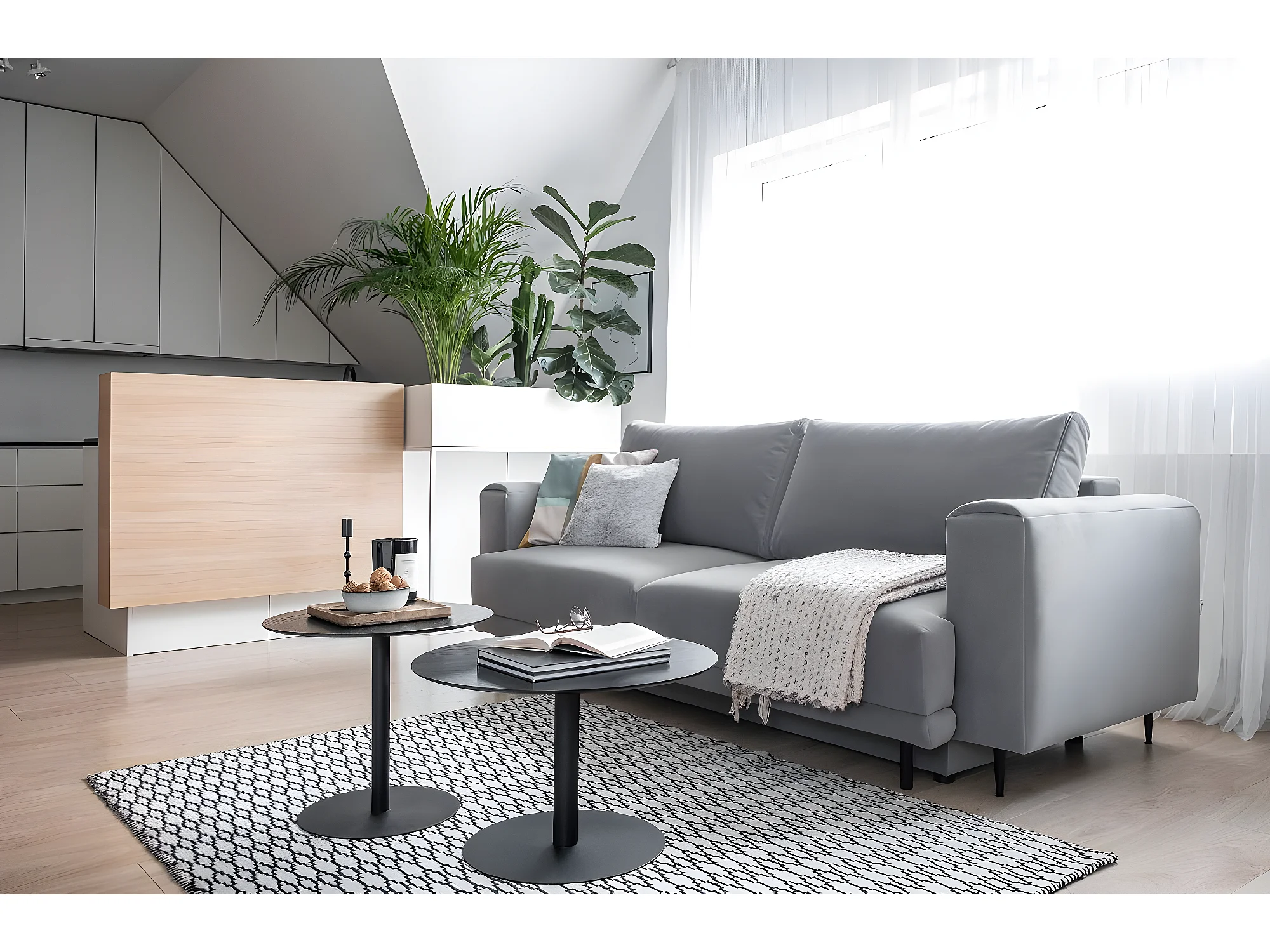 Canapé convertible design 4 places tissu doux vert olive et pieds métal noir Arkia 260cm