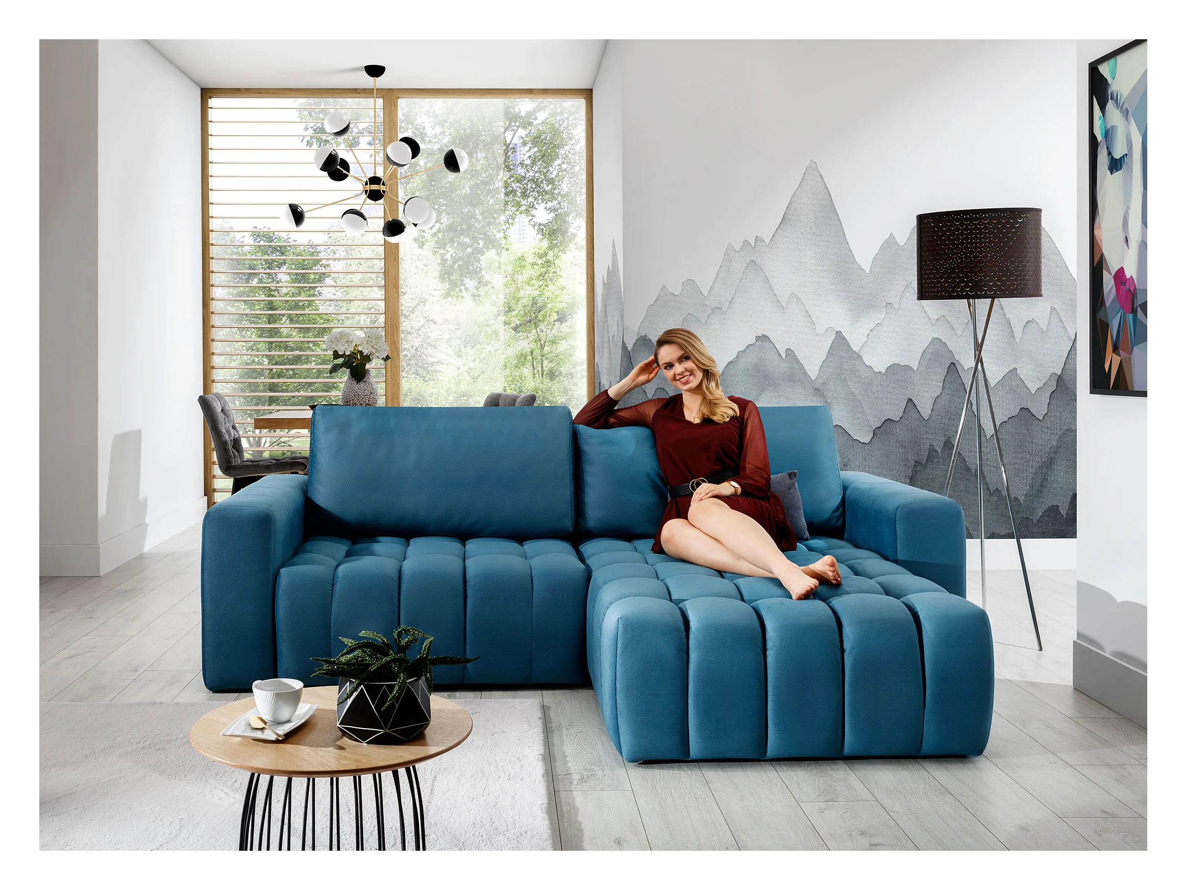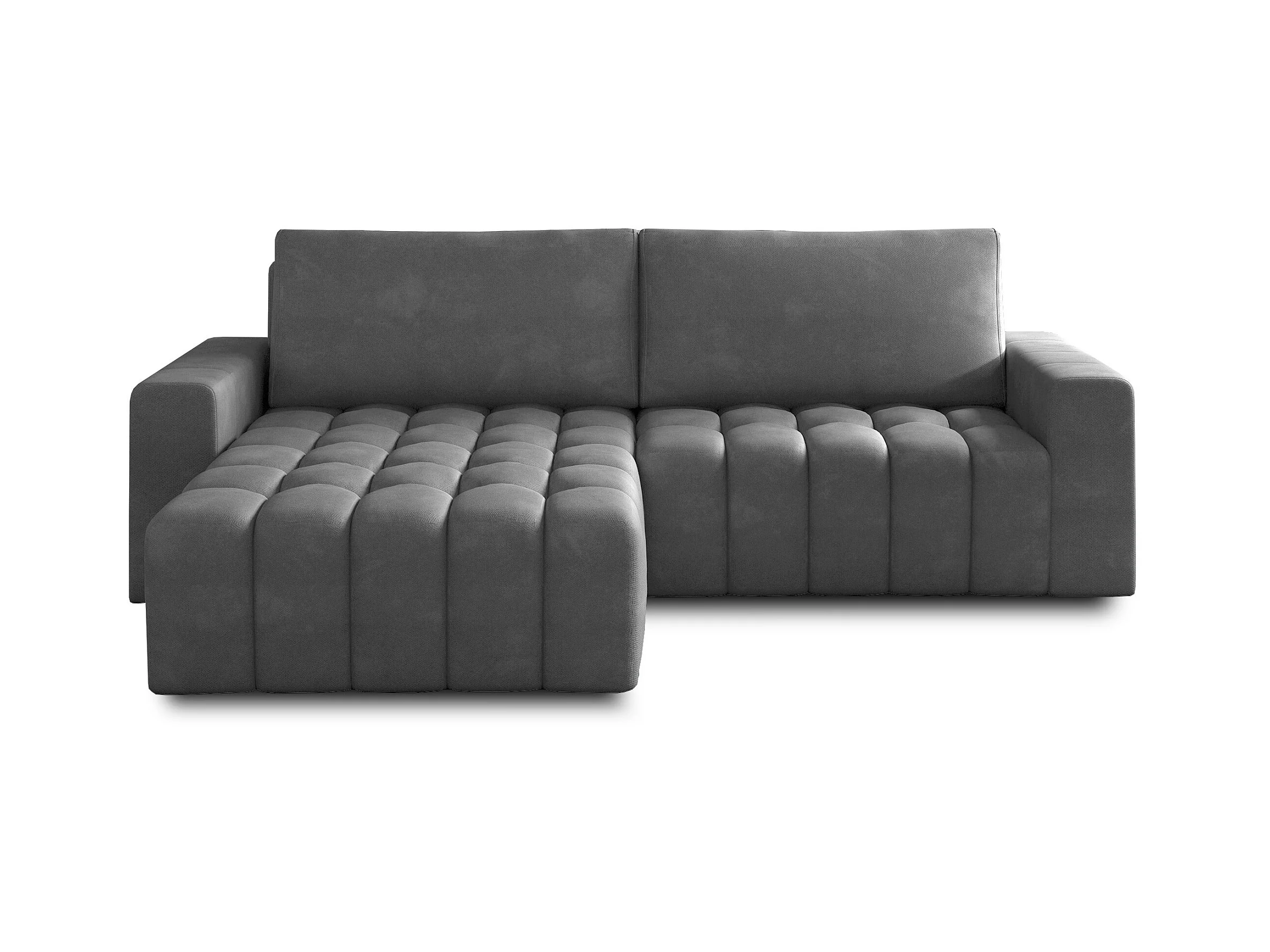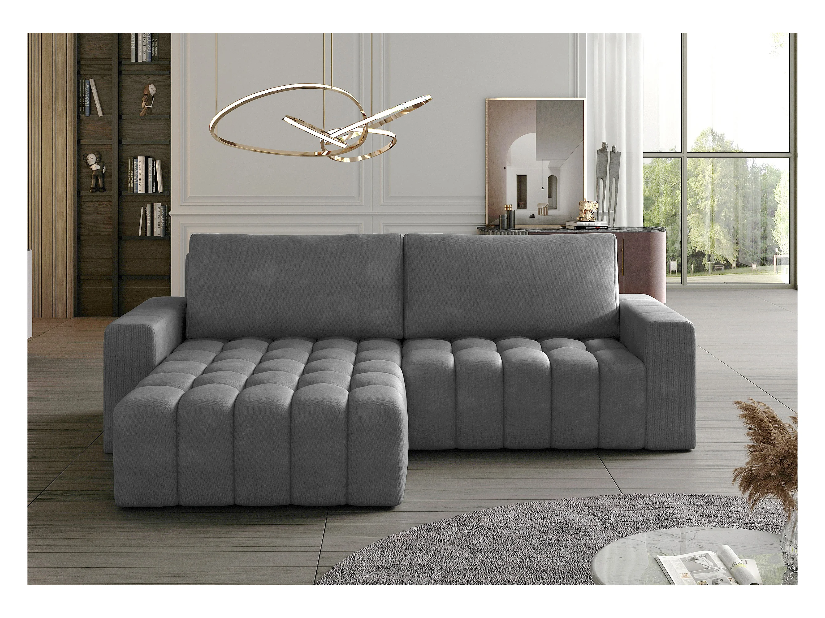 Canapé convertible design velours matelassé gris angle gauche Bozen 250cm