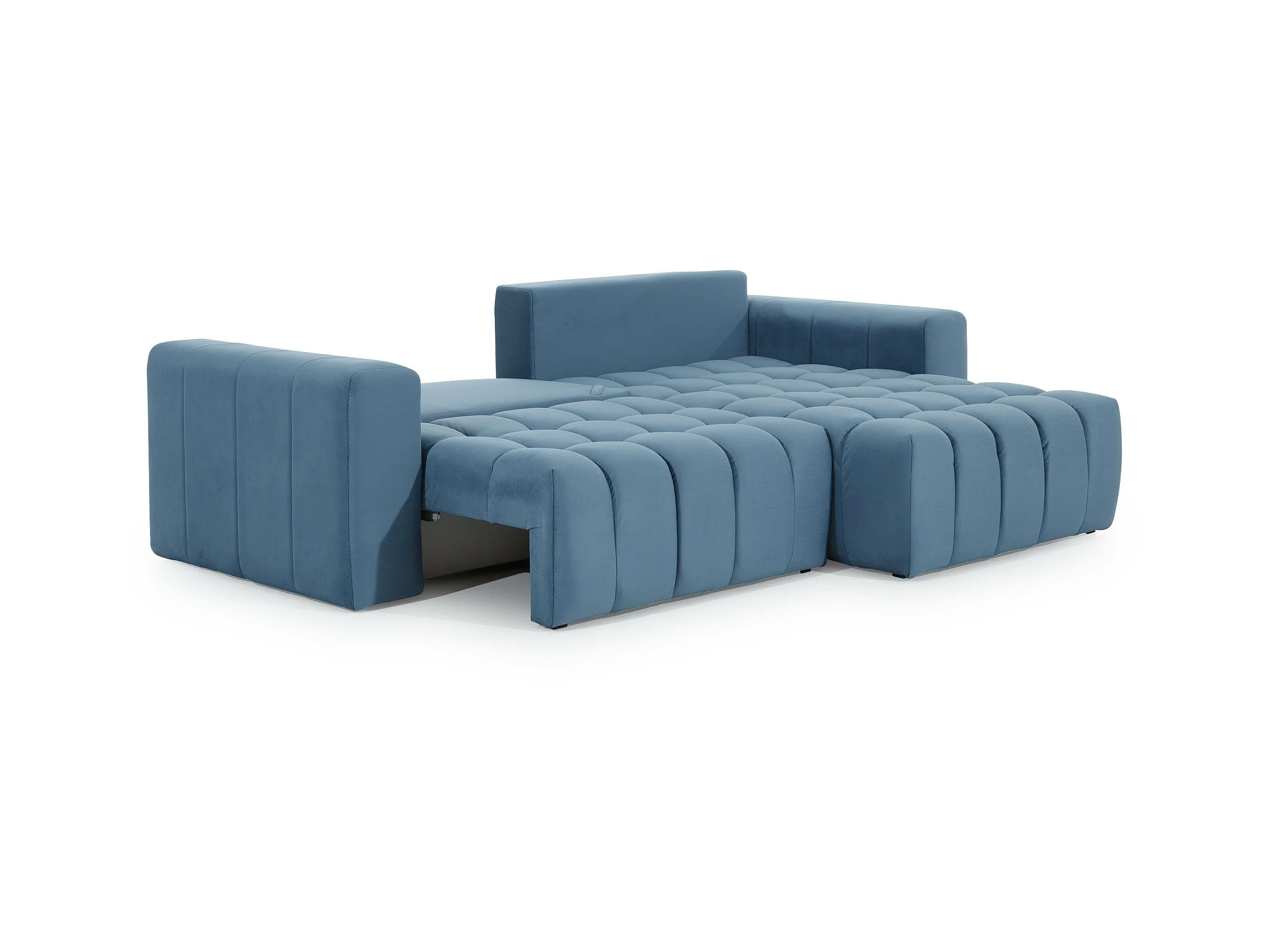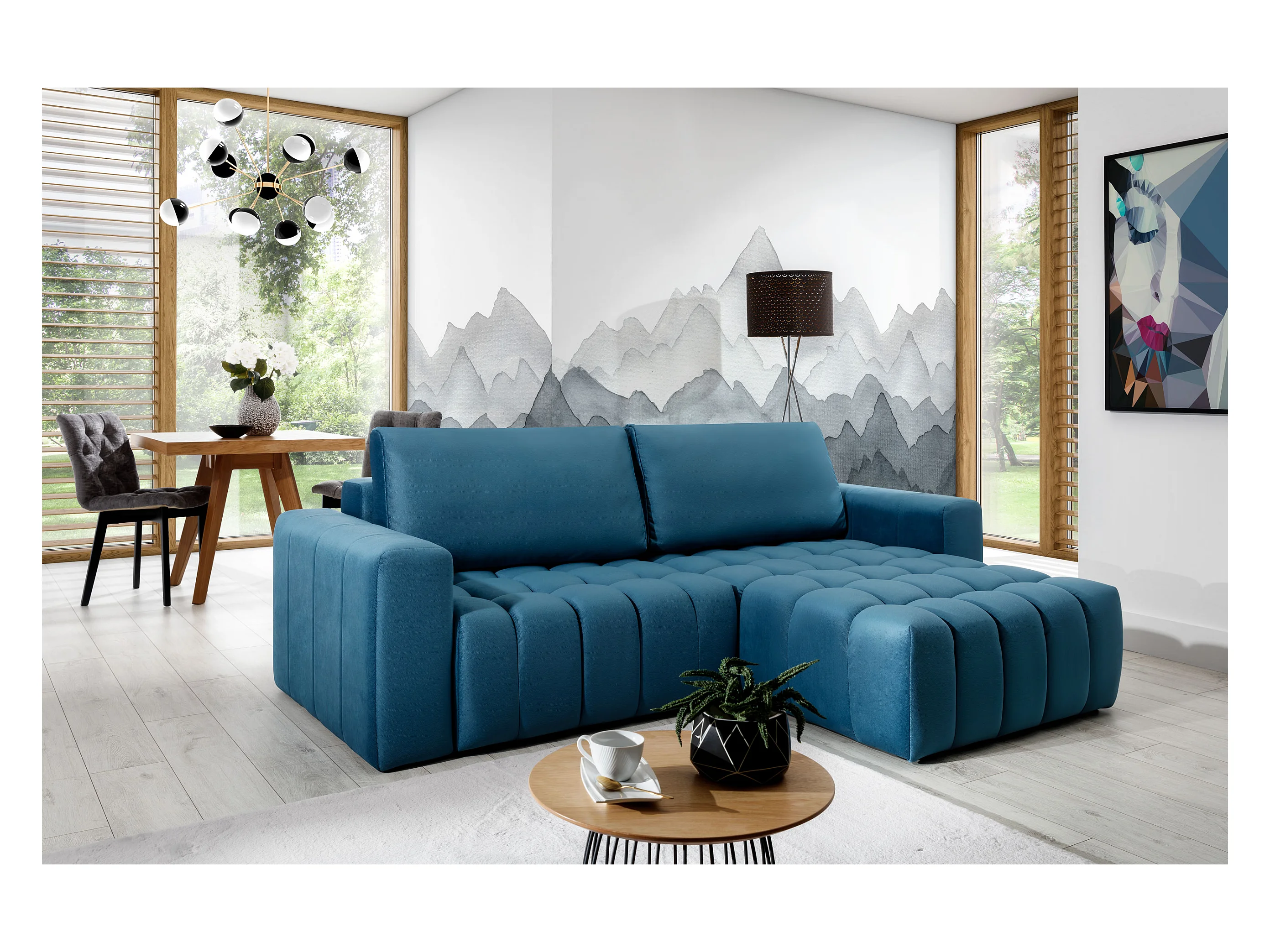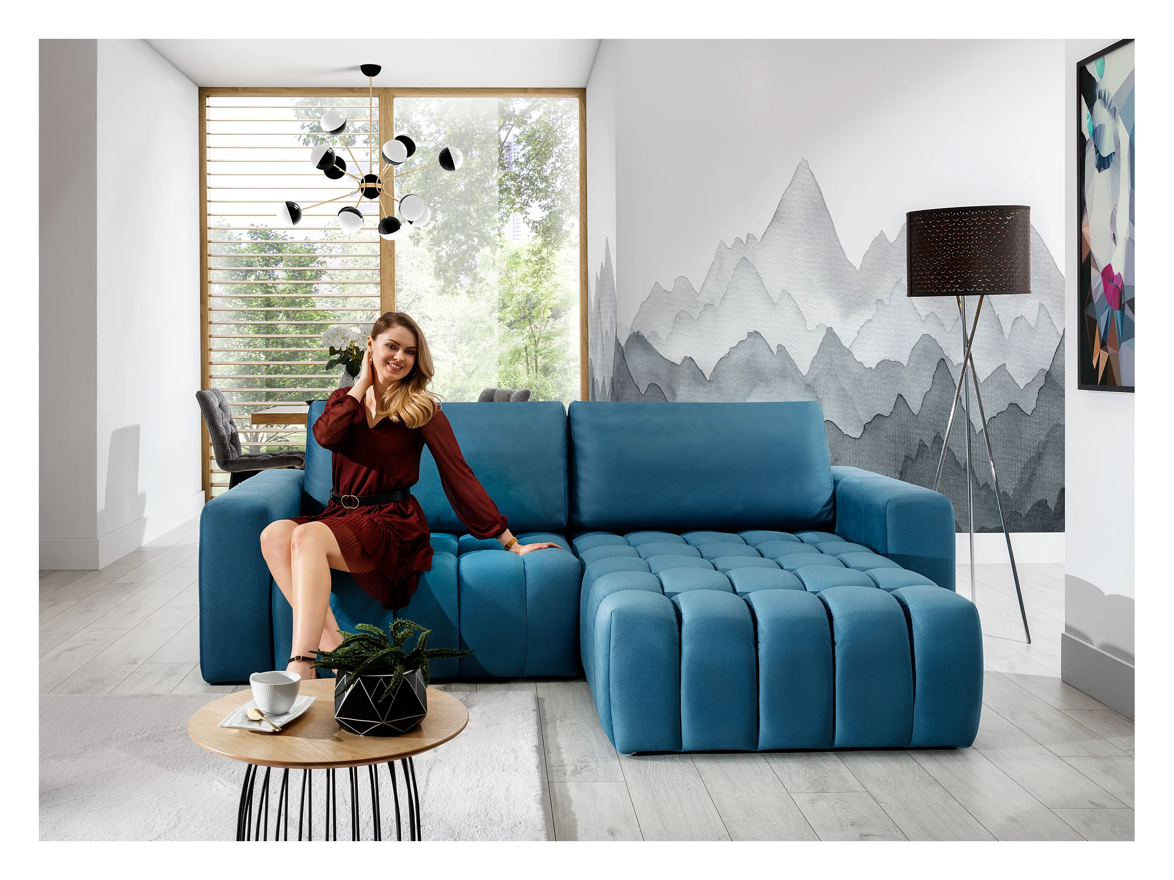 Canapé convertible design velours matelassé gris angle gauche Bozen 250cm