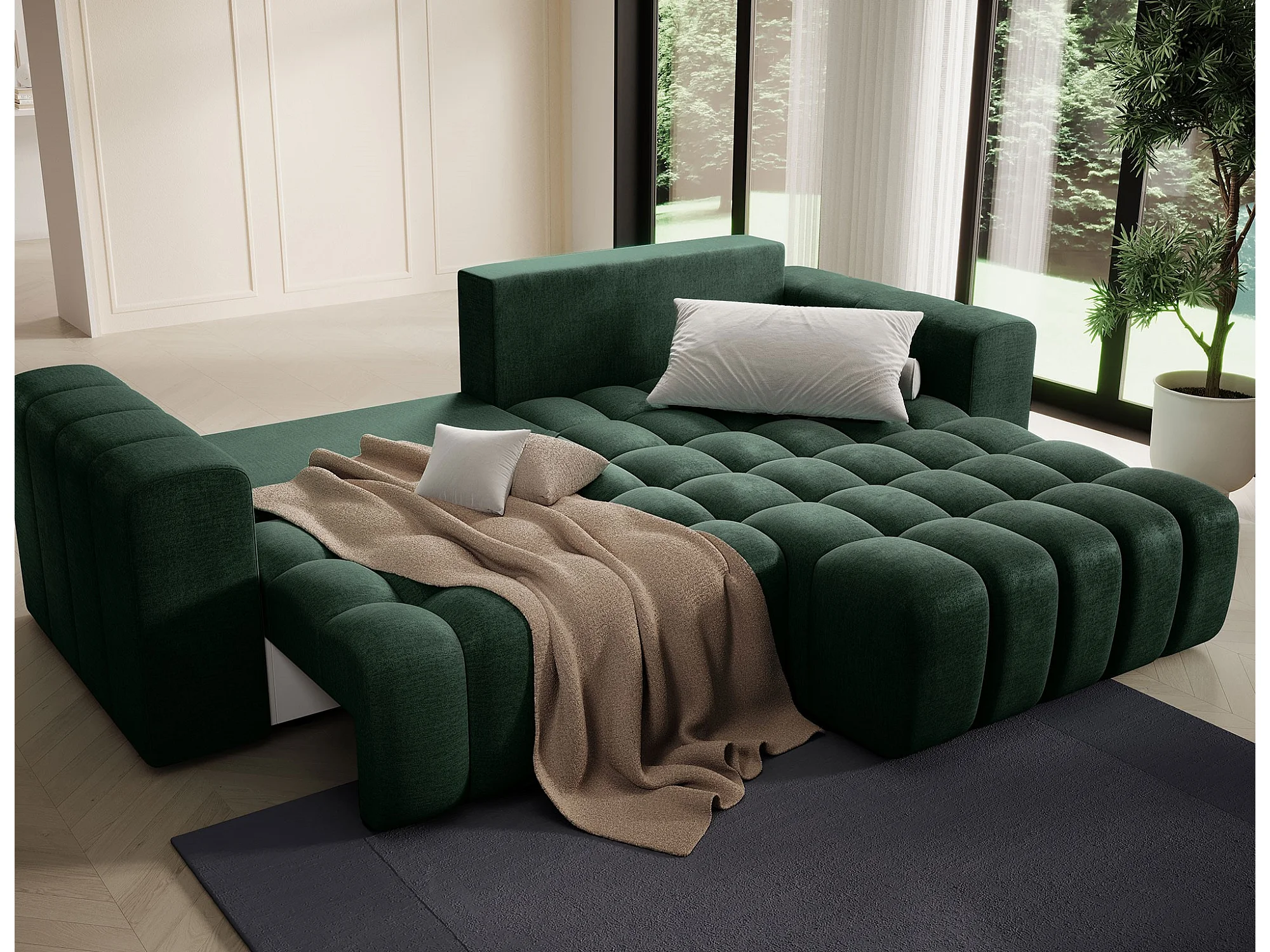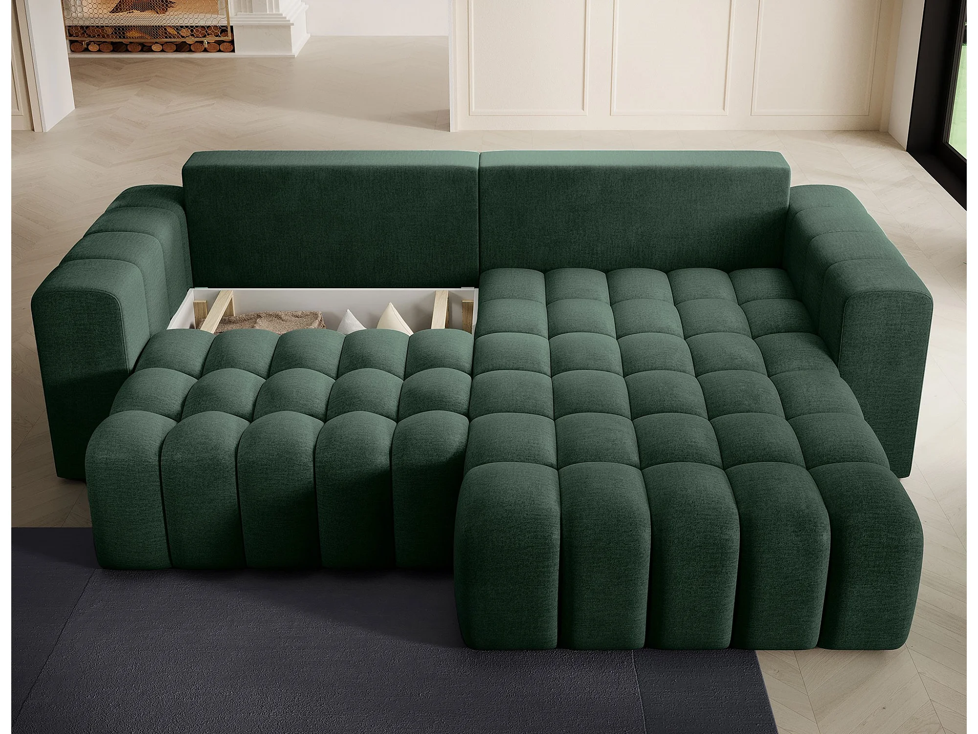 Canapé d’angle velours capitonné BOZEN – Convertible et rangement-Vert foncé-angle droit