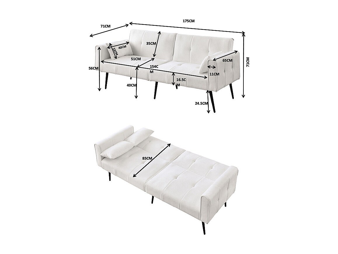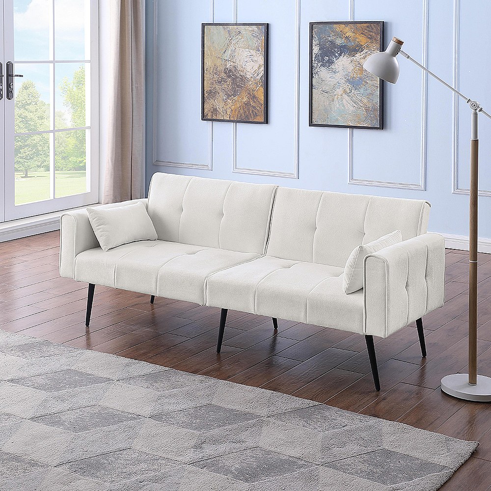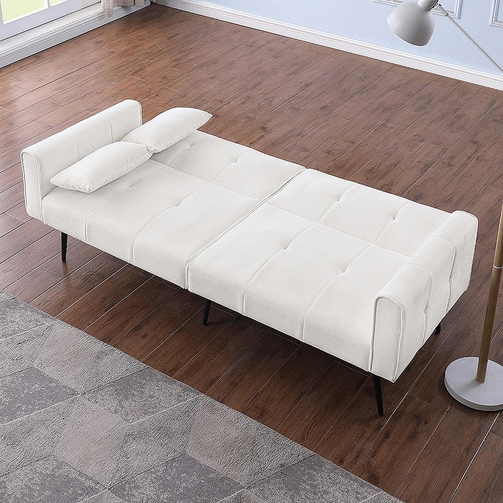 Canapé convertible deux places inclinable en tissu avec dossier réglable futon beige pour salon