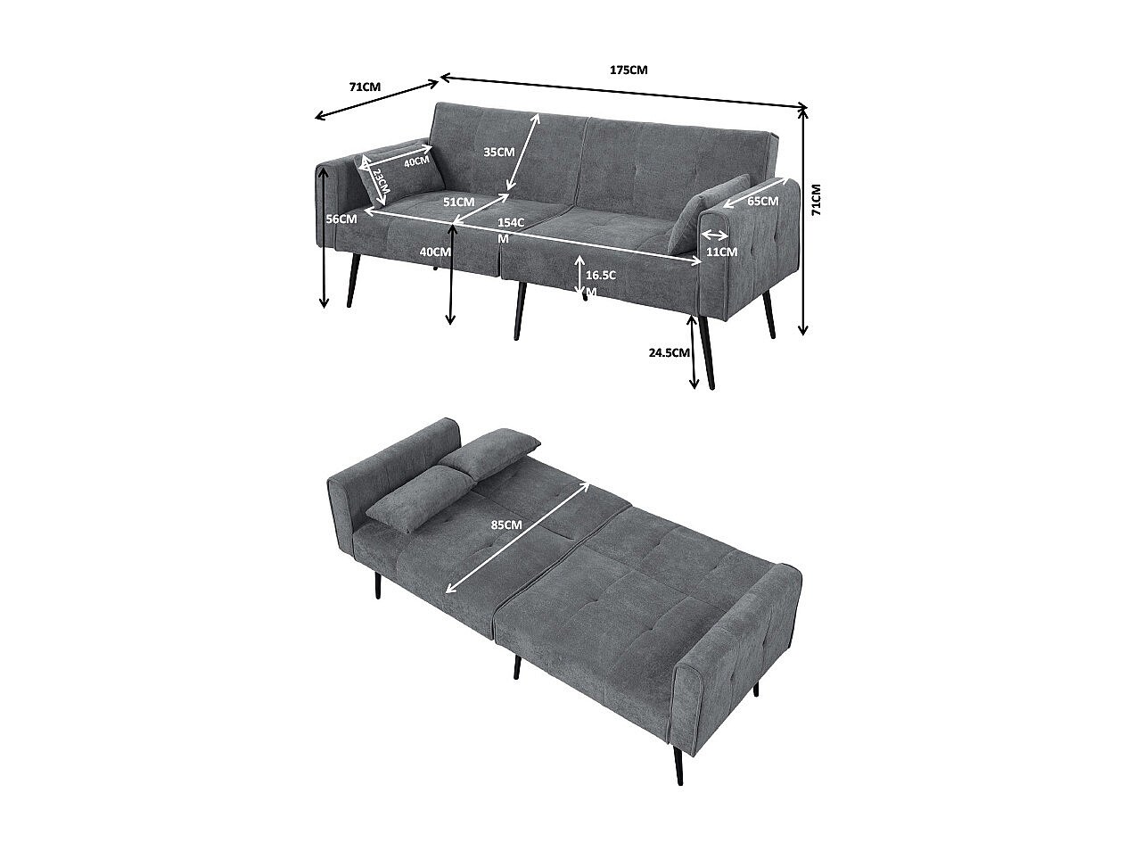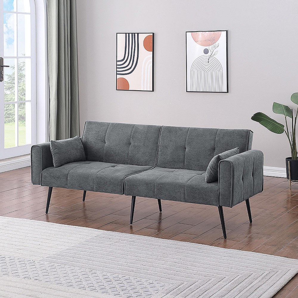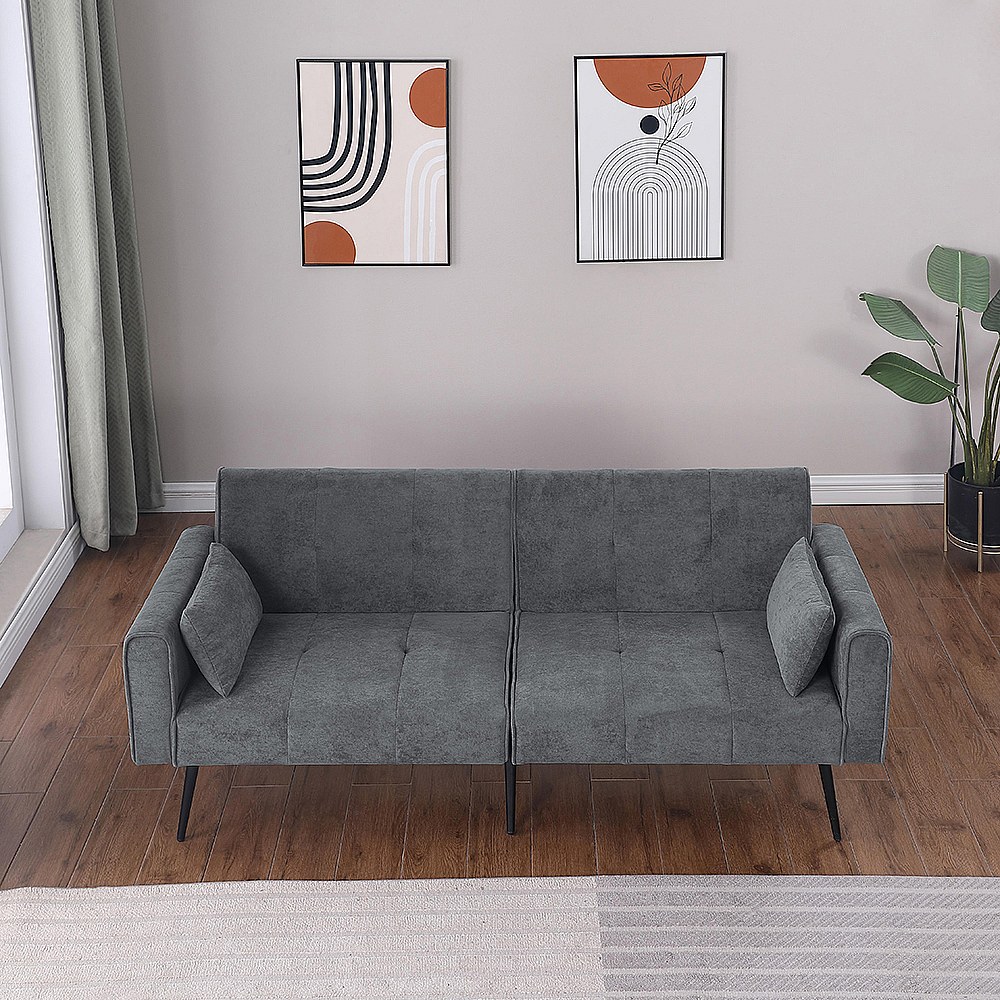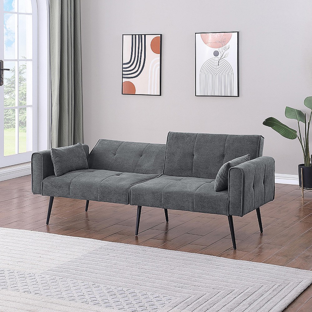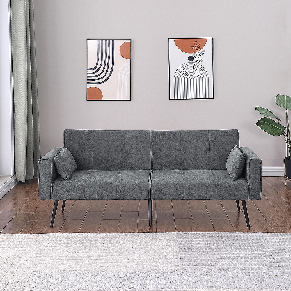 Canapé convertible deux places inclinable en tissu avec dossier réglable futon gris pour salon