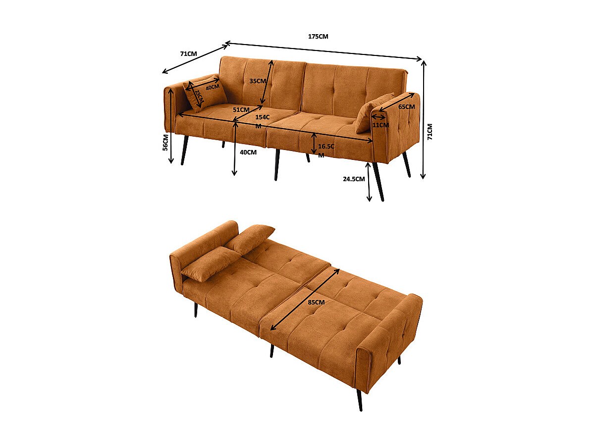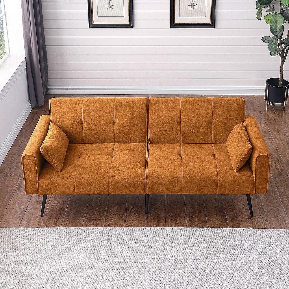 Canapé convertible deux places inclinable en tissu avec dossier réglable futon jaune pour salon