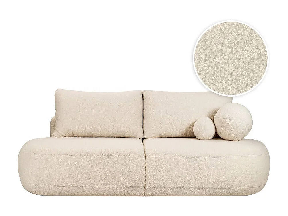 Canapé convertible droit 4 places FABIO en tissu bouclette - blanc cassé