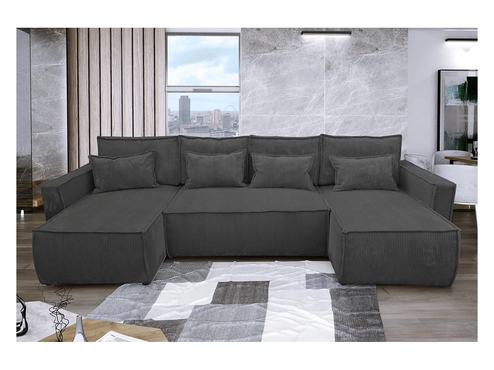 Canapé convertible en lit en velours côtelé Eva U Gris Anthracite