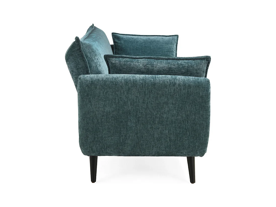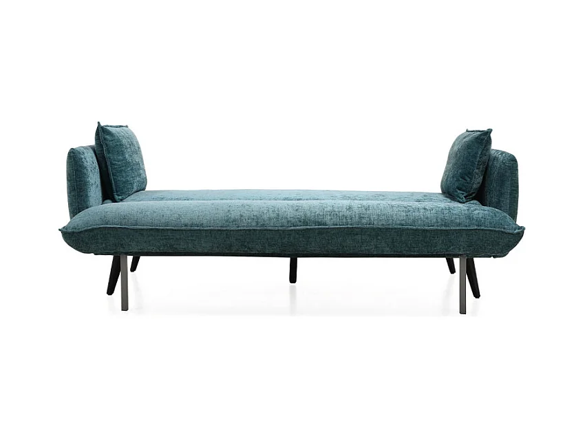 Canapé convertible en tissu doux bleu canard et pieds en bois - HUGUES