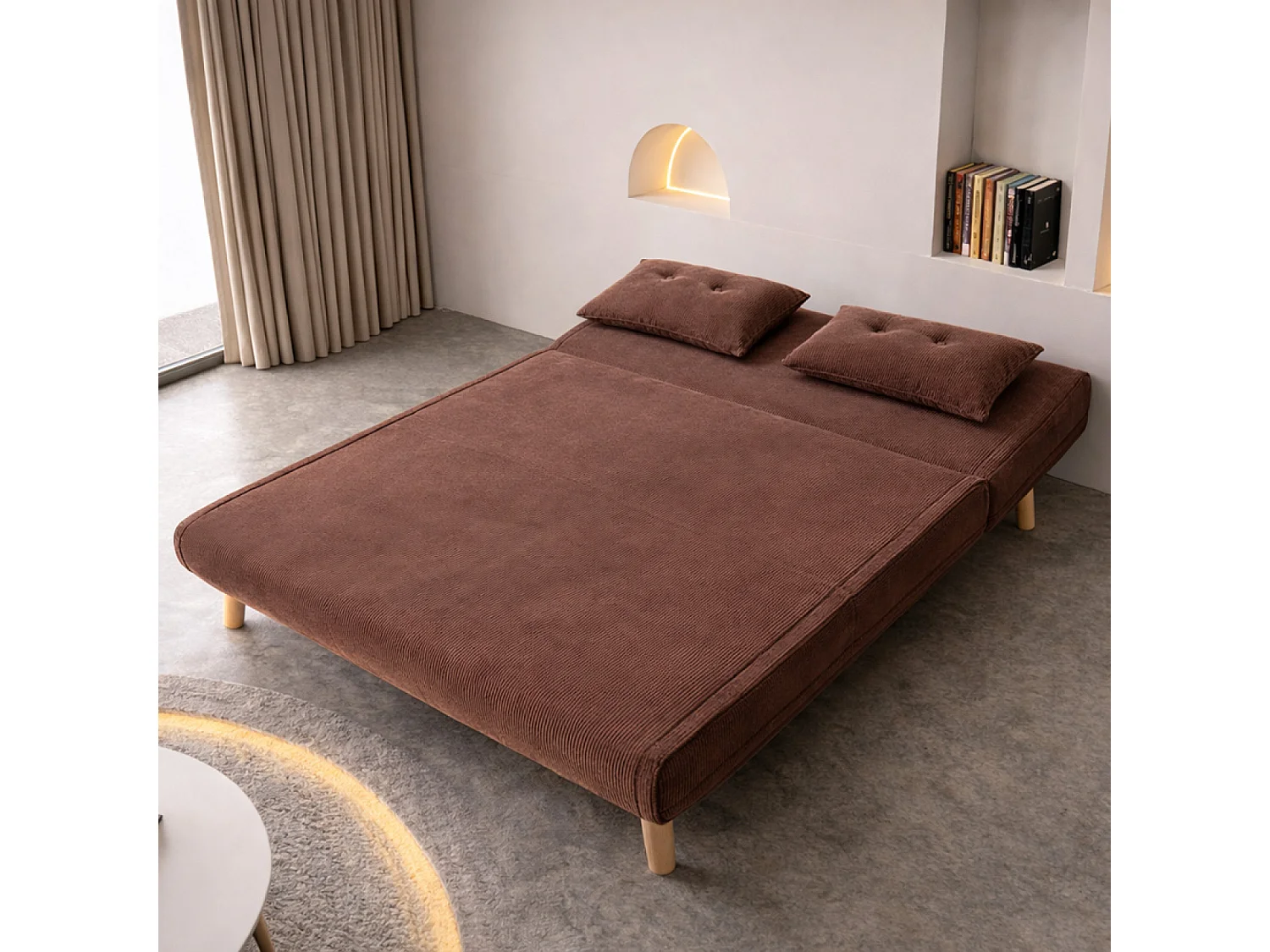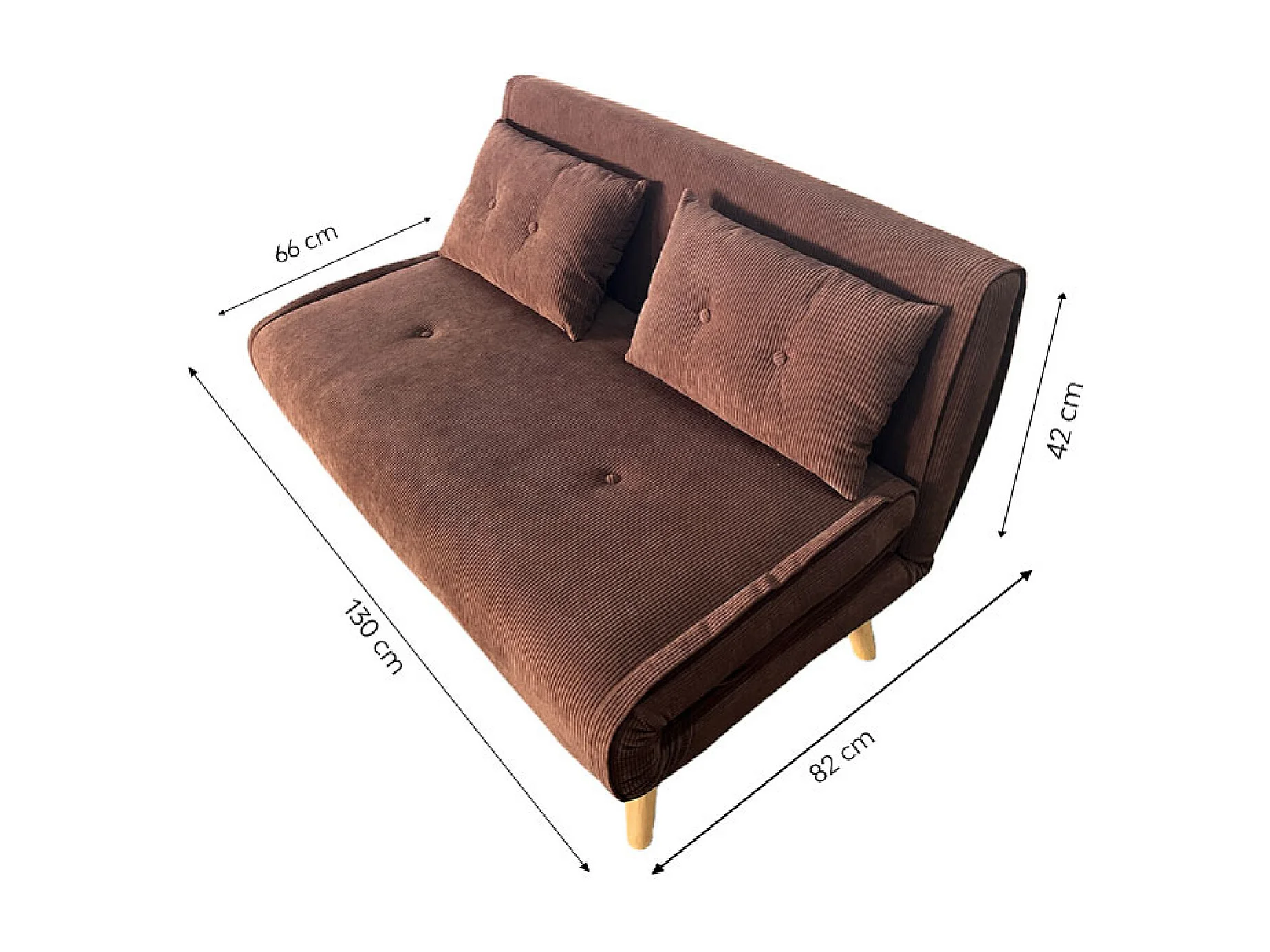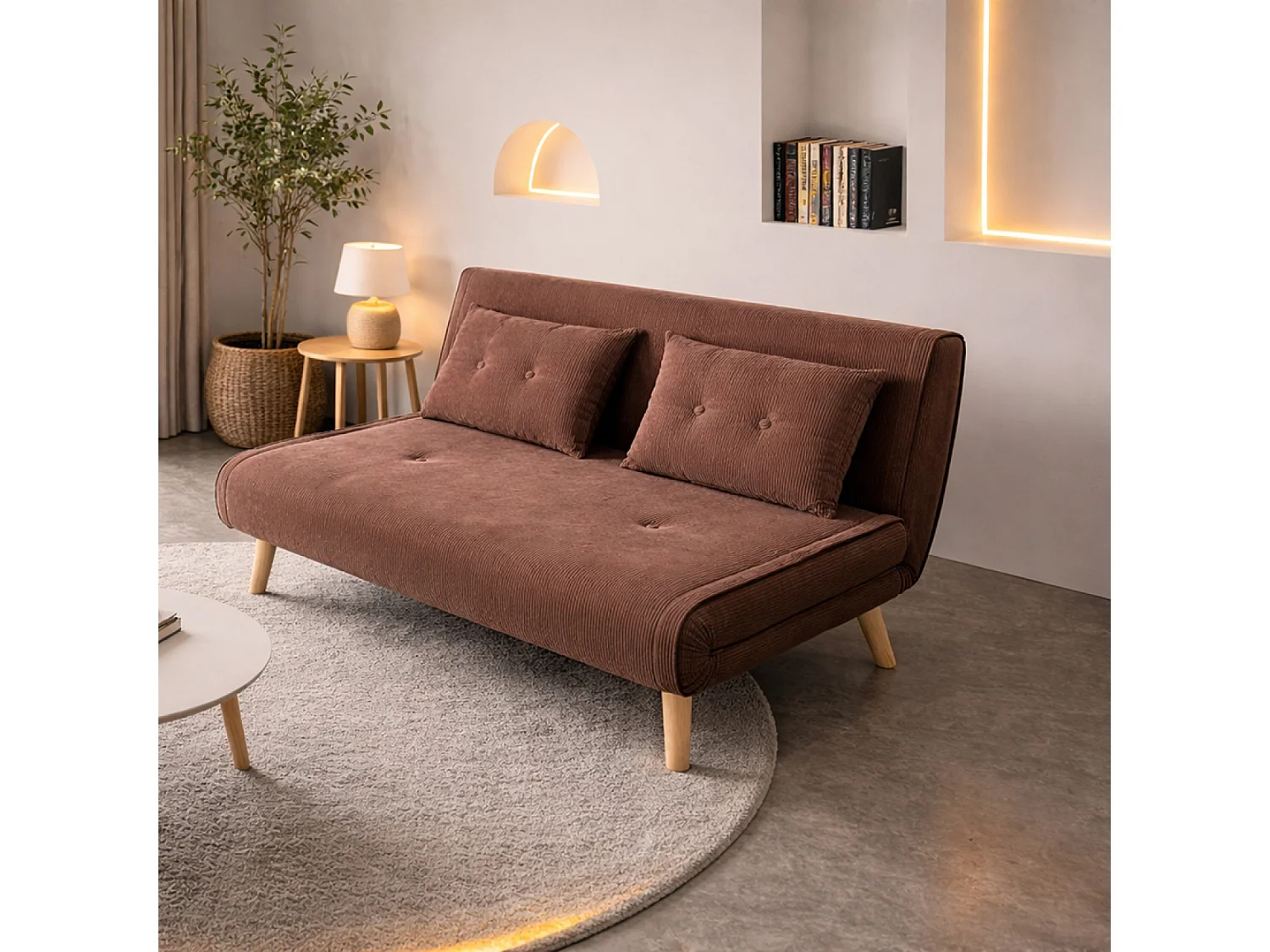 Canapé convertible en velours côtelé chccolat 2 places ENNIS